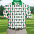 Green Pink Argyle Men Golf Shirts, Funny Golf Polos, Unique Gift For Golfer
