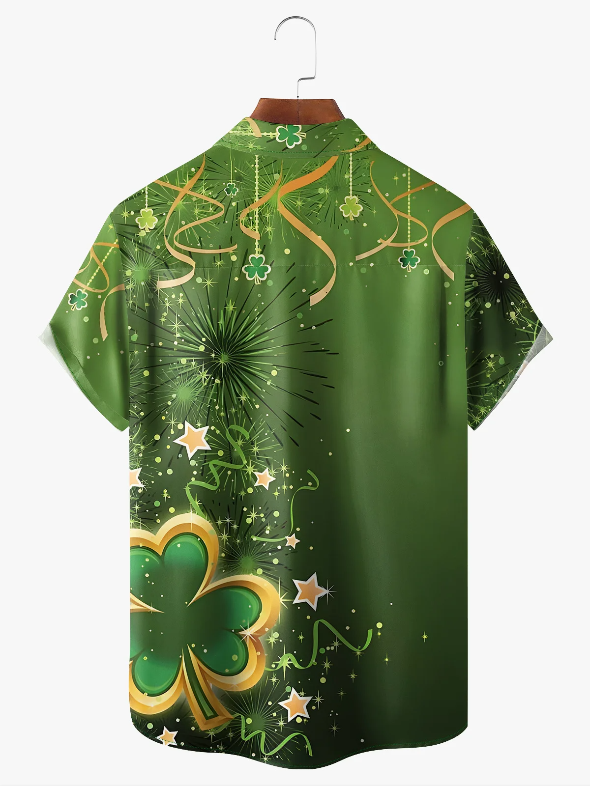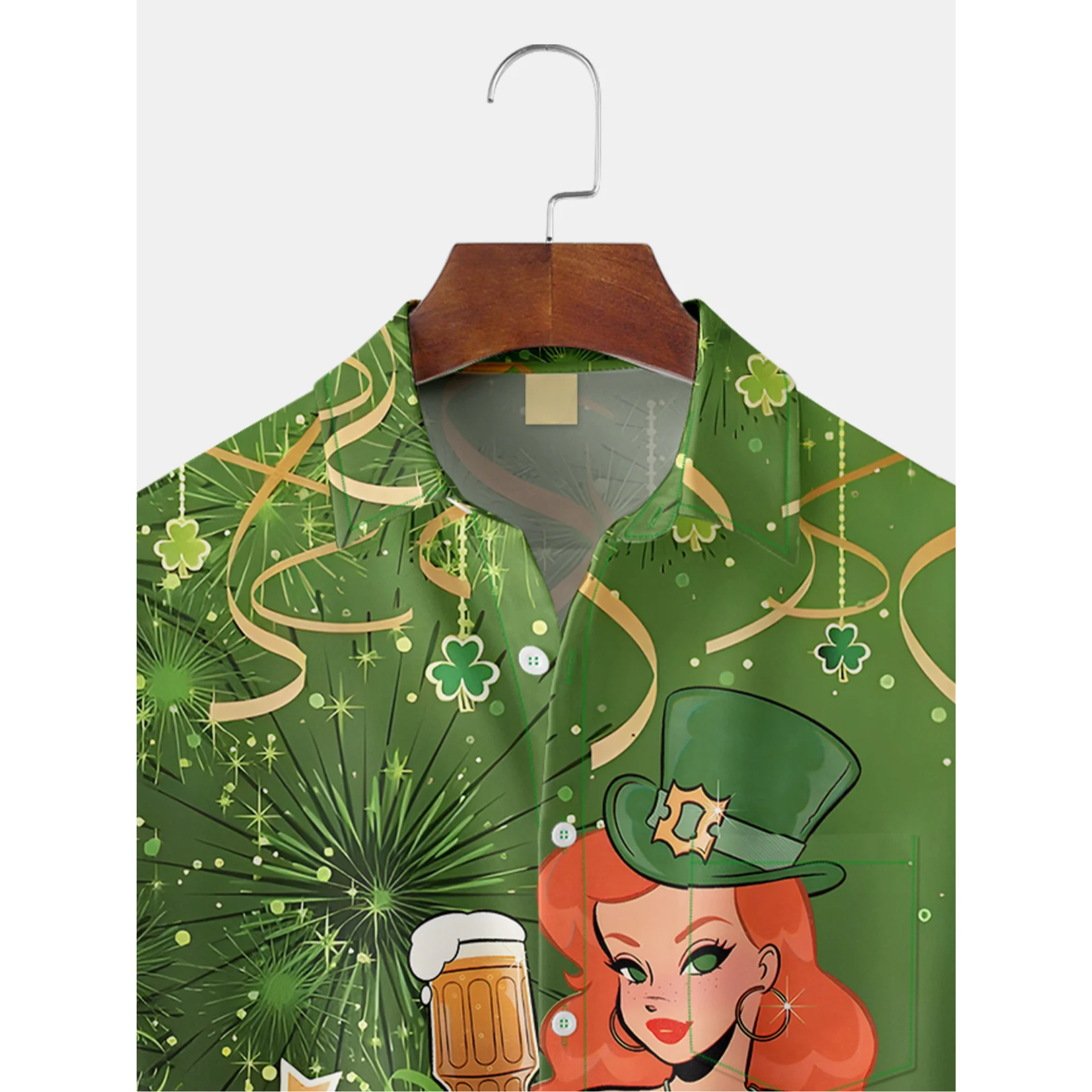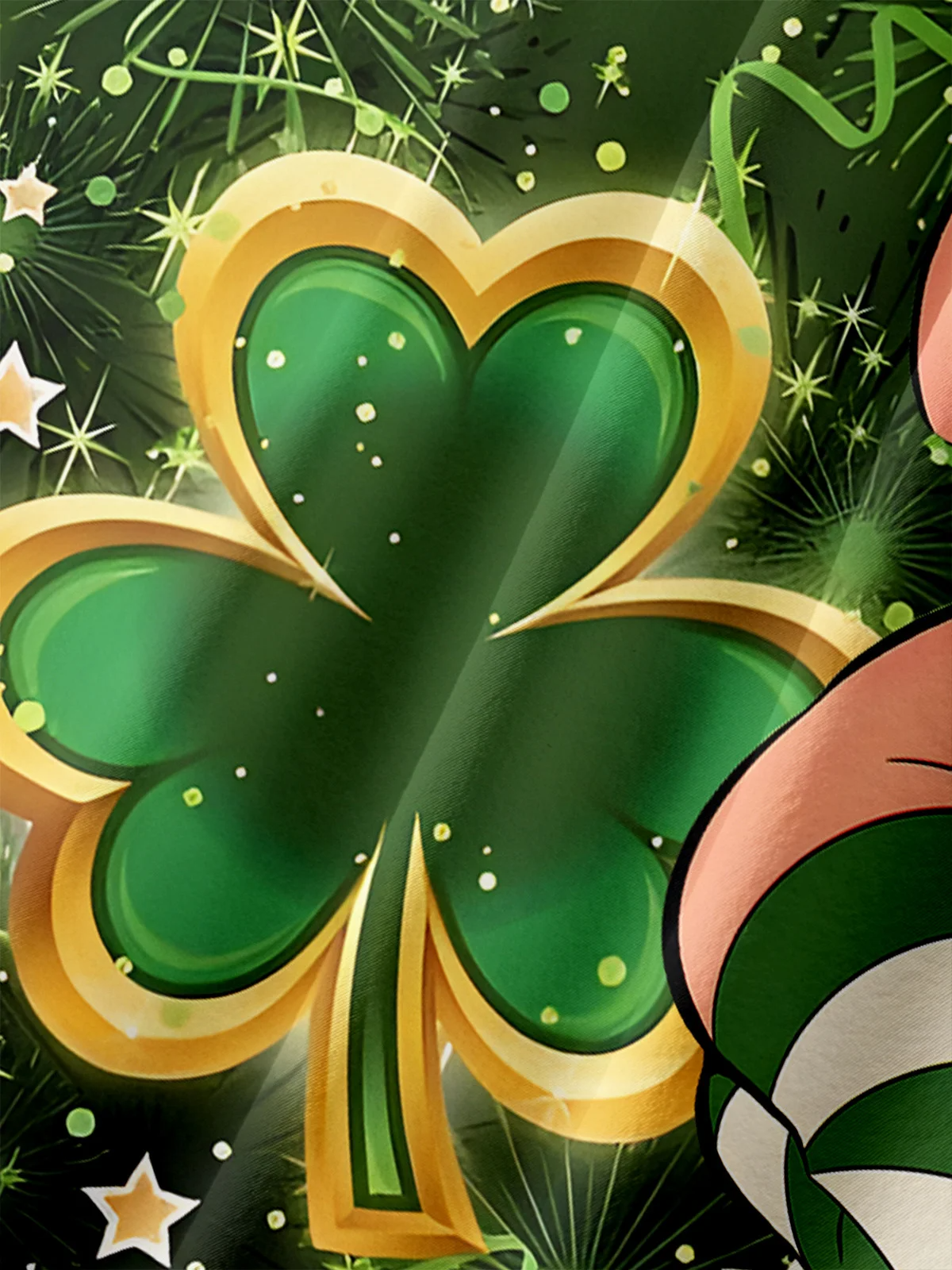 Green St. Patrick's Day Luck By Alice Meow Hawaiian Golf Shirt, Tropical Vibe Men's Golf Shirt