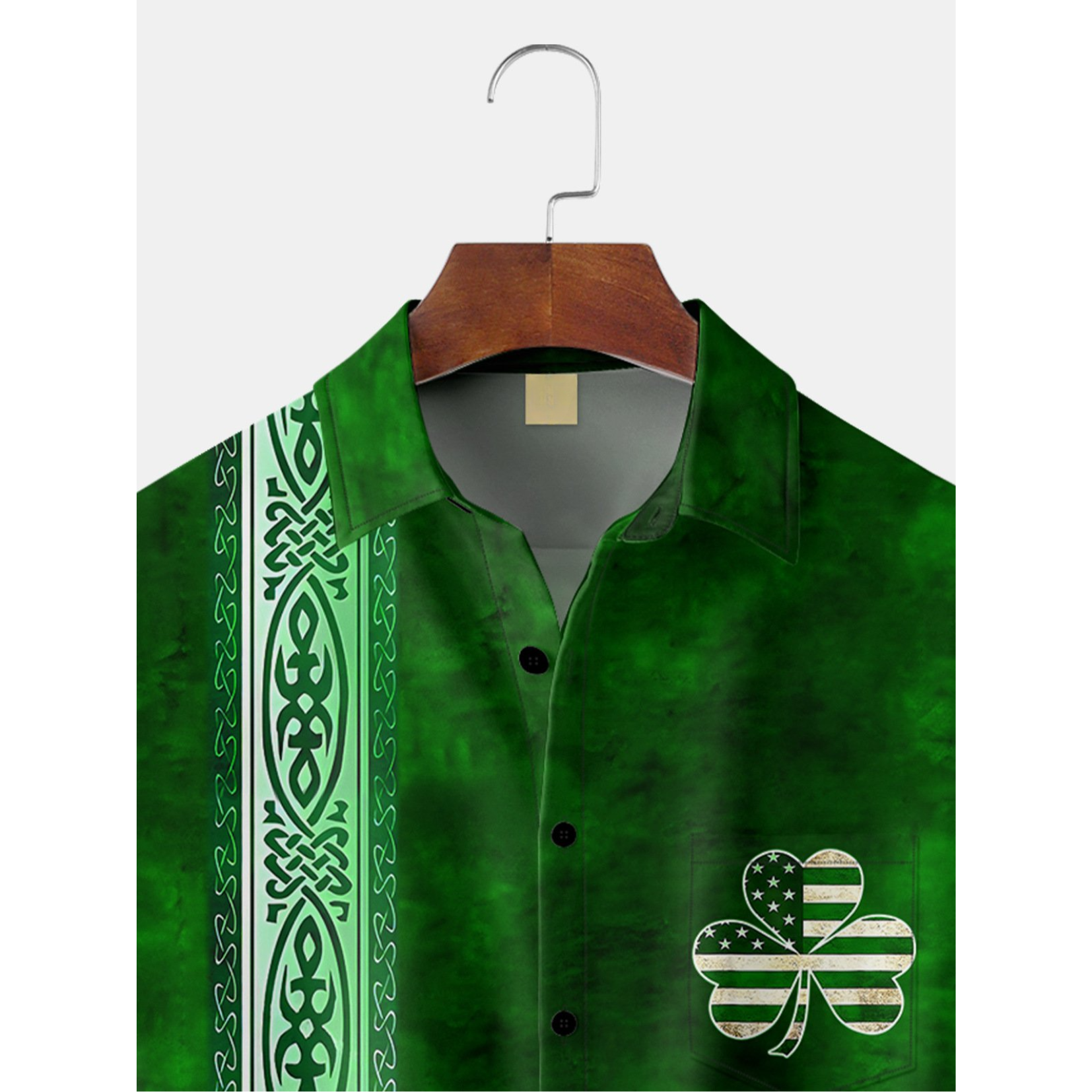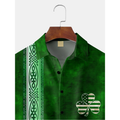 Green St. Patrick's Day Lucky Clover America Flag Print Hawaiian Golf Shirt, Tropical Vibe Men's Golf Shirt