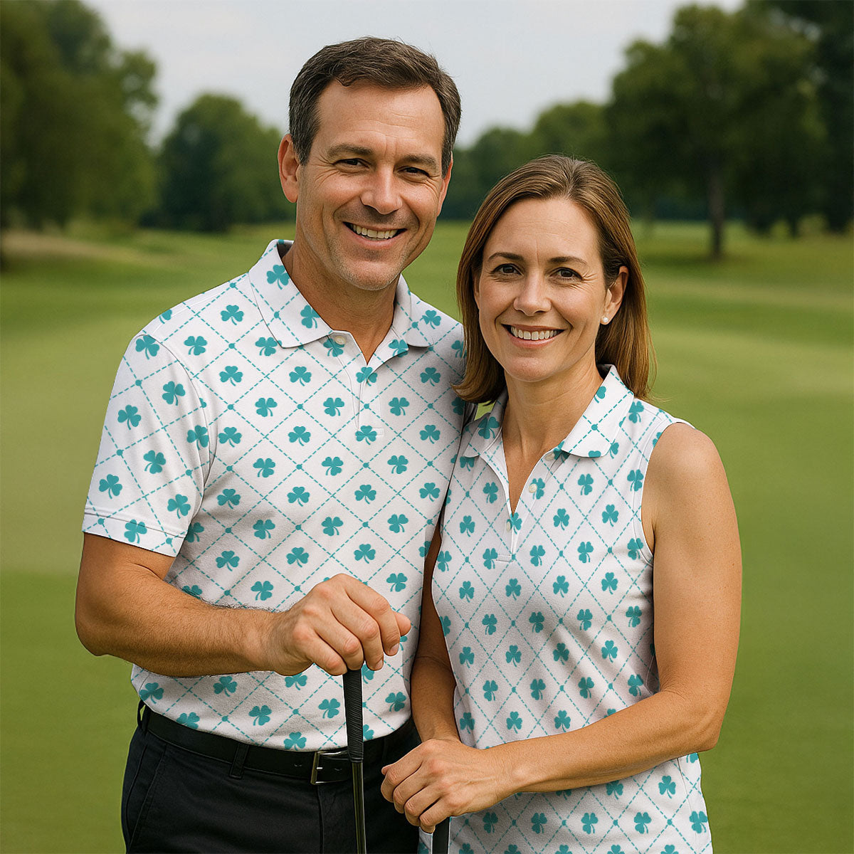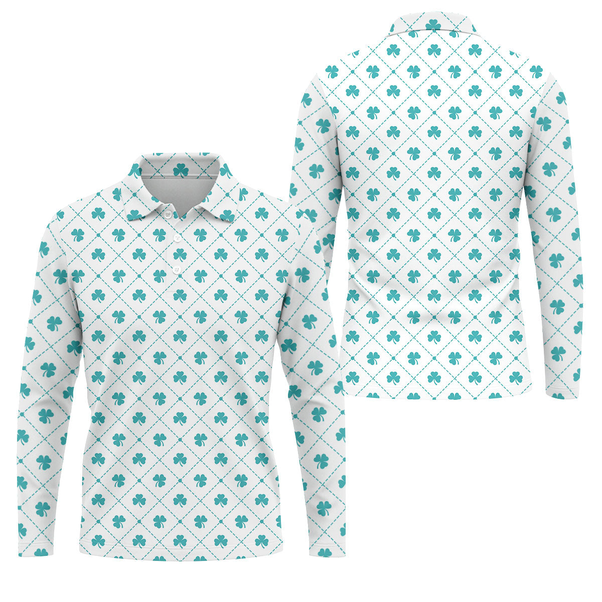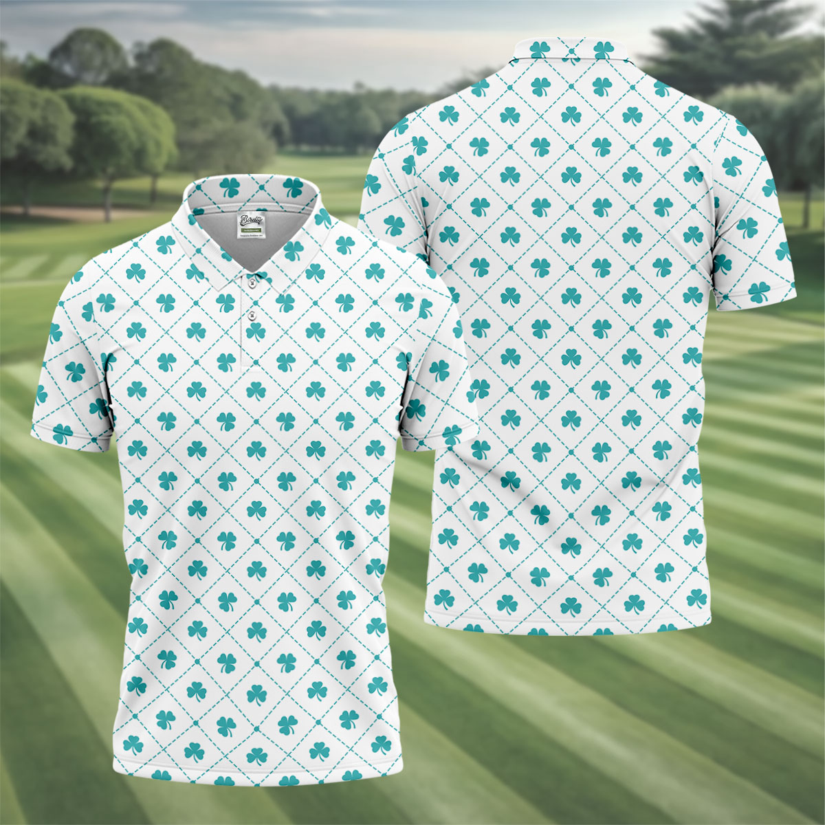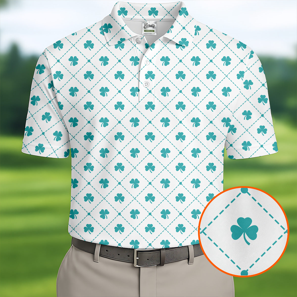 Grid Pattern Shamrock Golf Shirt, St Patrick's Day Golf Tops For Men, Golf Shirts For Men, Polo Shirts For Men