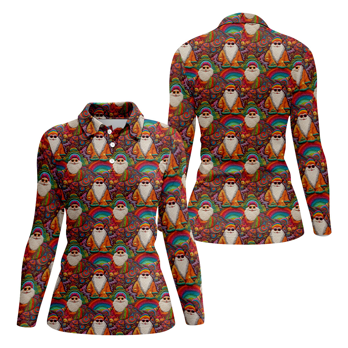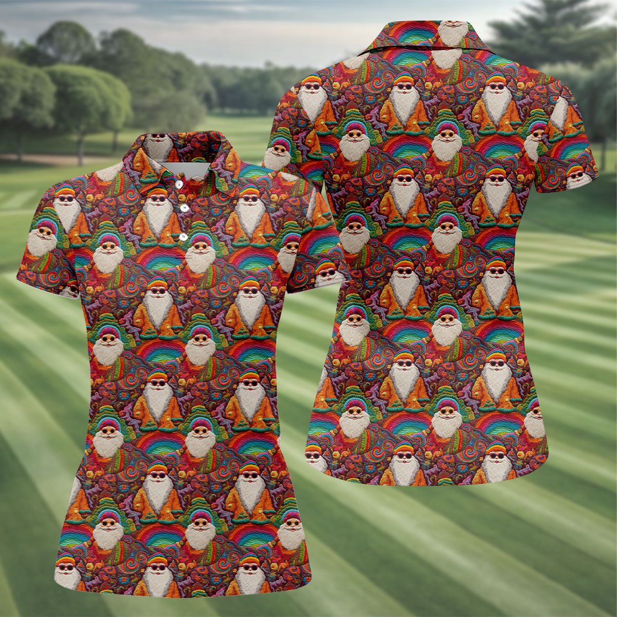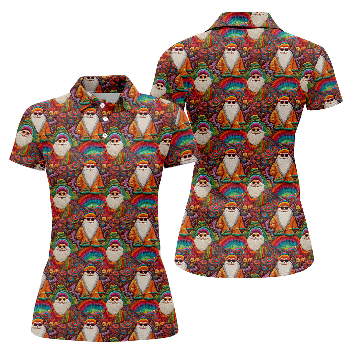 Groovy Hippie Santa Seamless Pattern Golf Shirts, Christmas Golf Shirt, Golf Gifts For Women, Fun Golf Shirt