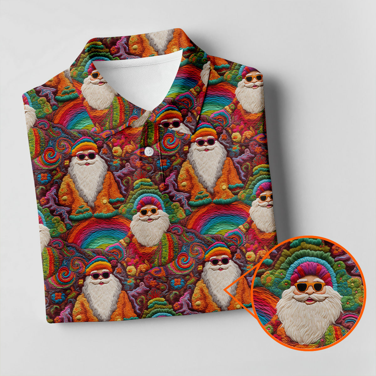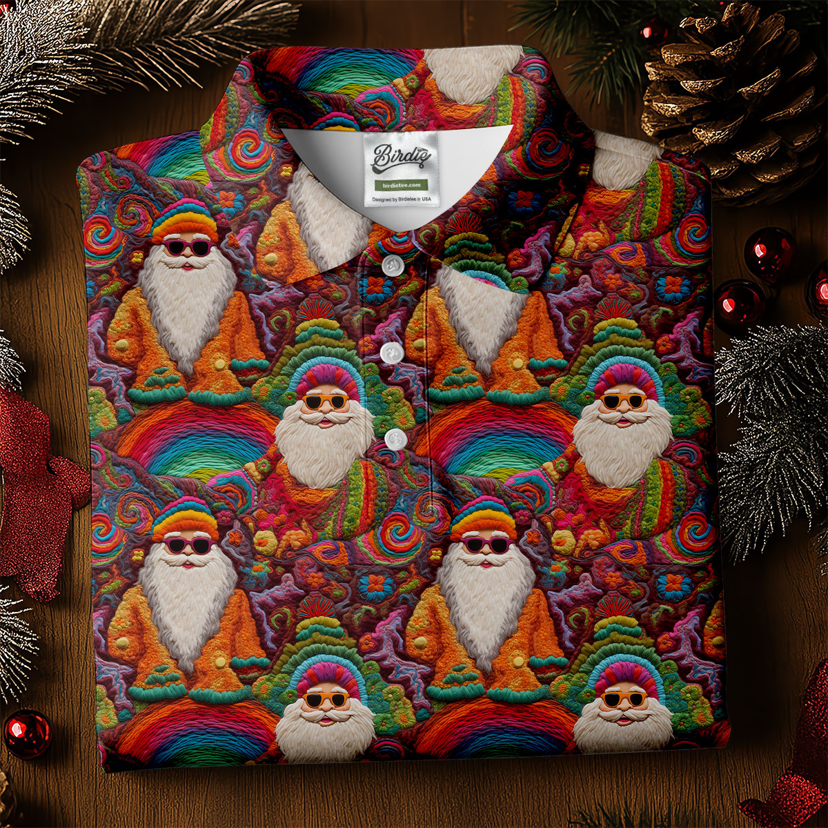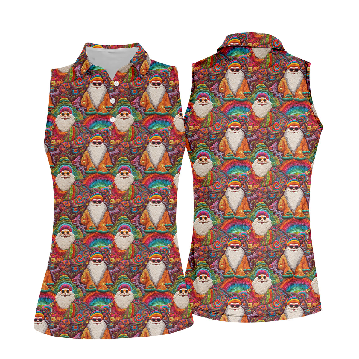 Groovy Hippie Santa Seamless Pattern Golf Shirts, Christmas Golf Shirt, Golf Gifts For Women, Fun Golf Shirt