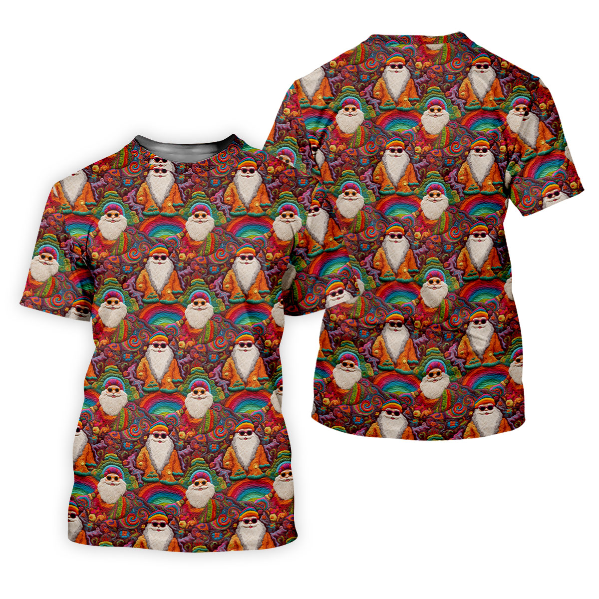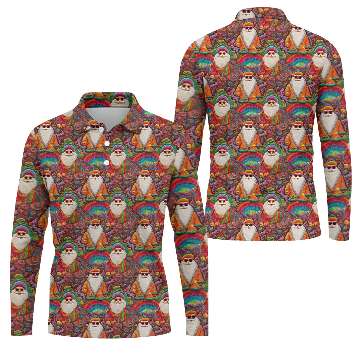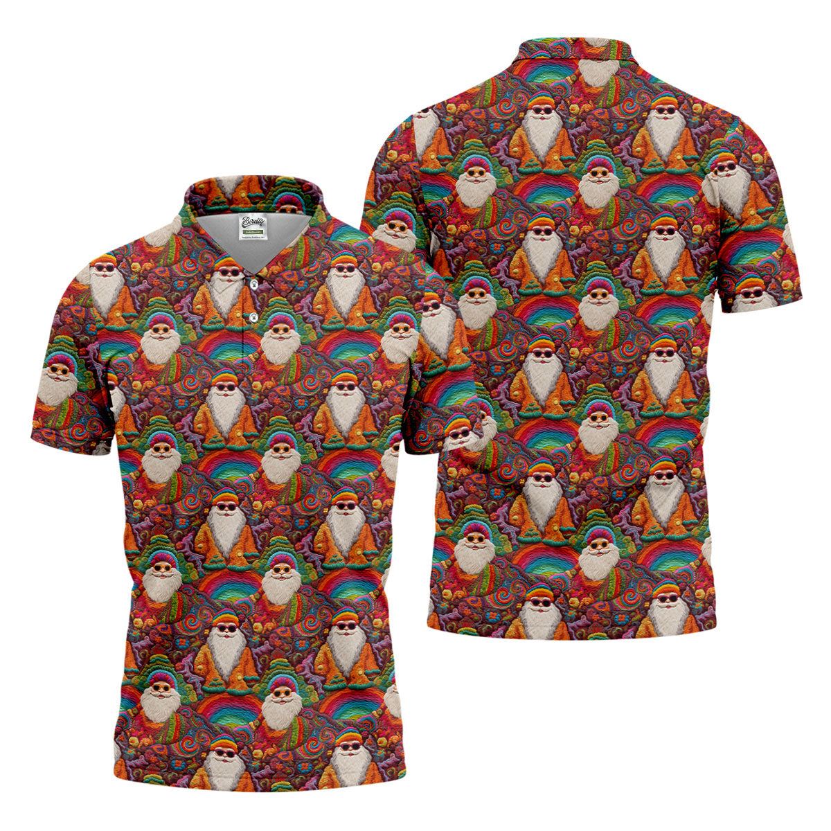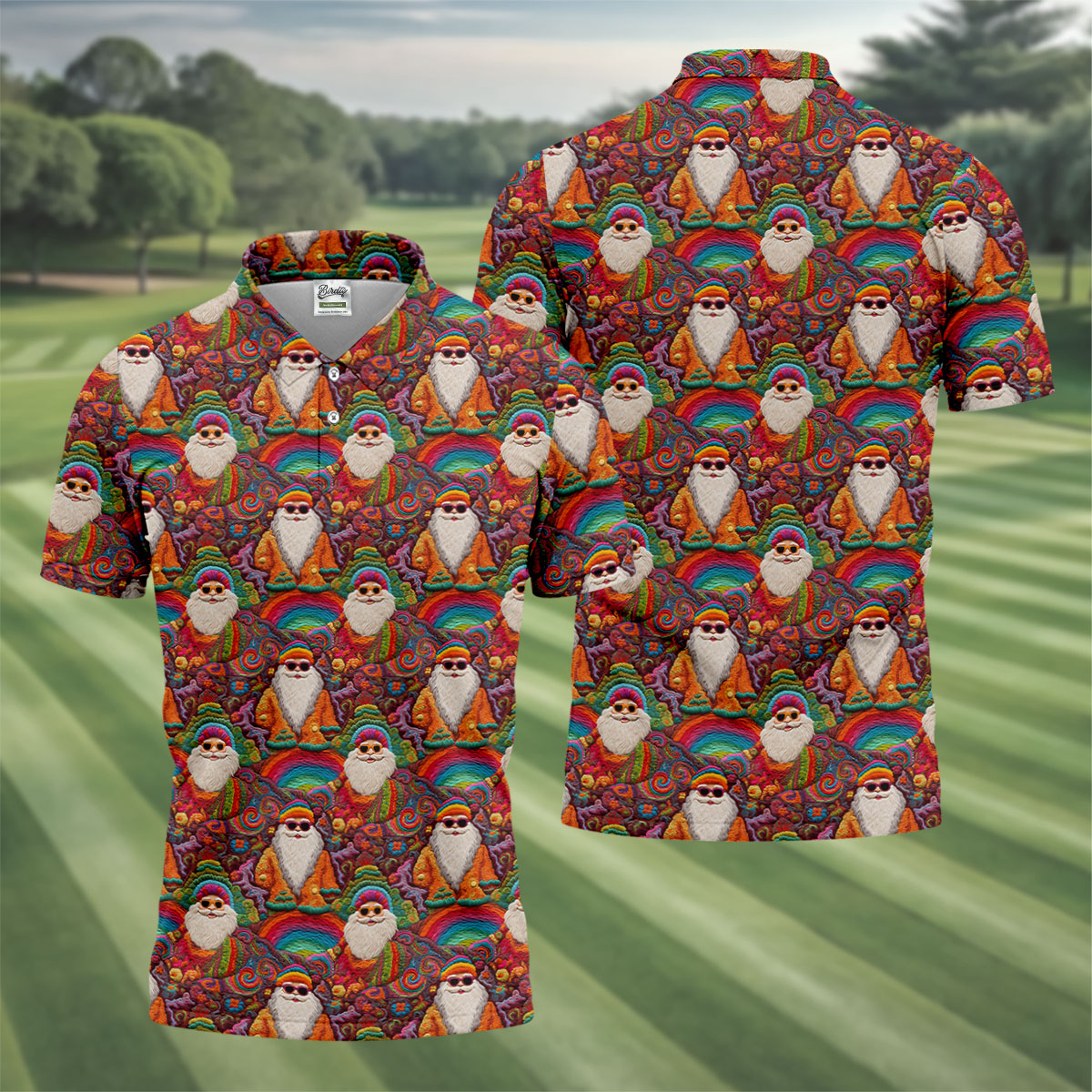 Groovy Hippie Santa Seamless Pattern Golf Shirts, Gifts For Golf Lovers, Christmas Golf Shirt, Golfing Apparel