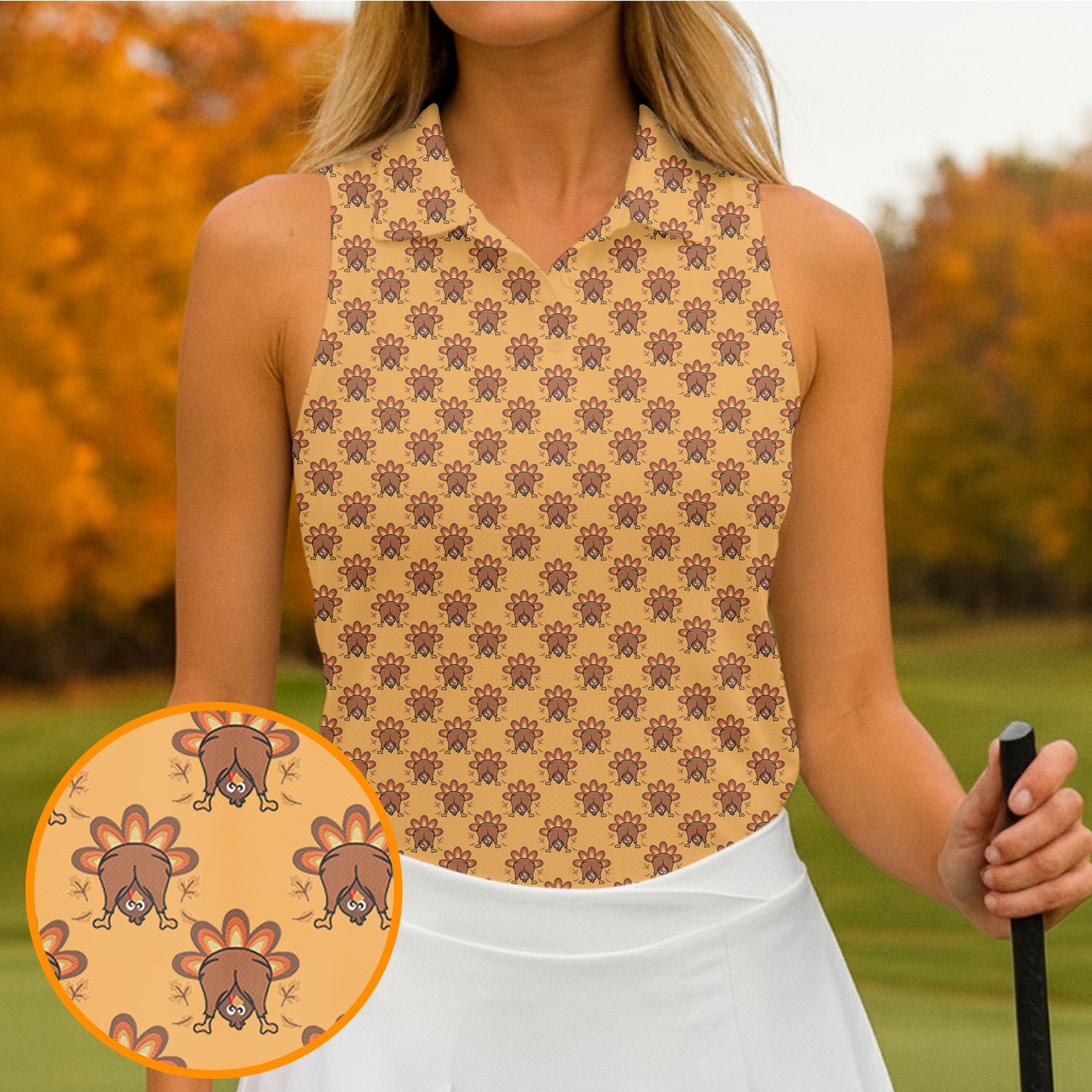 Guess What Turkey Funny Thanksgiving Polo Shirts, Women's Golf Tops, Ladies Golf Shirts, Golfing Apparel