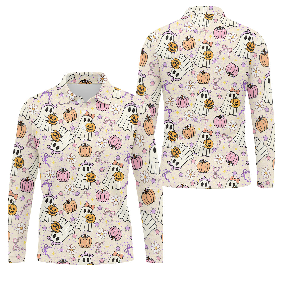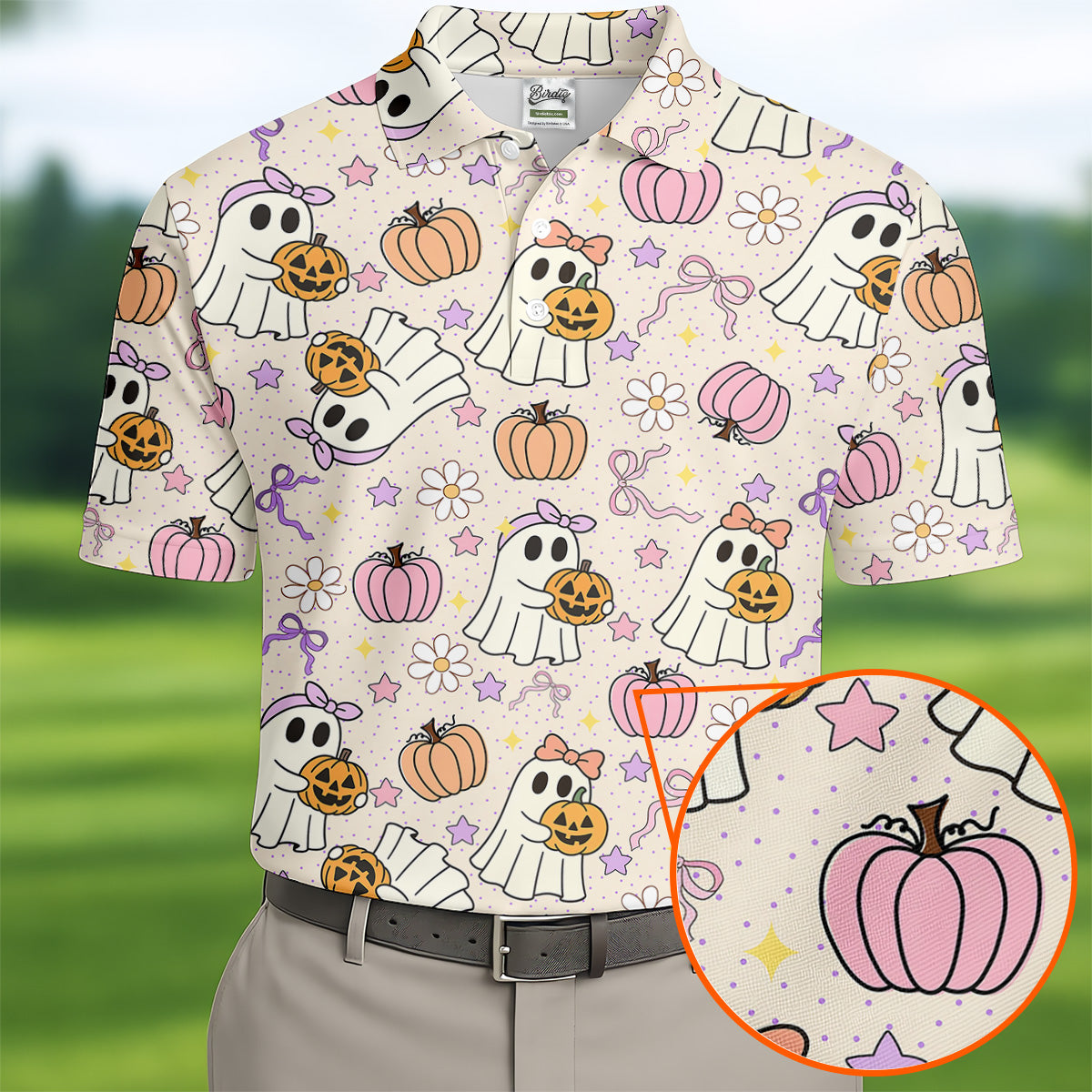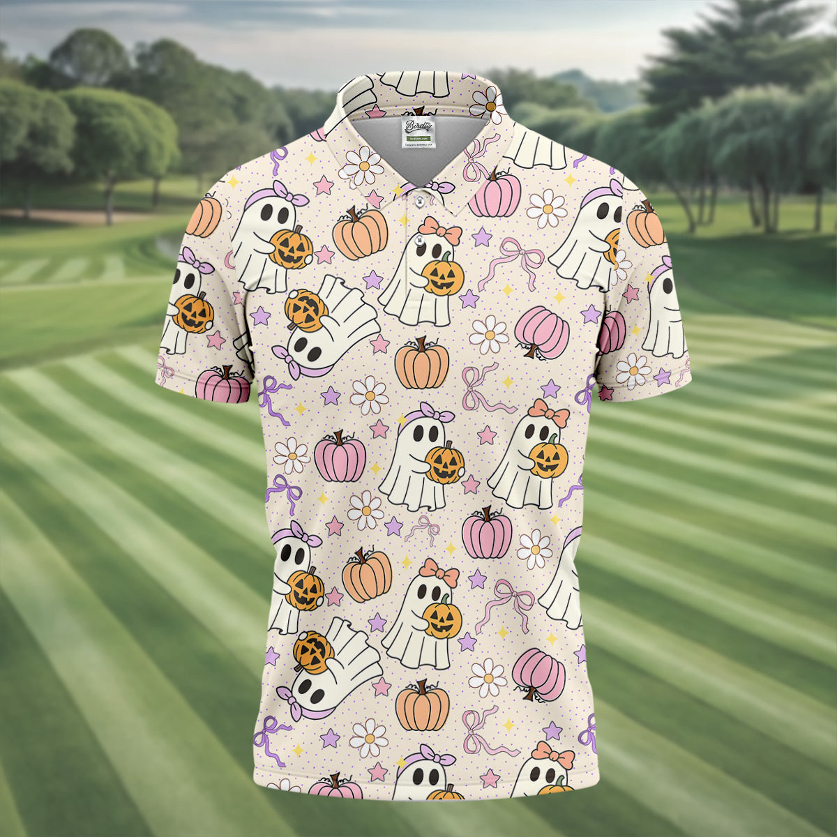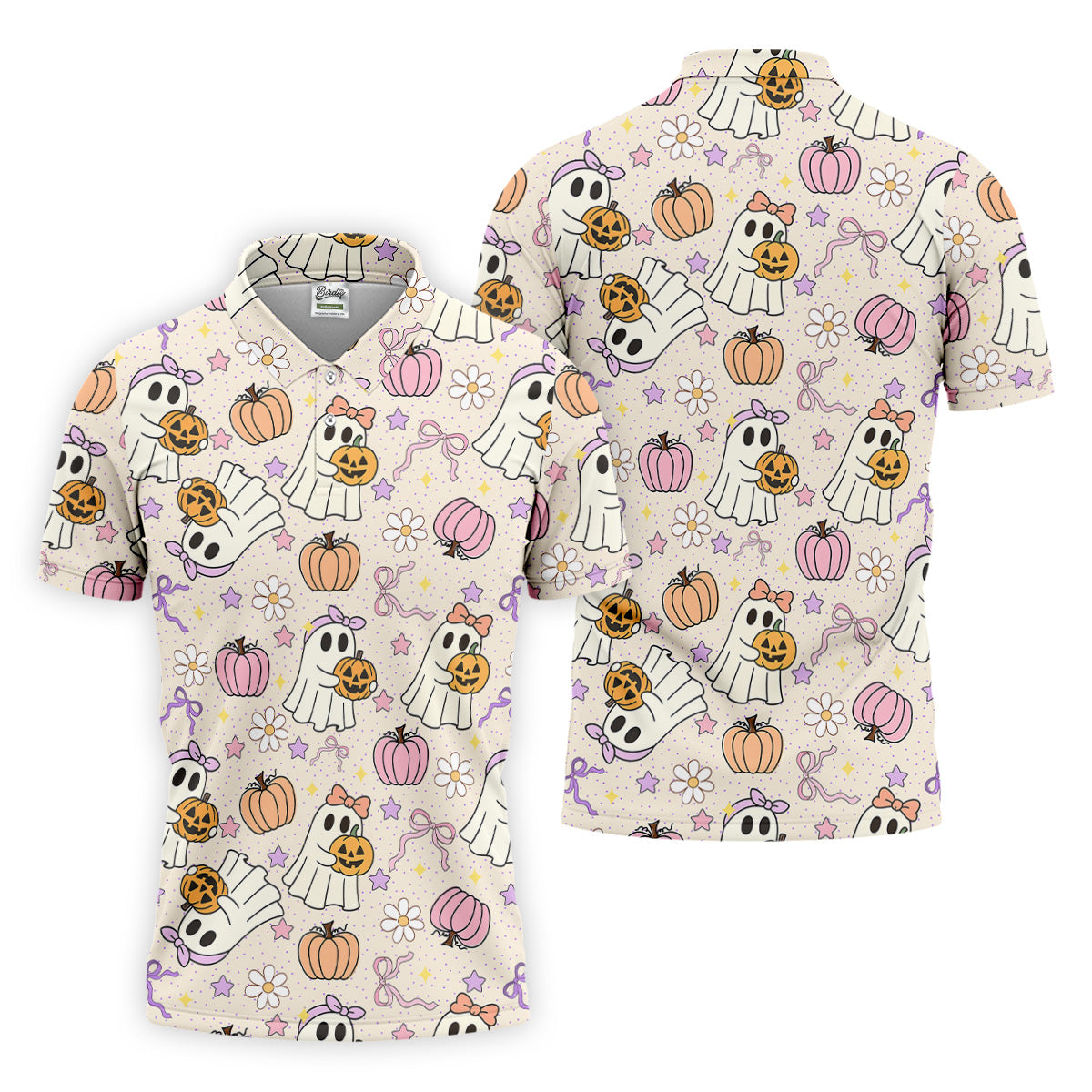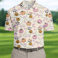 Halloween Seamless Pattern Cute Golf Shirt, Retro Halloween Polo Shirts For Men, Golfing Apparel