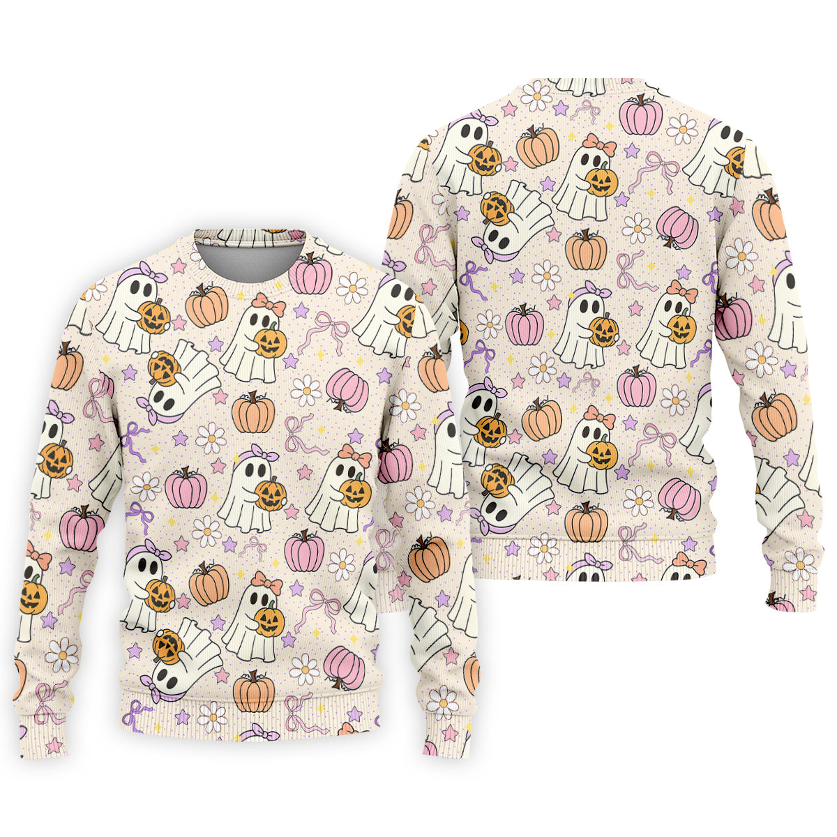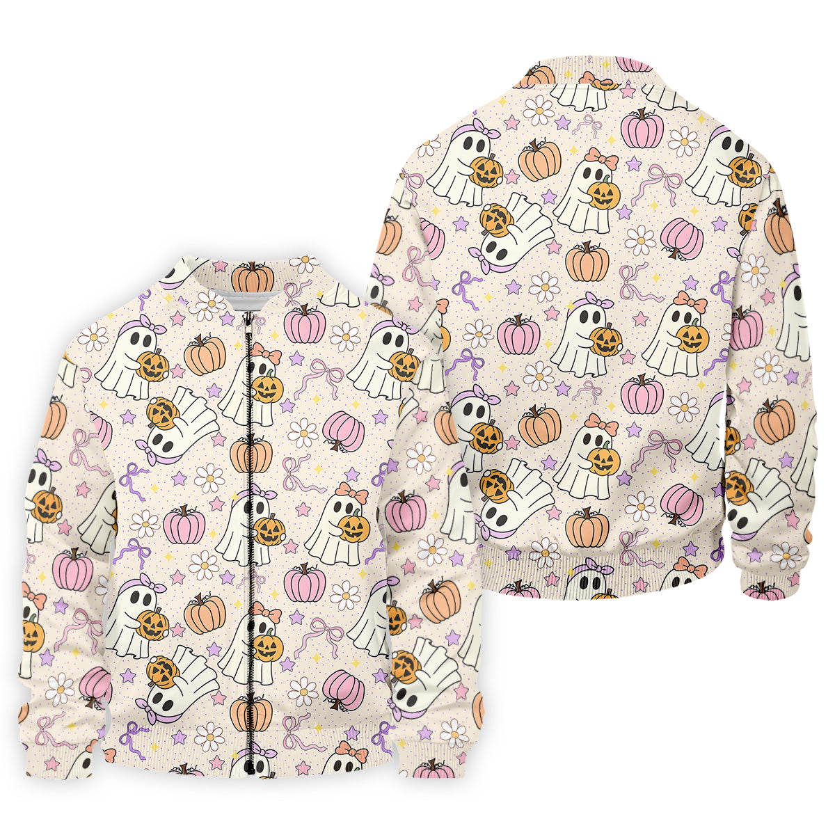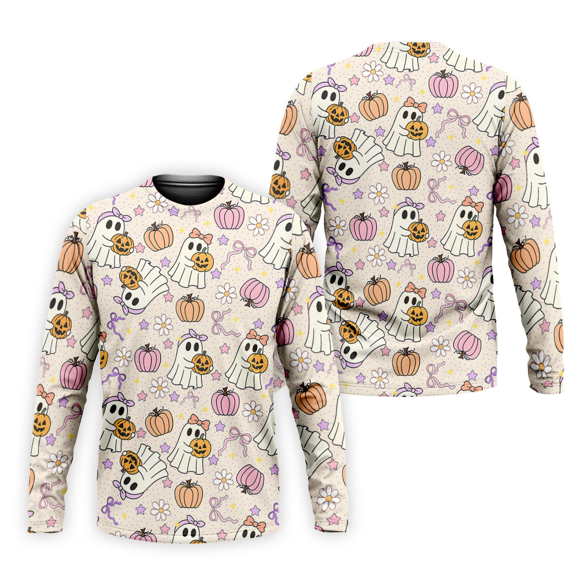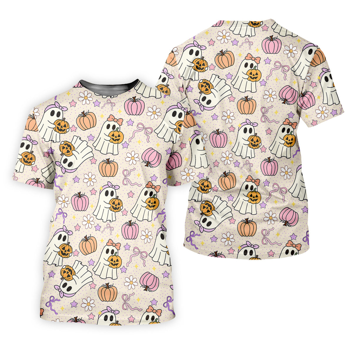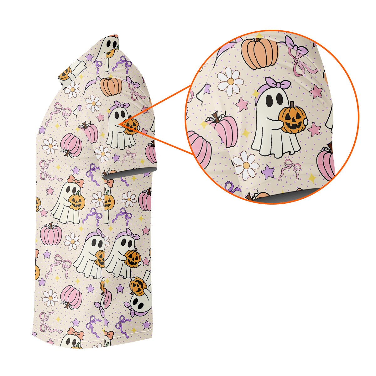 Halloween Seamless Pattern Cute Golf Shirt, Retro Halloween Polo Shirts For Men, Golfing Apparel