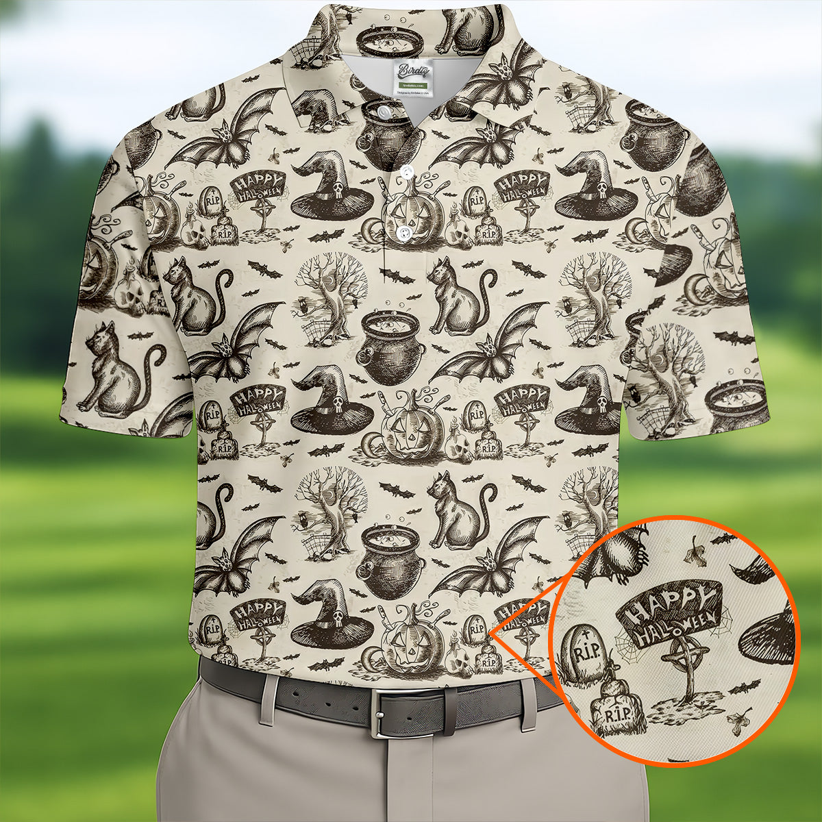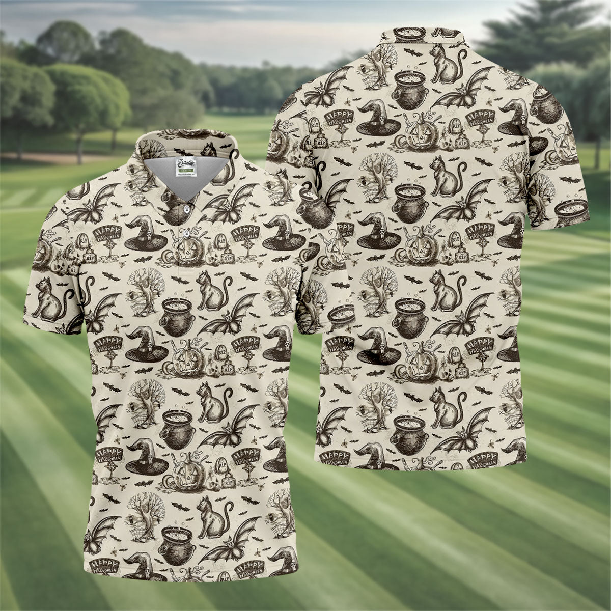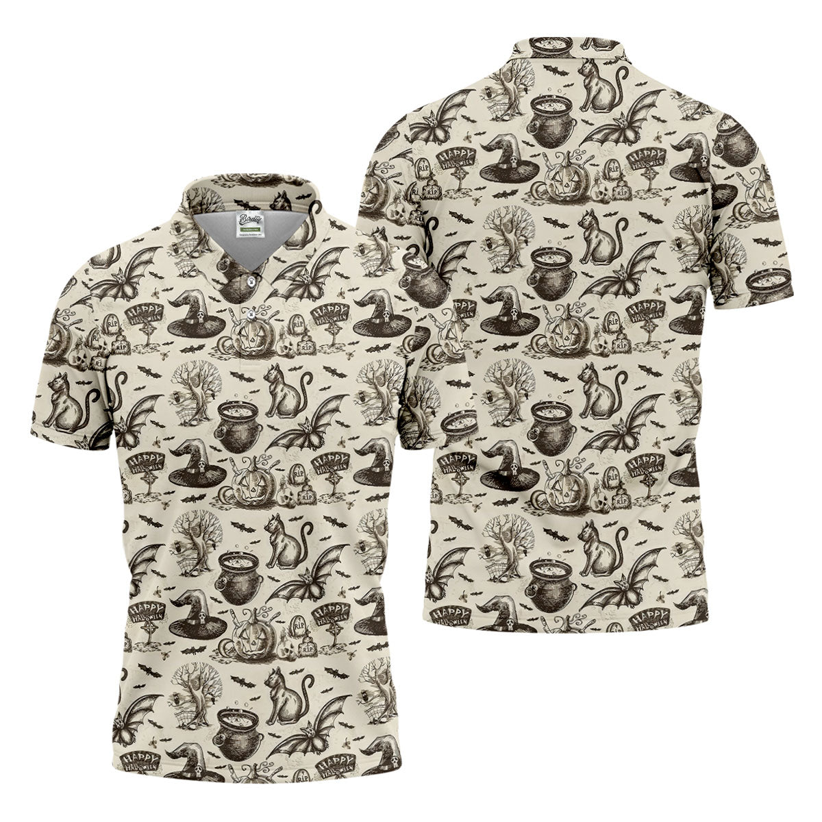 Halloween Witch Cat Pattern Men's Funny Golf Shirts, Unique Gift For Golfer, Polo For Men