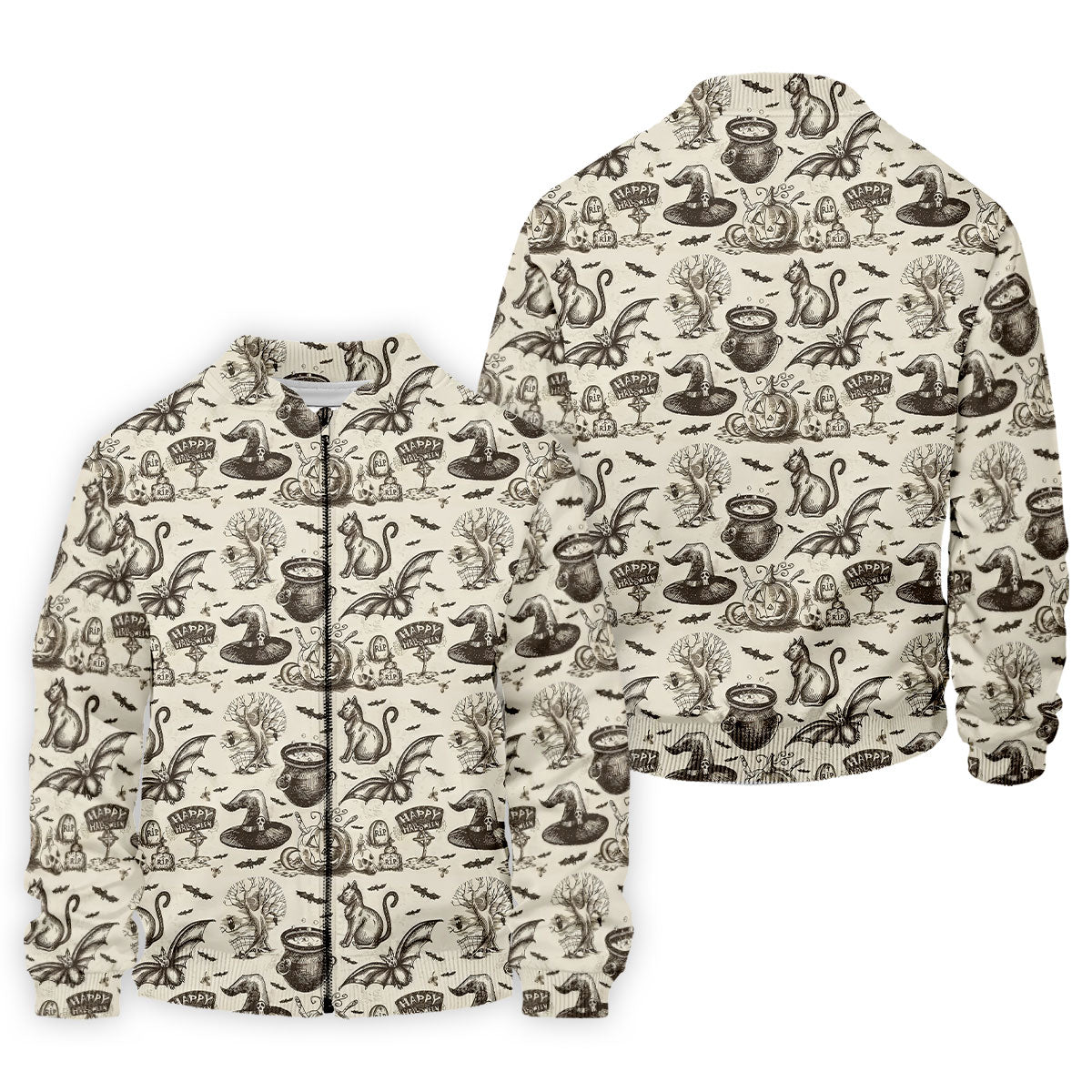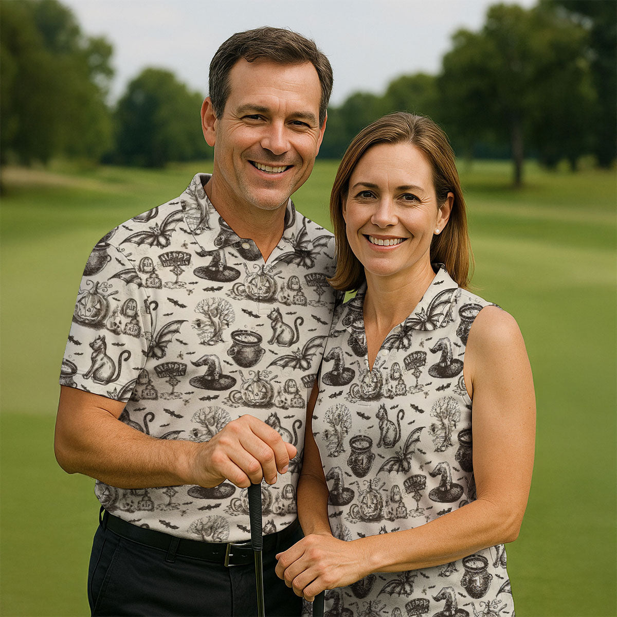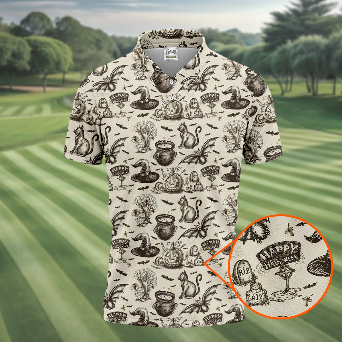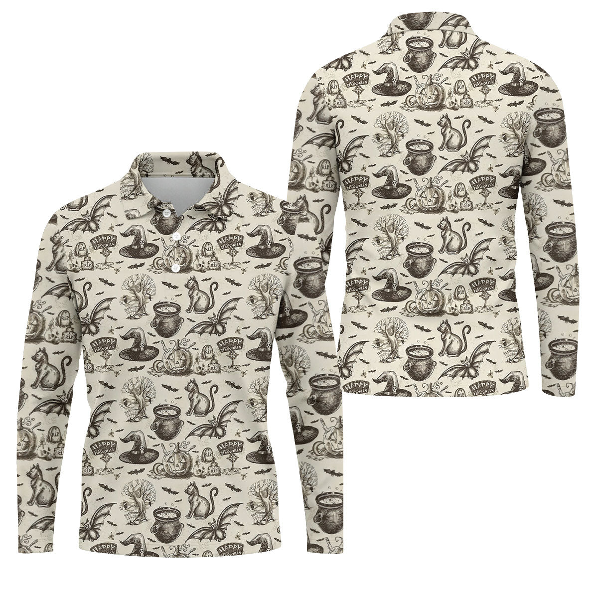 Halloween Witch Cat Pattern Men's Funny Golf Shirts, Unique Gift For Golfer, Polo For Men