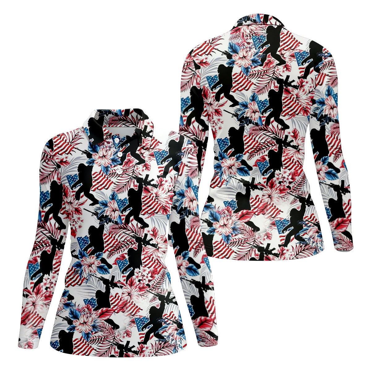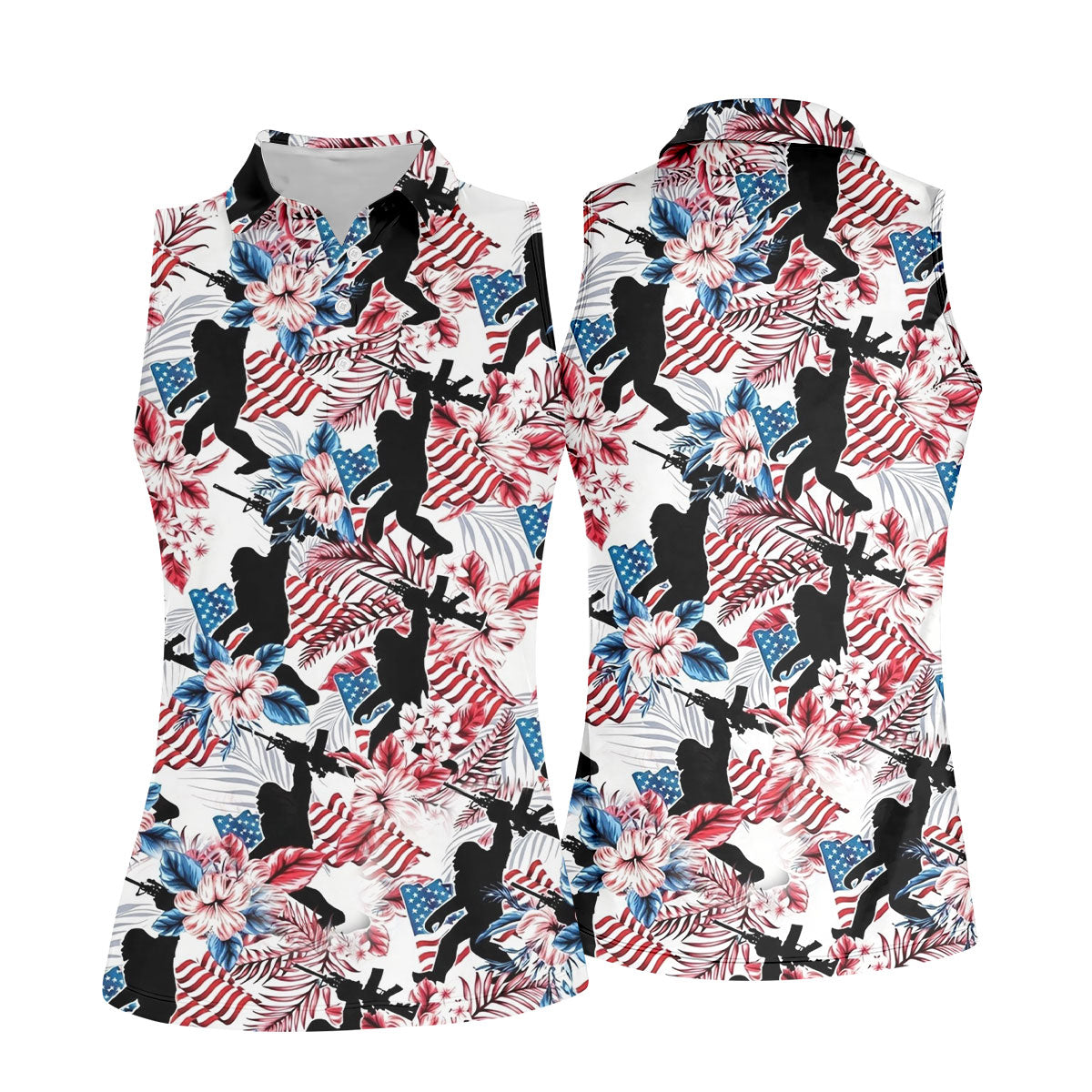 Hawaiian Bigfoot Military Theme American Flag Golf Shirt, 250th Anniversary Women Golf Top