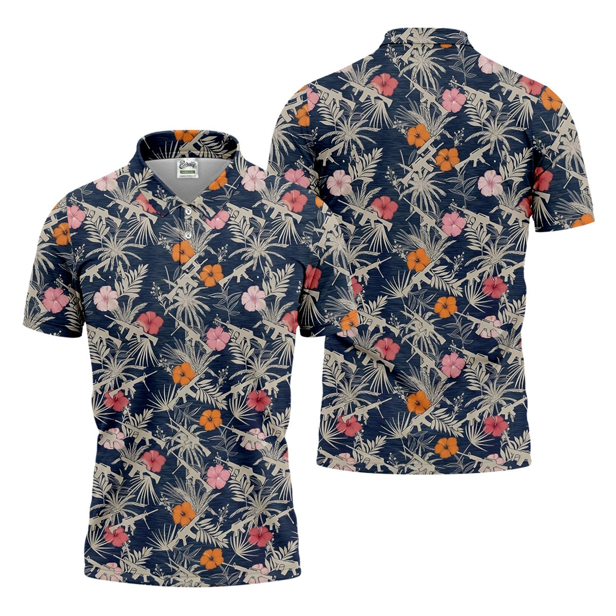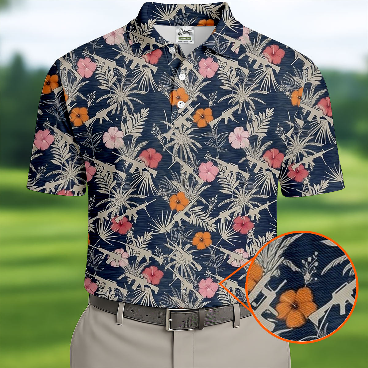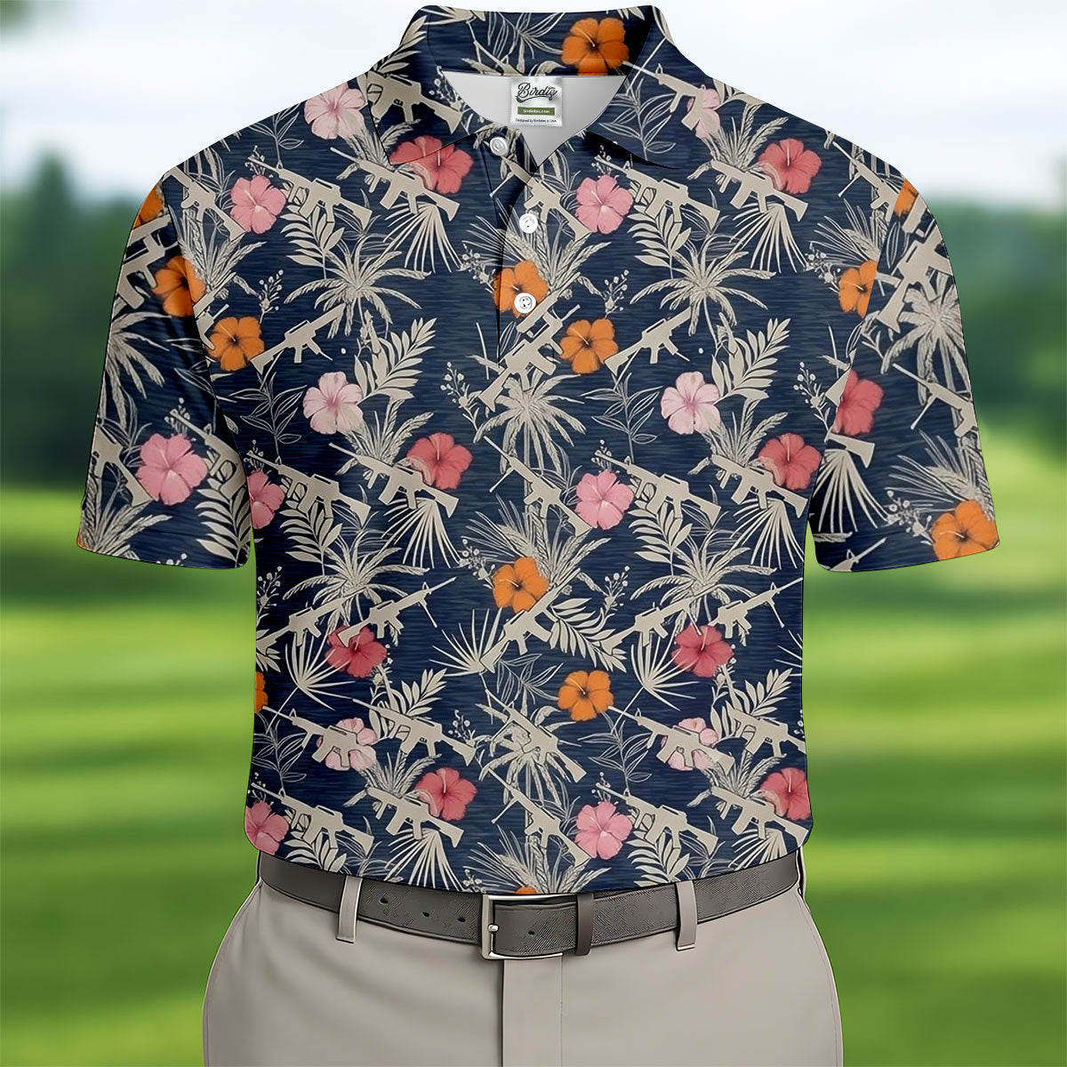 Hawaiian Hibicus Military Theme Navy Golf Shirt, Golf Shirts For Men, Polo Shirts For Men