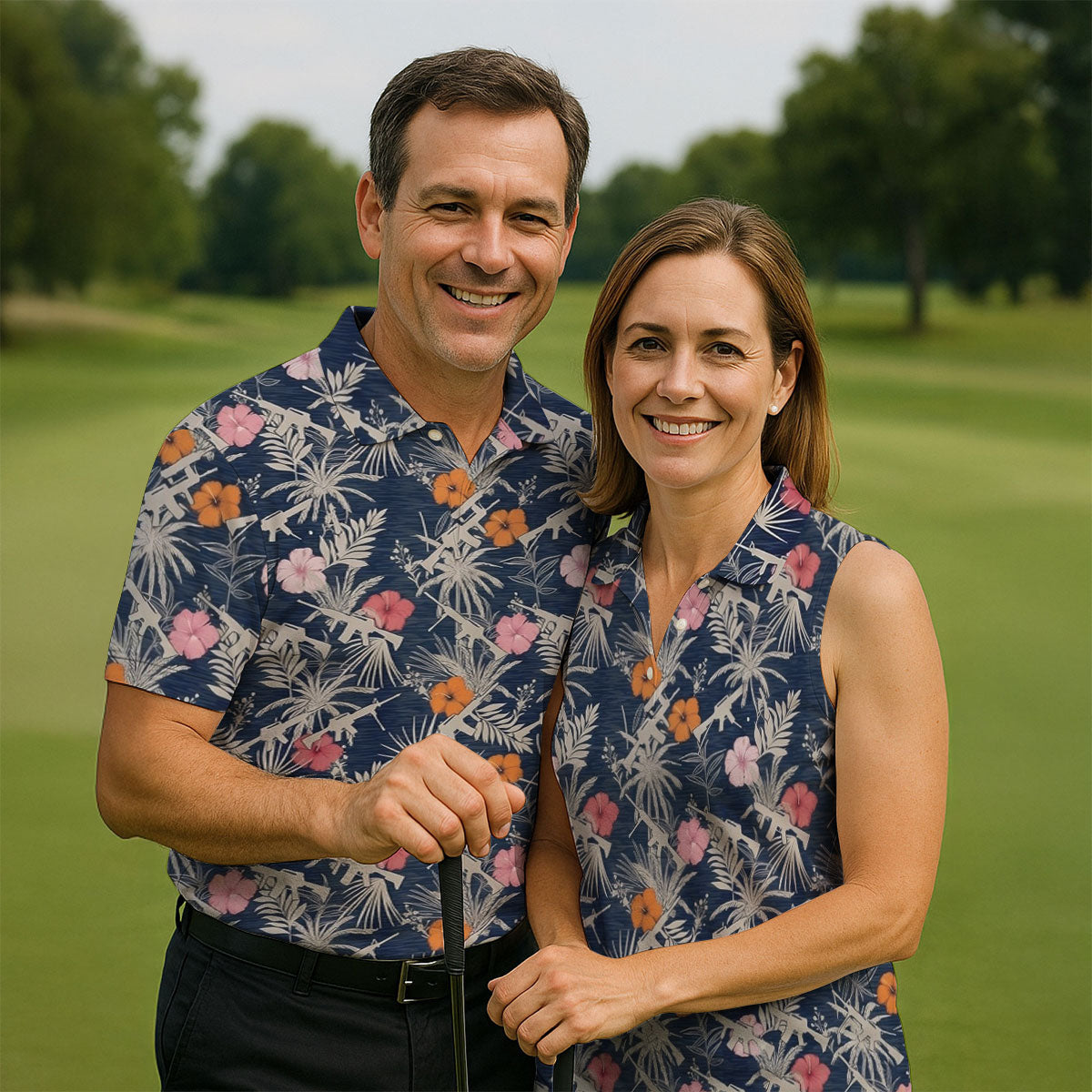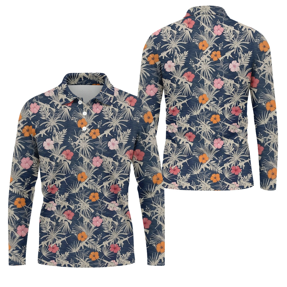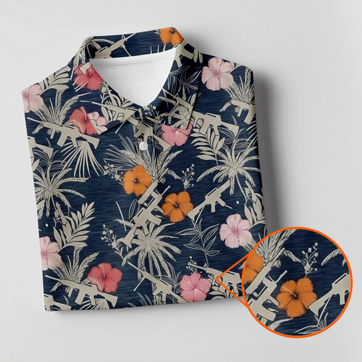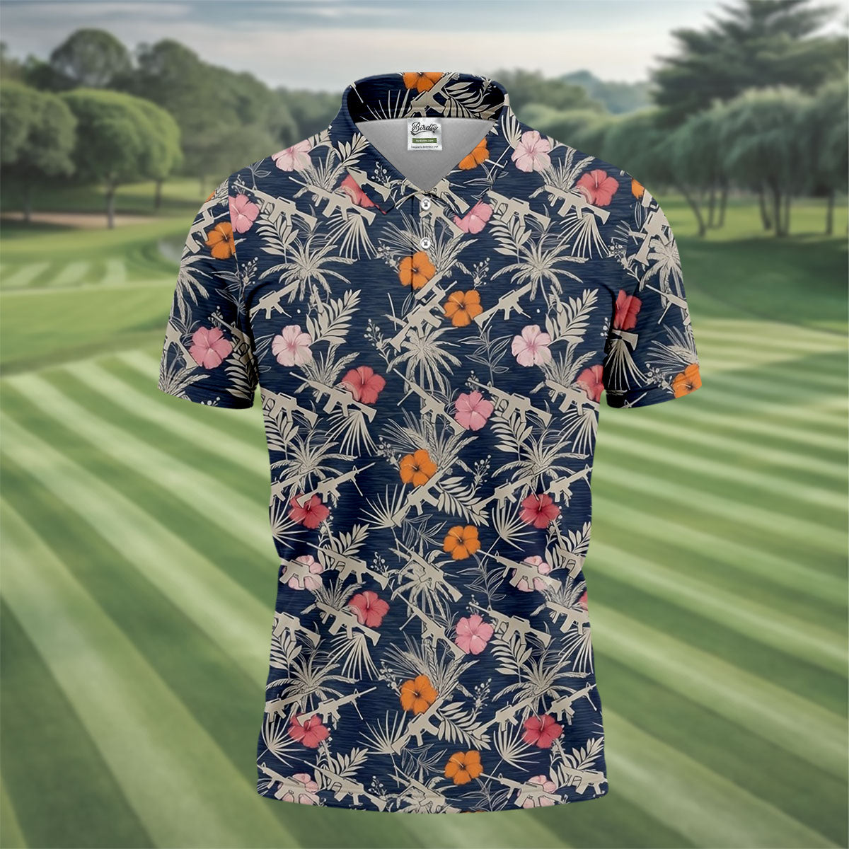 Hawaiian Hibicus Military Theme Navy Golf Shirt, Golf Shirts For Men, Polo Shirts For Men