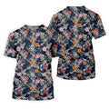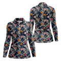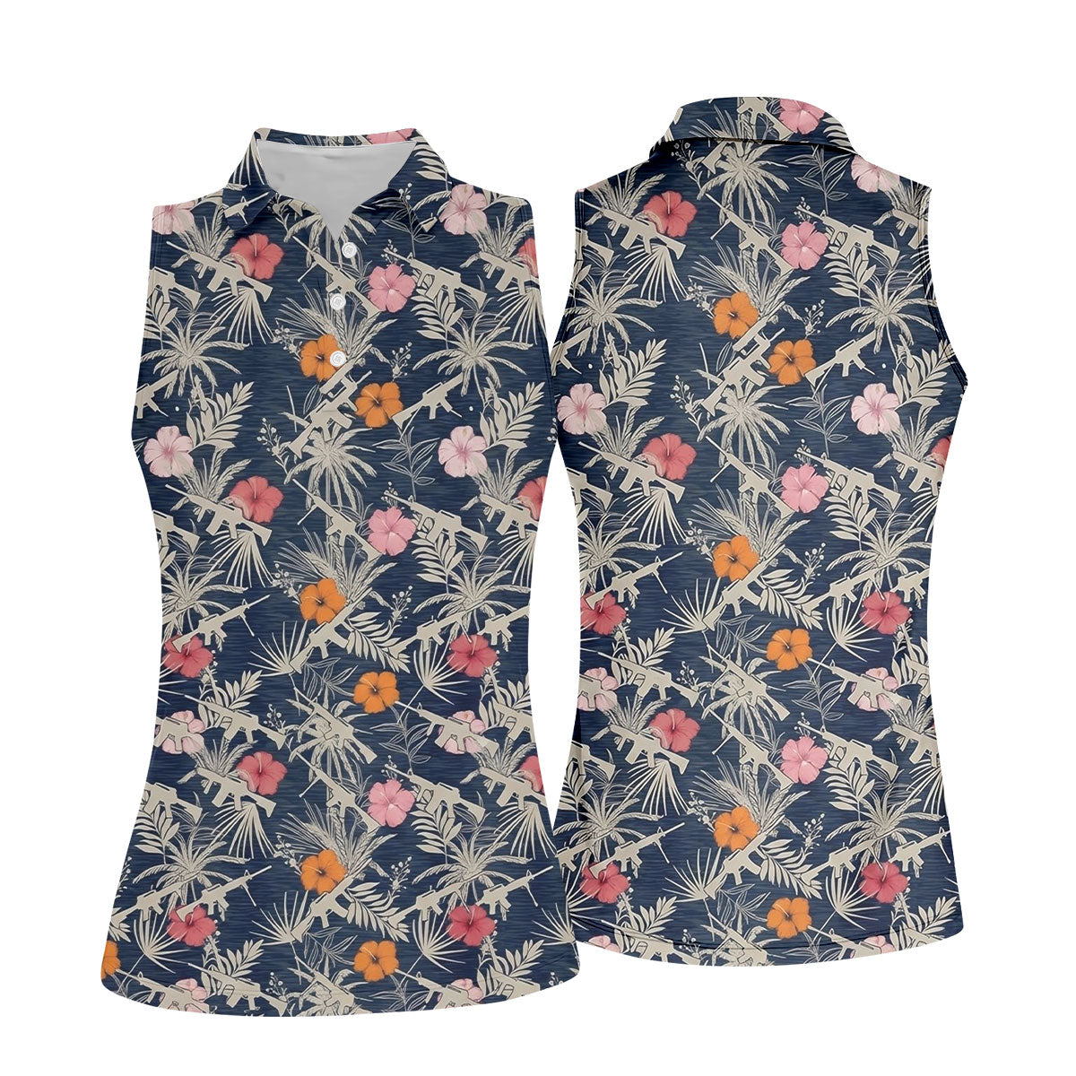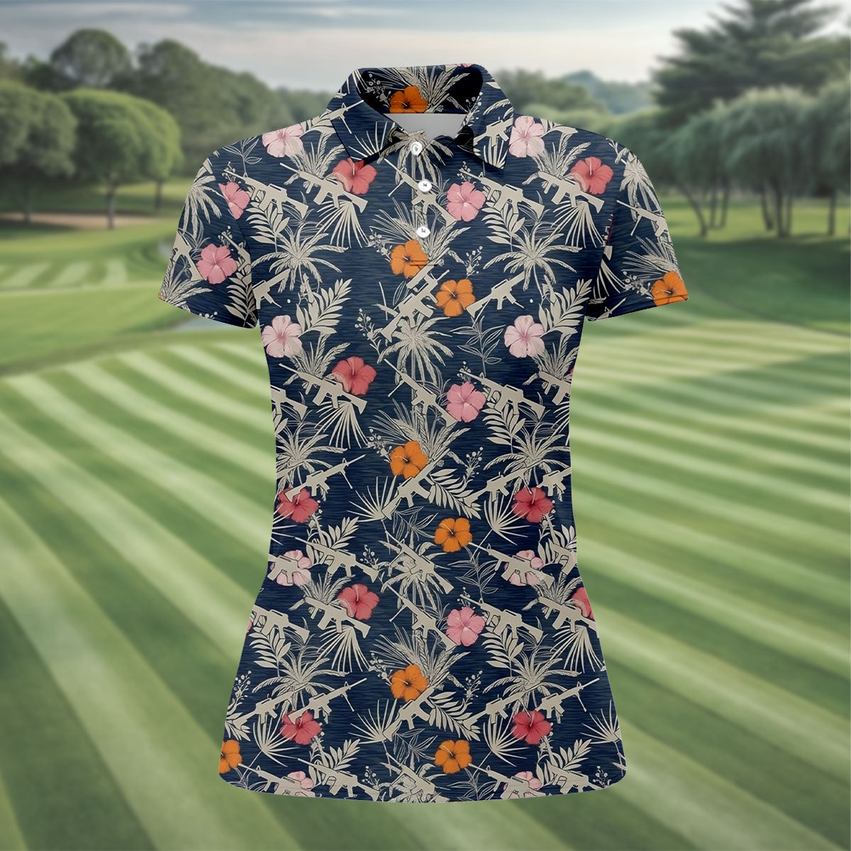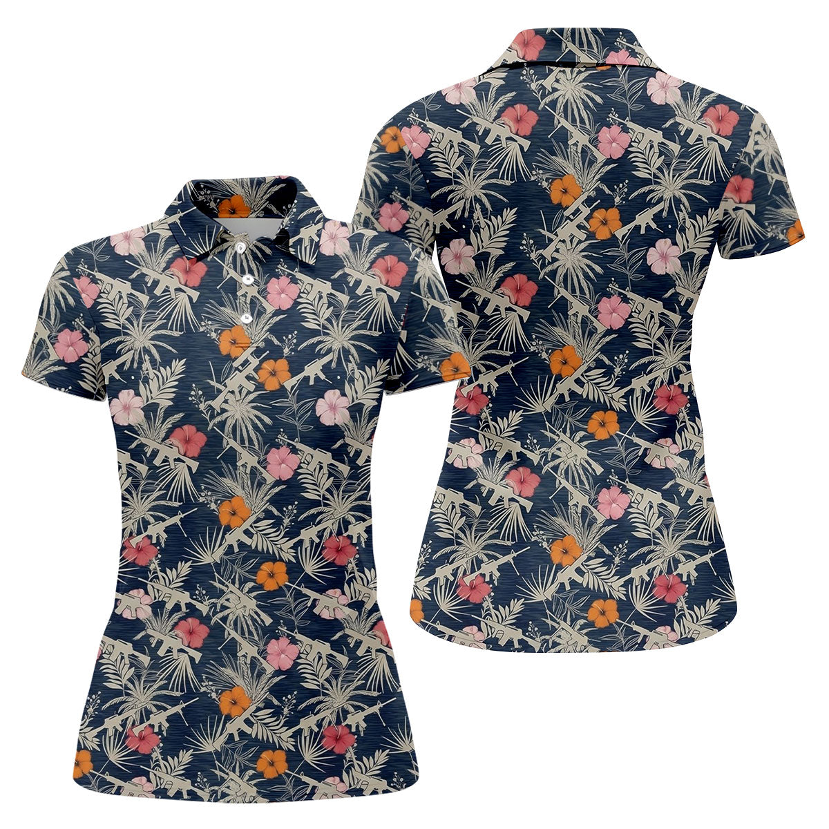 Hawaiian Hibicus Military Theme Navy Golf Shirt, Women Golf Top, Ladies Golf Shirts