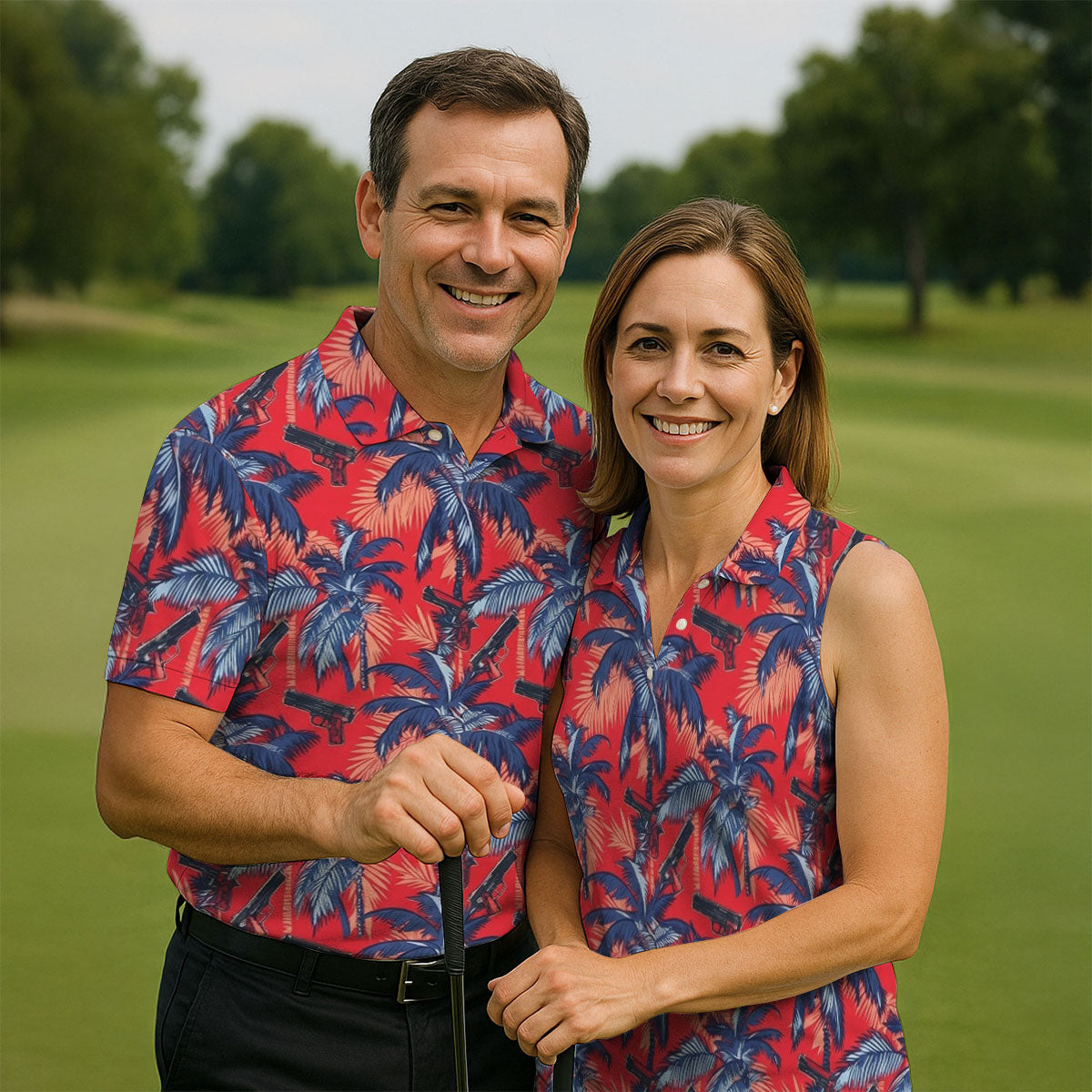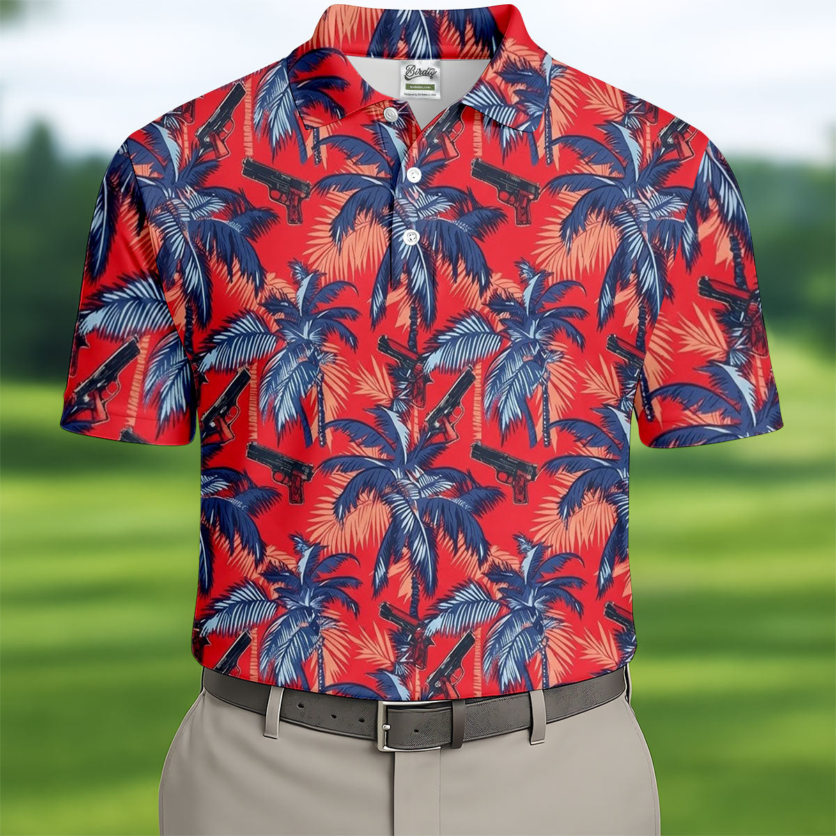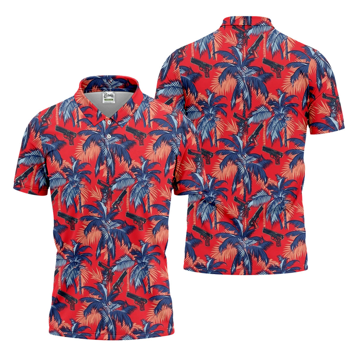 Hawaiian Palm Tree Military Theme Red Golf Shirt, Golf Shirts For Men, Polo Shirts For Men