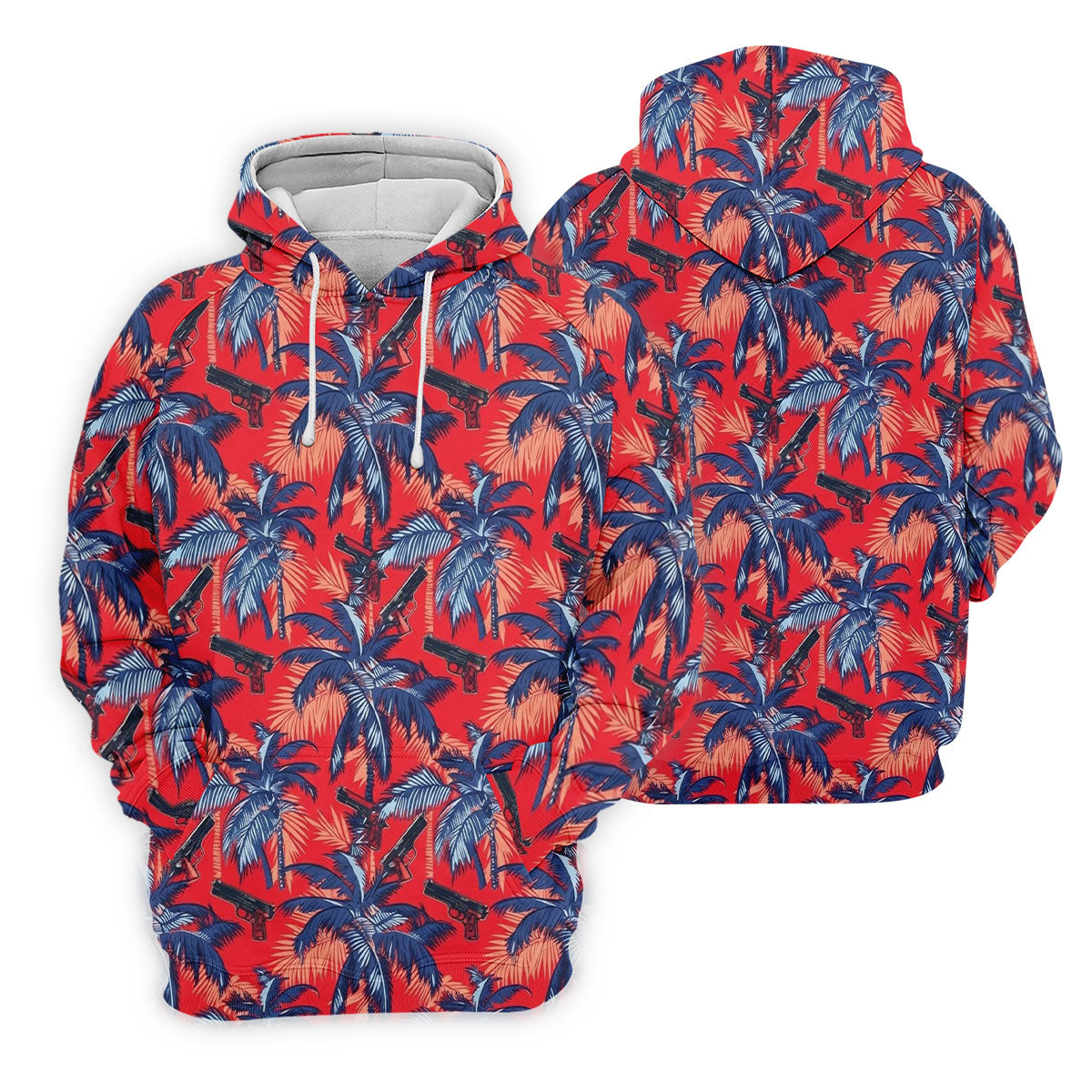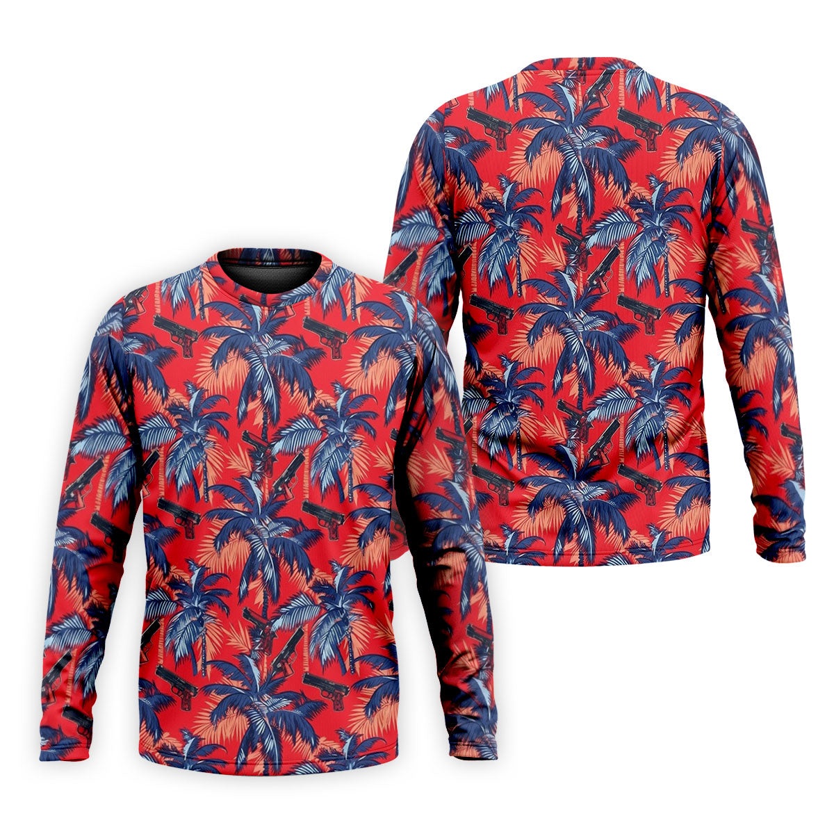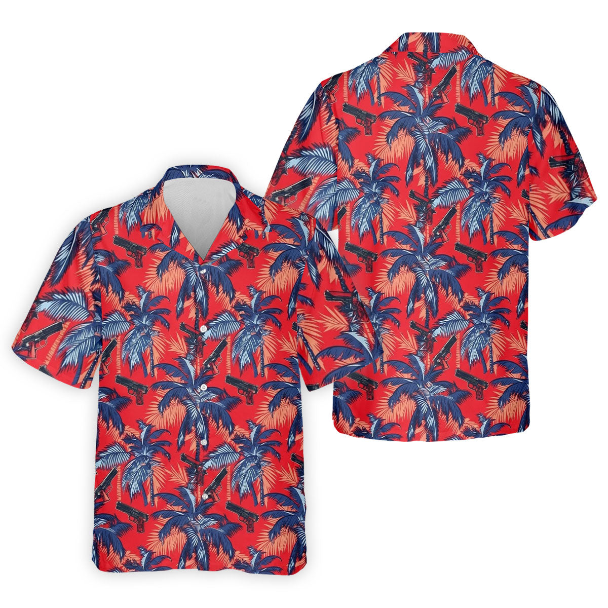 Hawaiian Palm Tree Military Theme Red Golf Shirt, Golf Shirts For Men, Polo Shirts For Men