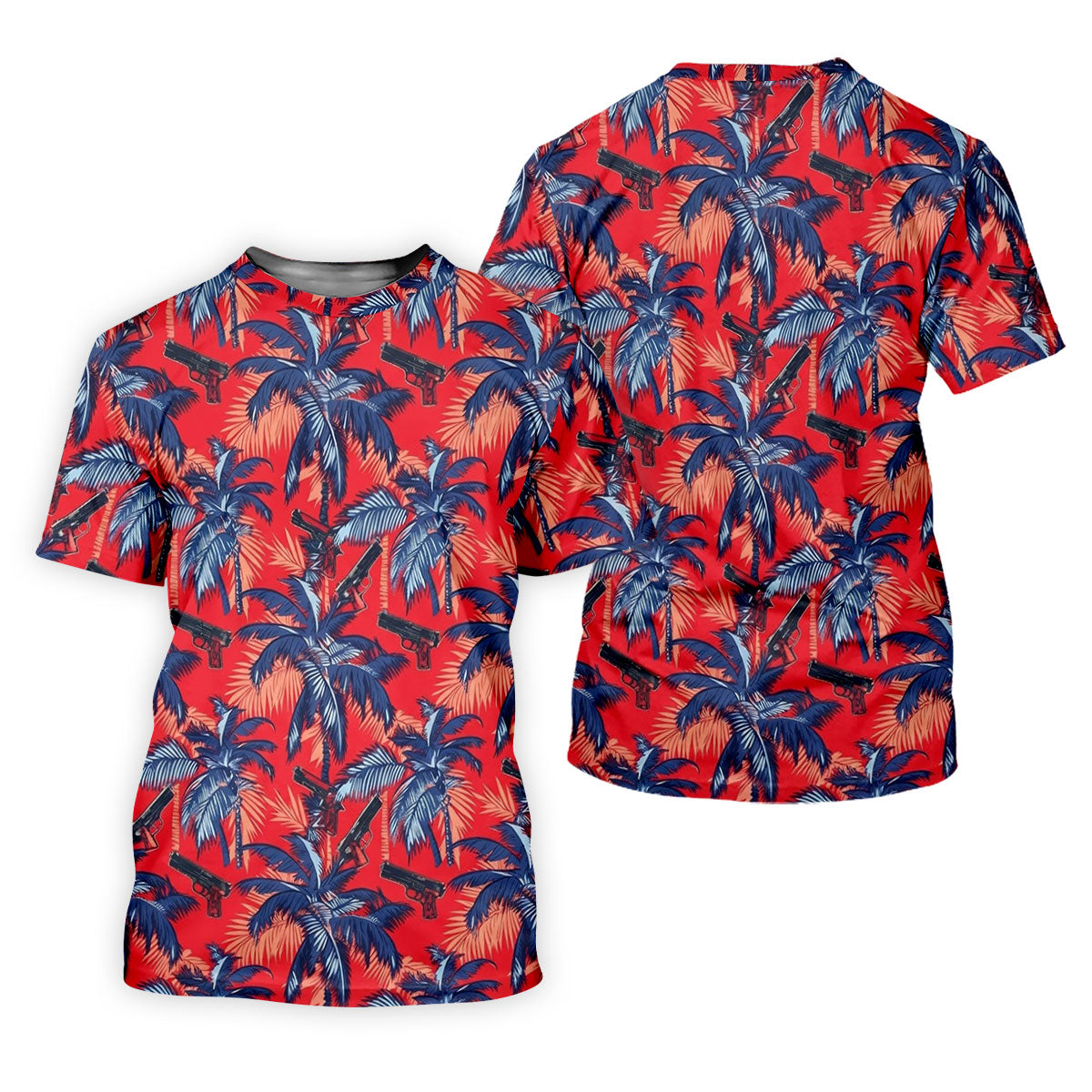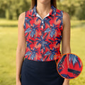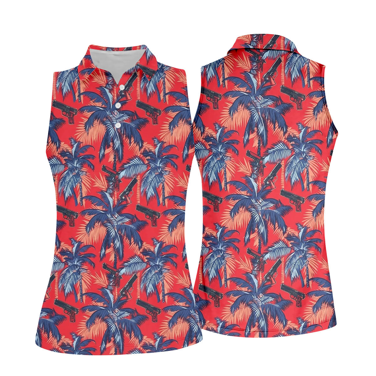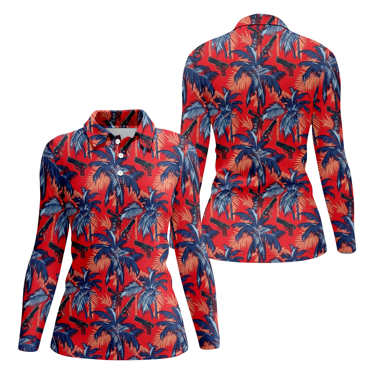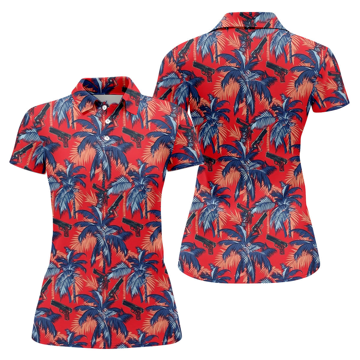 Hawaiian Palm Tree Military Theme Red Golf Shirt, Women Golf Top, Ladies Golf Shirts