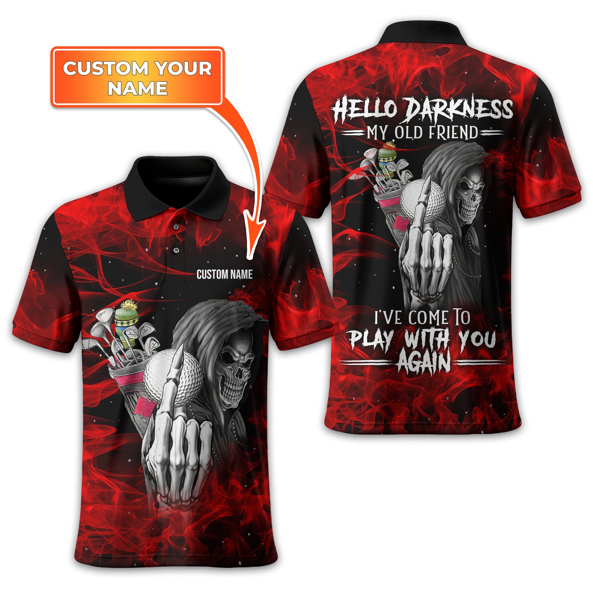 Hello Darkness My Old Friend, Custom Polo Golf Shirt, Present For Golfer