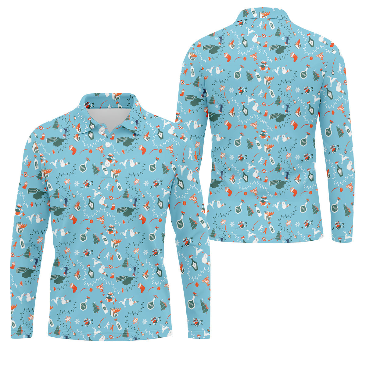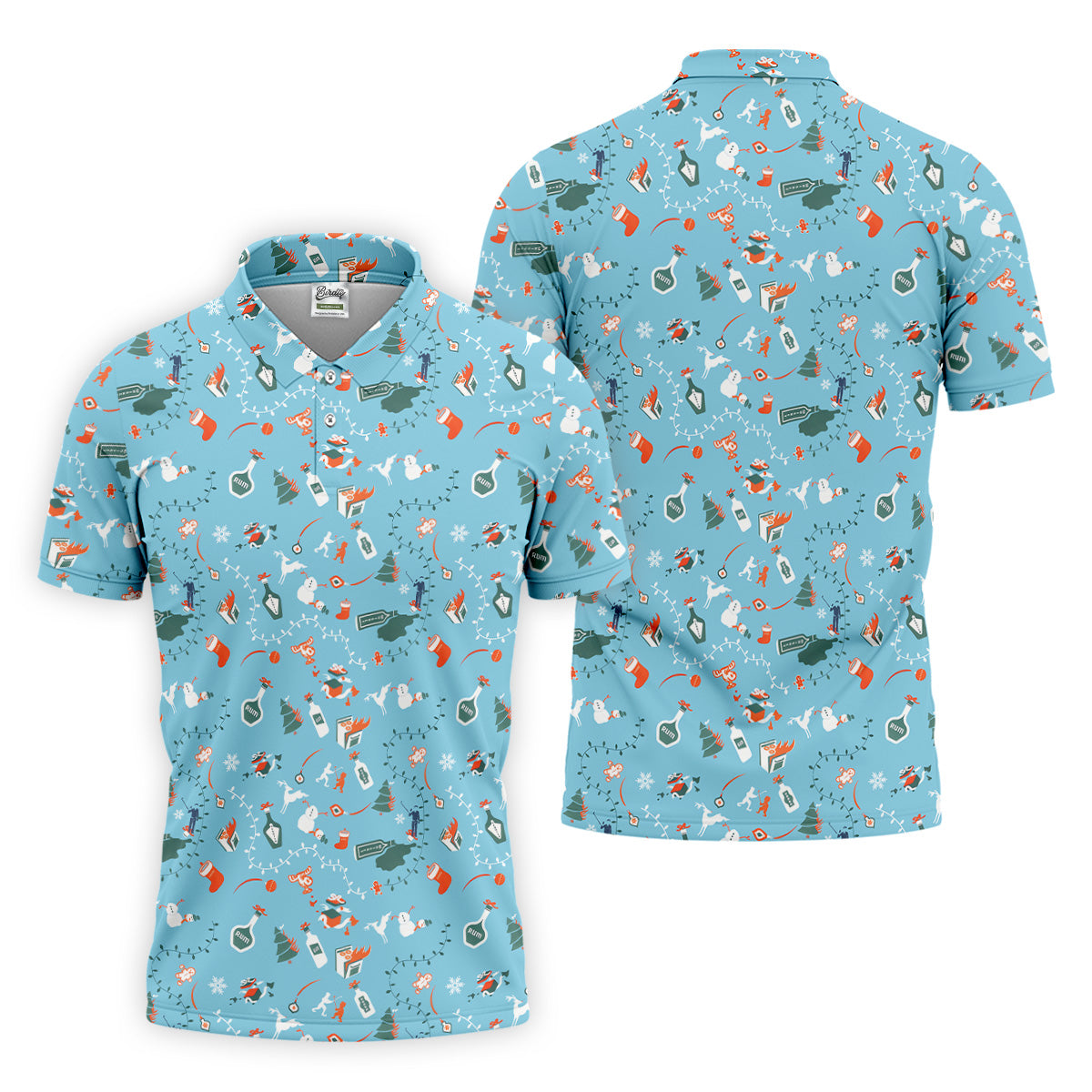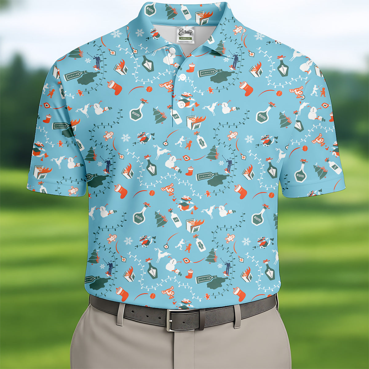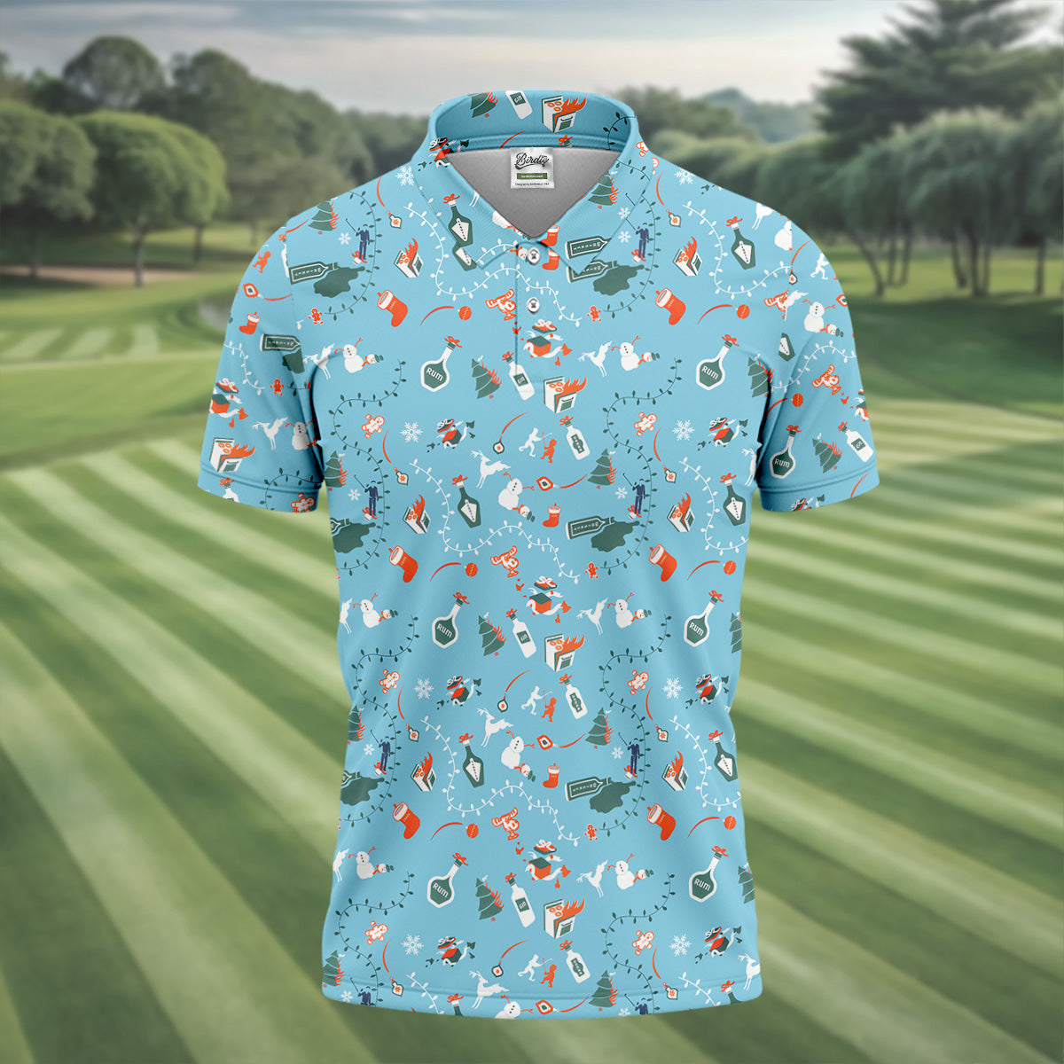 Holiday Chaos Ice Blue Color Golf Tops For Men, Christmas Golf Shirt, Golf Shirts For Men, Golfing Apparel