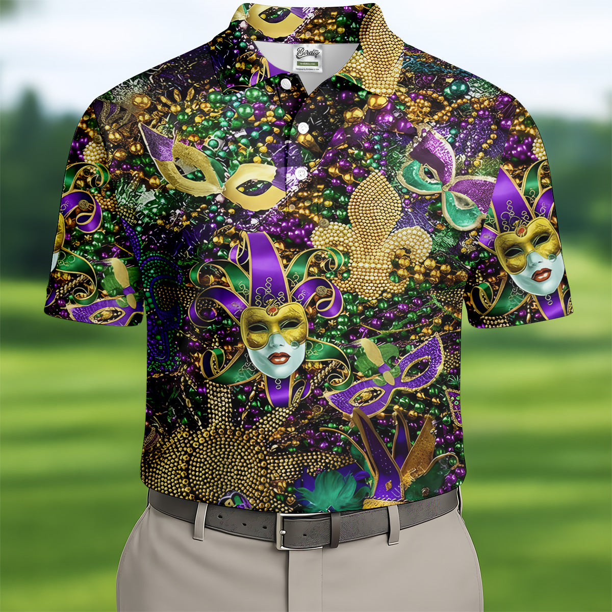 Our Mardi Gras golf shirts are made for players who’d rather turn heads than blend in. Designed for confidence, comfort, and a healthy dose of humor, each polo is your ticket to brighter fairways, louder laughs, and just enough distraction to keep your buddies guessing.