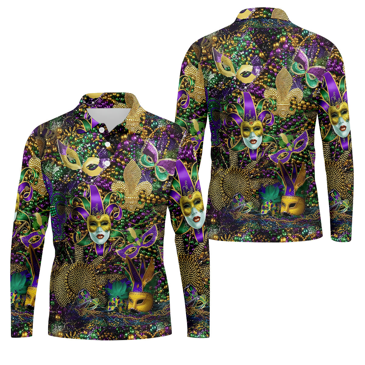 Holiday Mardi Gras Green Purple Gold Golf Tops For Men, Polo Shirts For Men, Golf Gift For Men