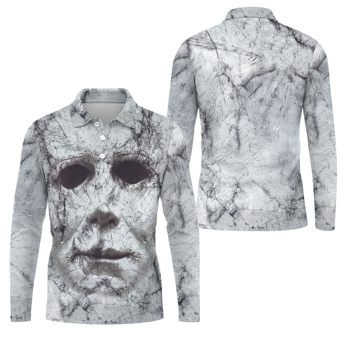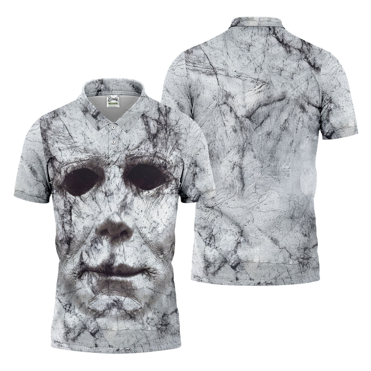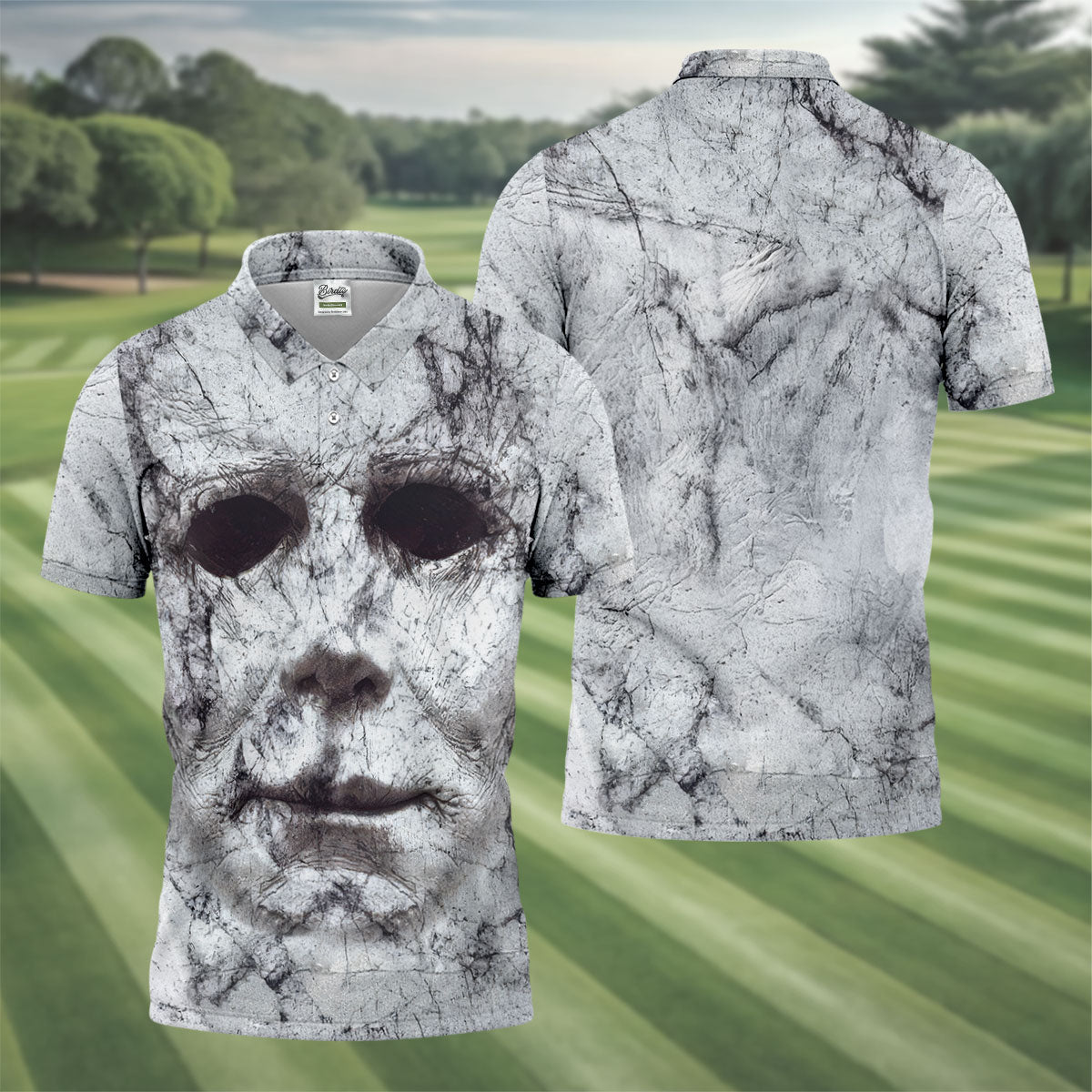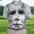 Horror Myer Face Polo Shirts For Men, Horror Cosplay Golf Tops For Men, Halloween Golf Shirt