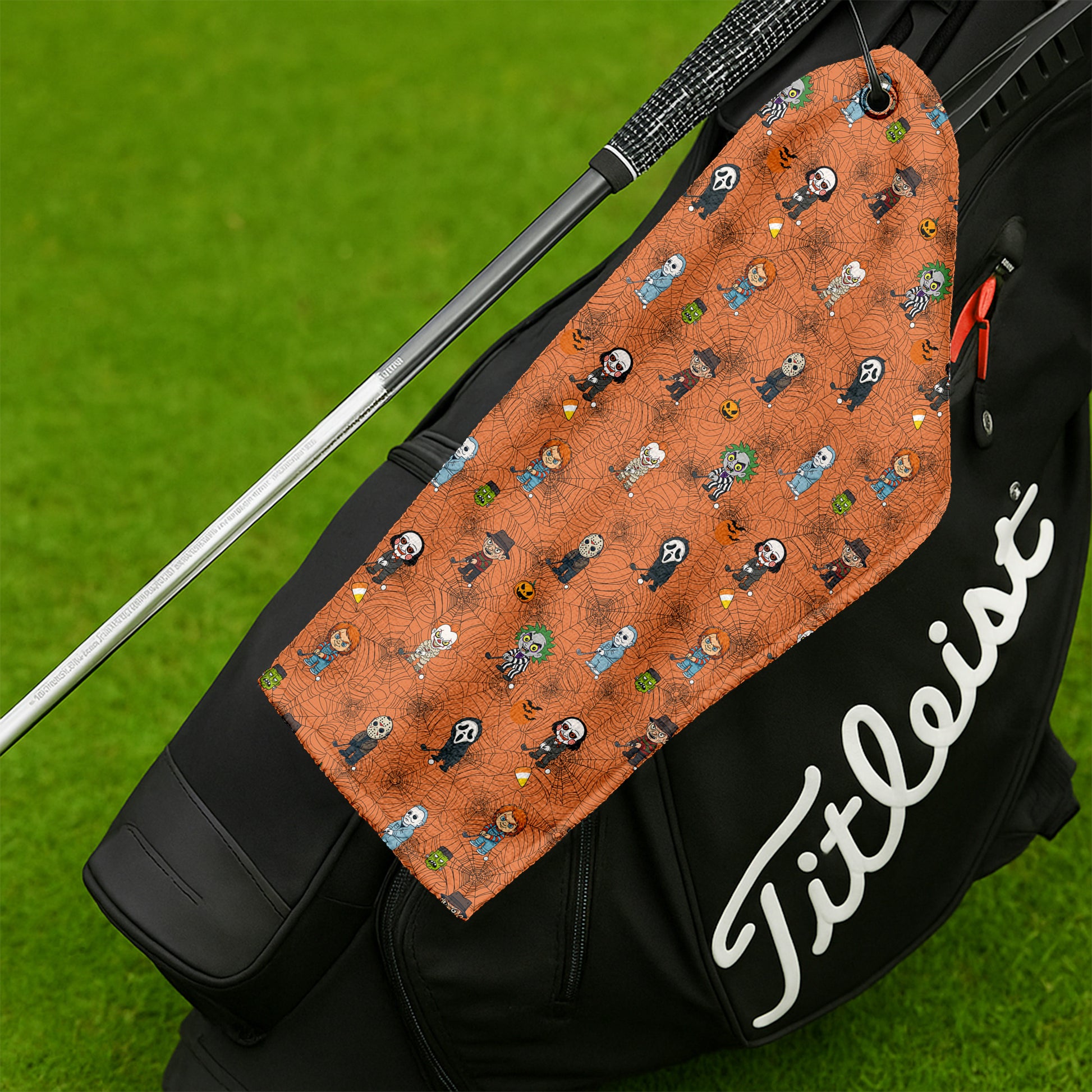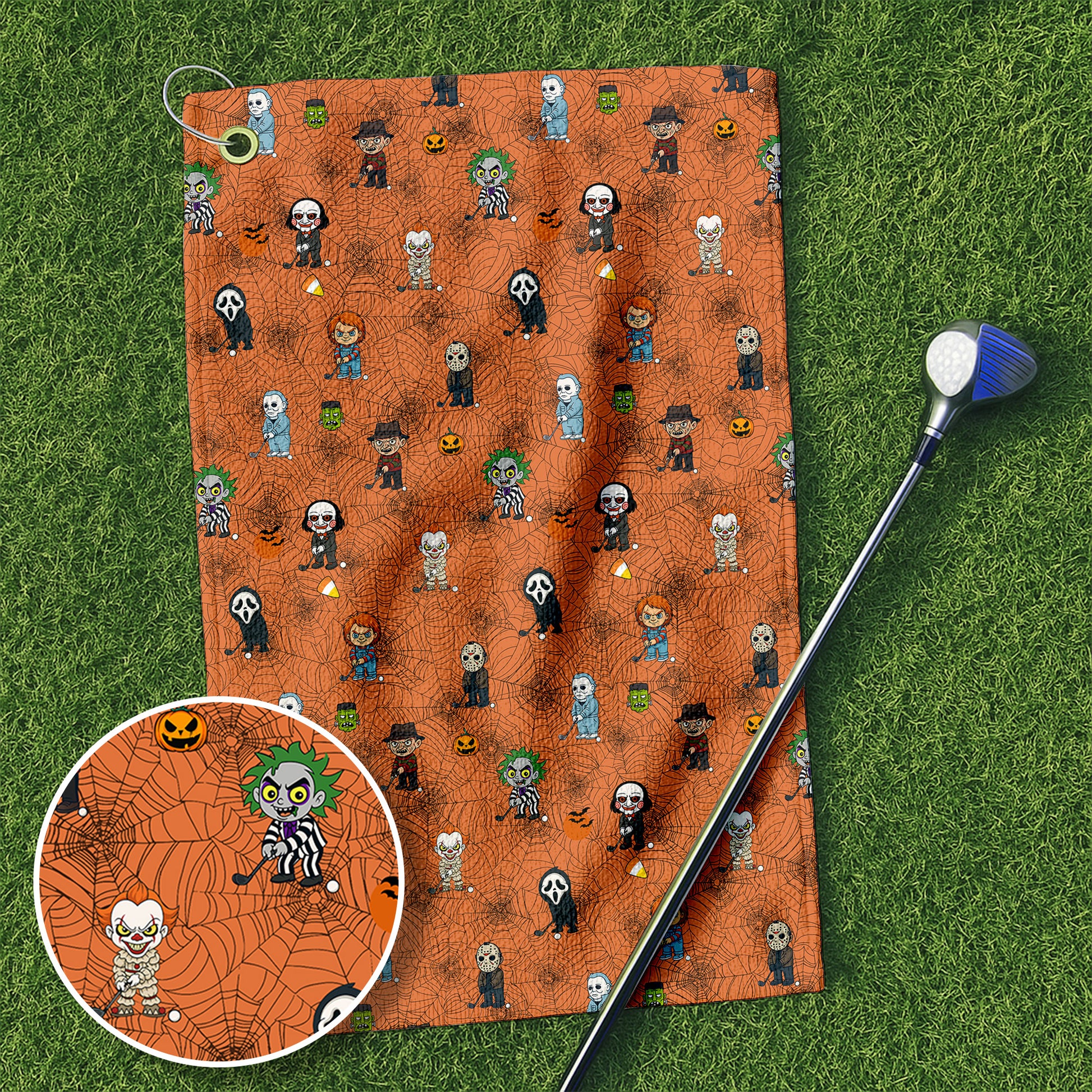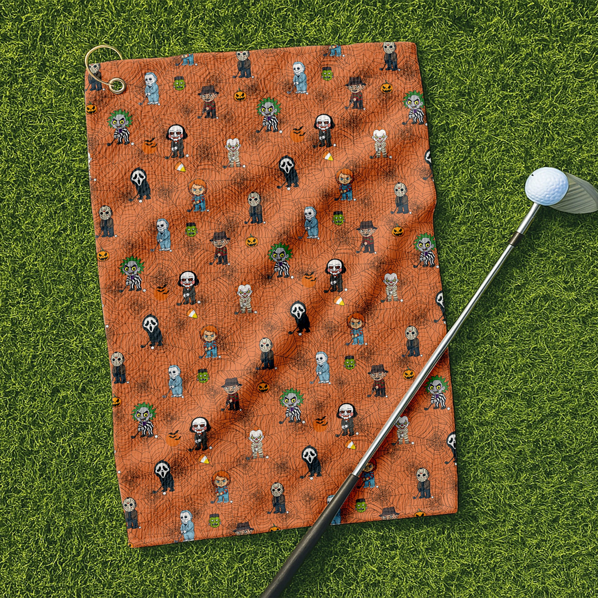 Horror Movie Characters Orange Golf Towel, Unique Gift For Golfer, Christmas Golf Gift, Golf Accessories
