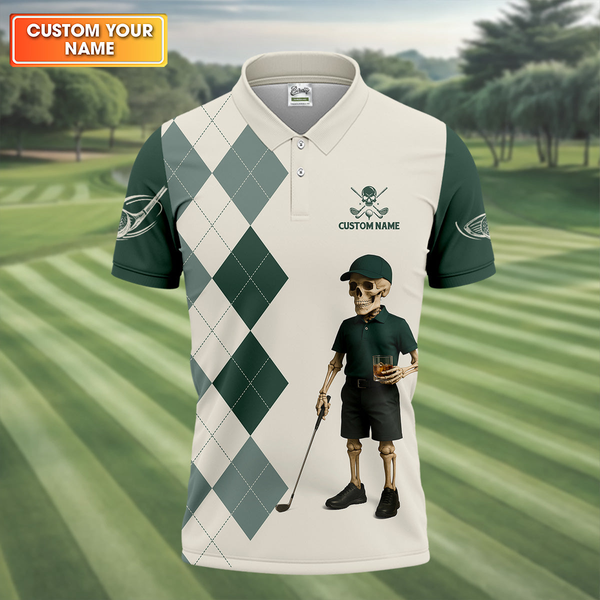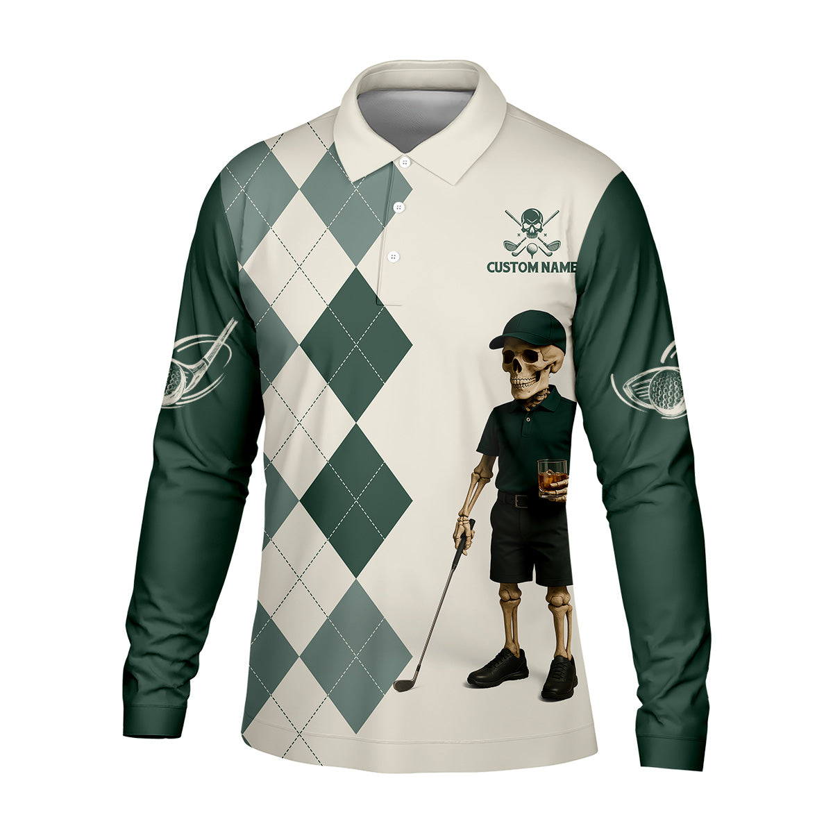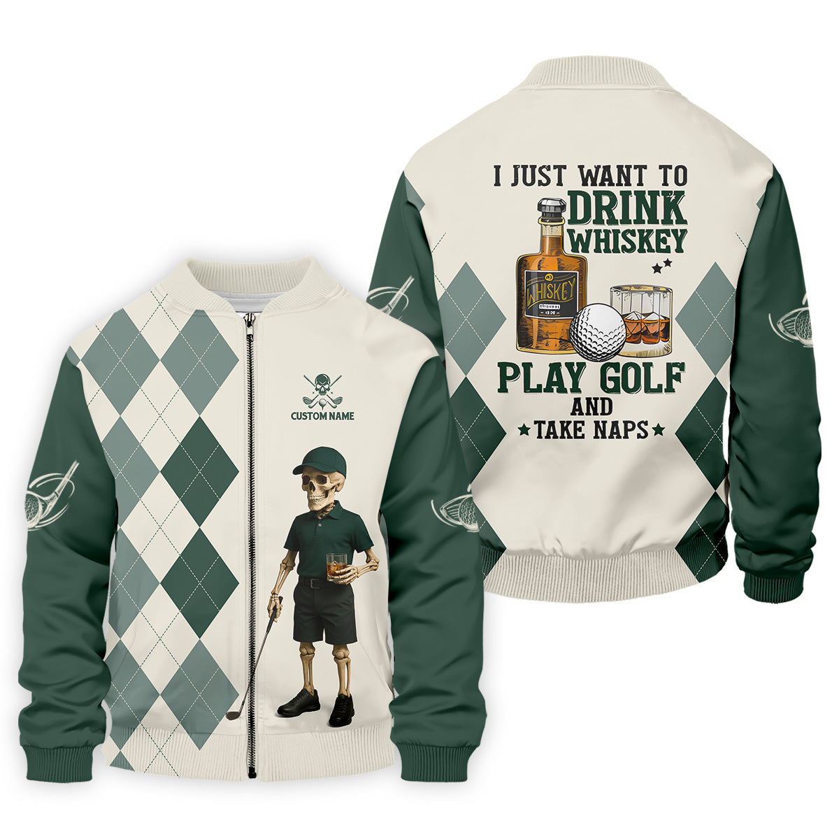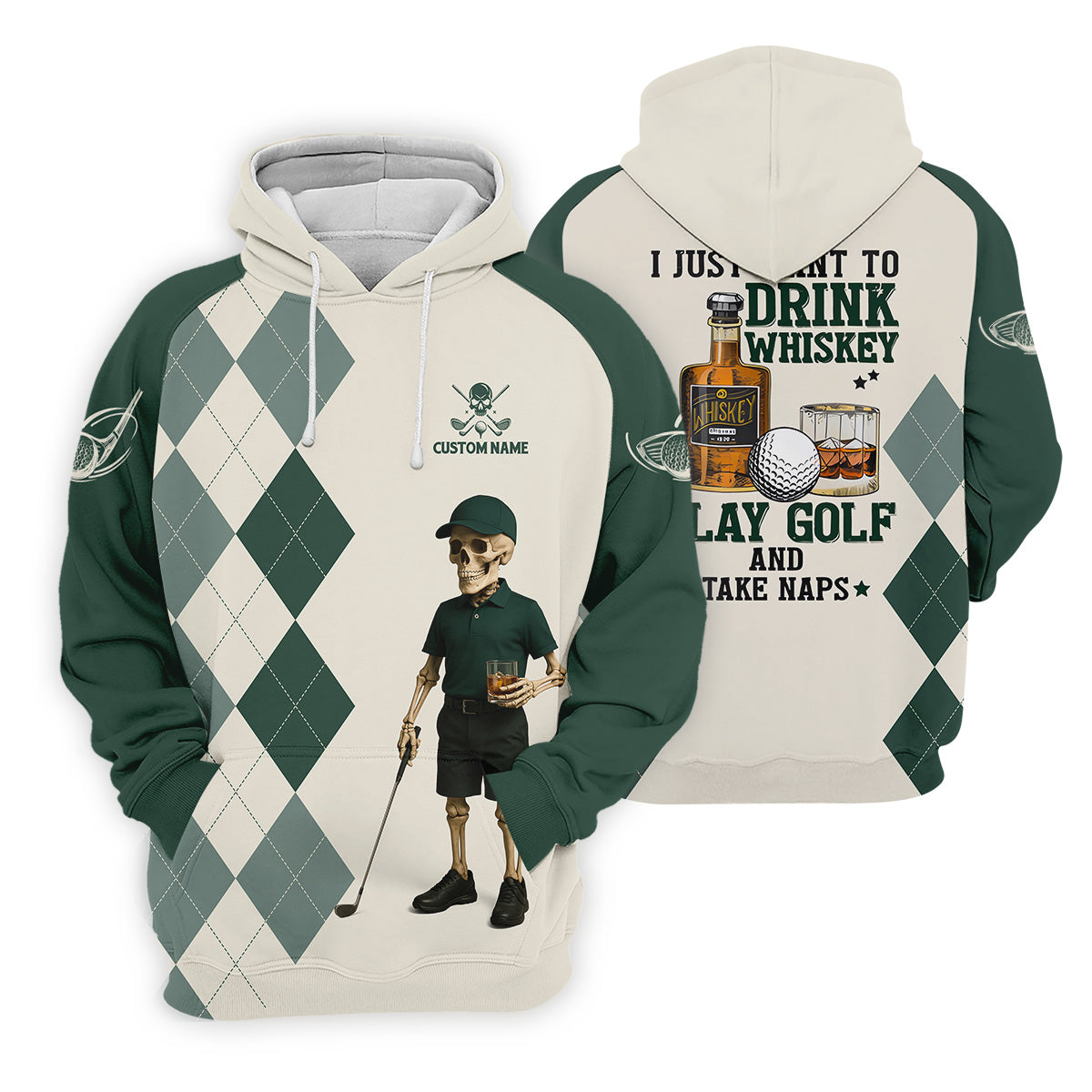 I Just Want To Drink Whiskey Play Golf And Take Naps Funny Skeleton Argyle Golf Shirt, Mens Funny Golf Shirts