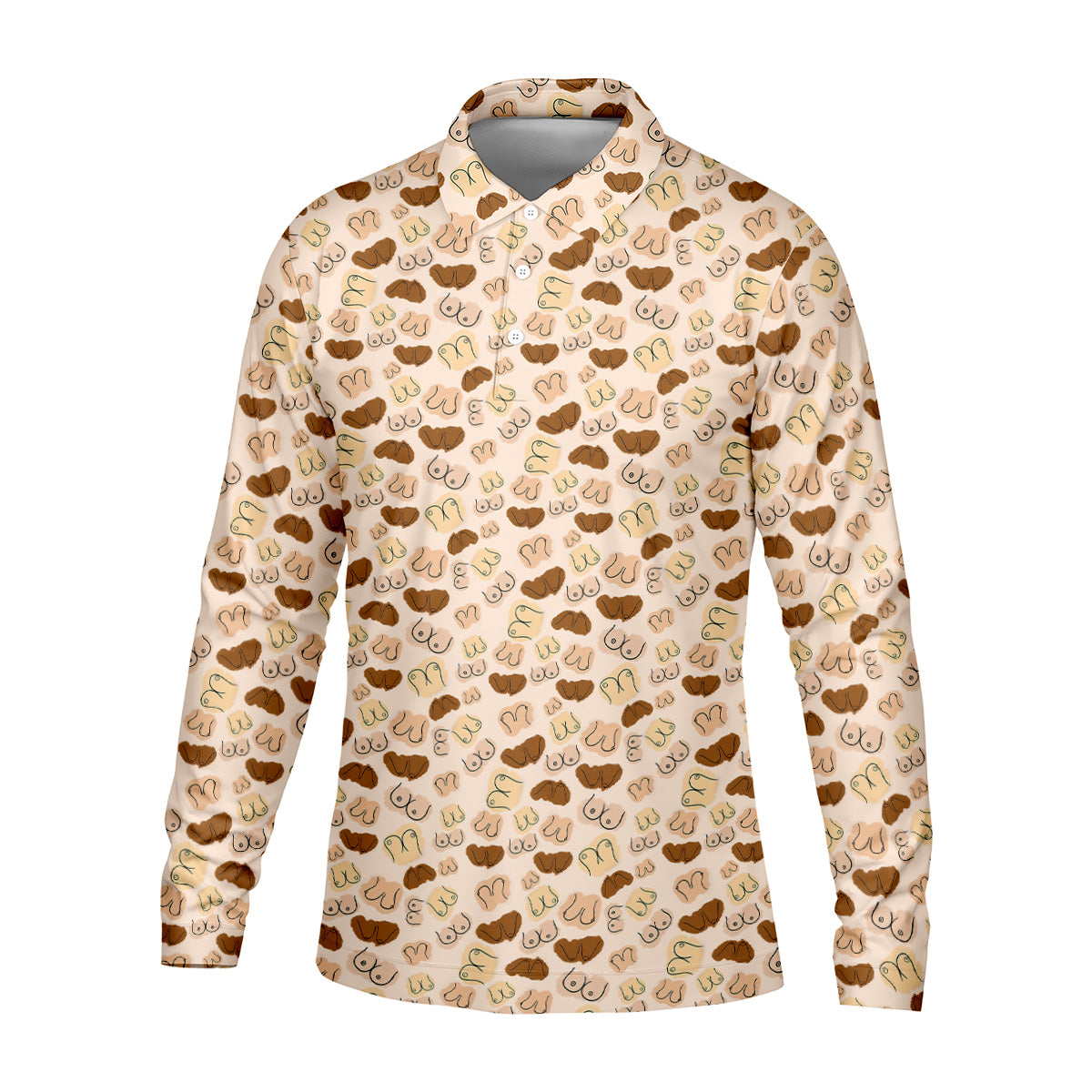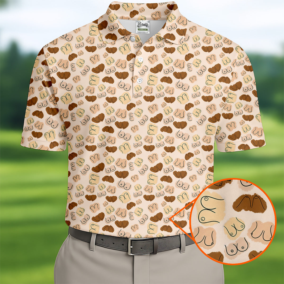 Beige Fun Men's Golf Polos, Cool Golf Polos, Mens Golf Polo Shirts, Golf Gift For Men