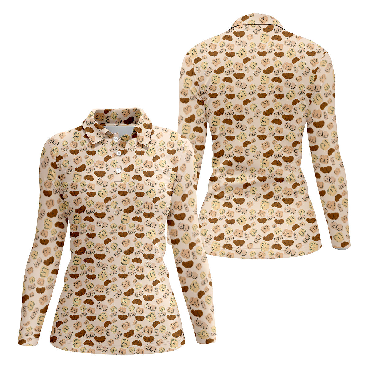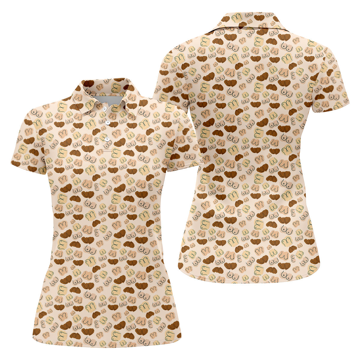 Beige Fun Womens Golf Shirts, Womens Golf Tops, Unique Gift For Golfer, Ladies Golf Polos