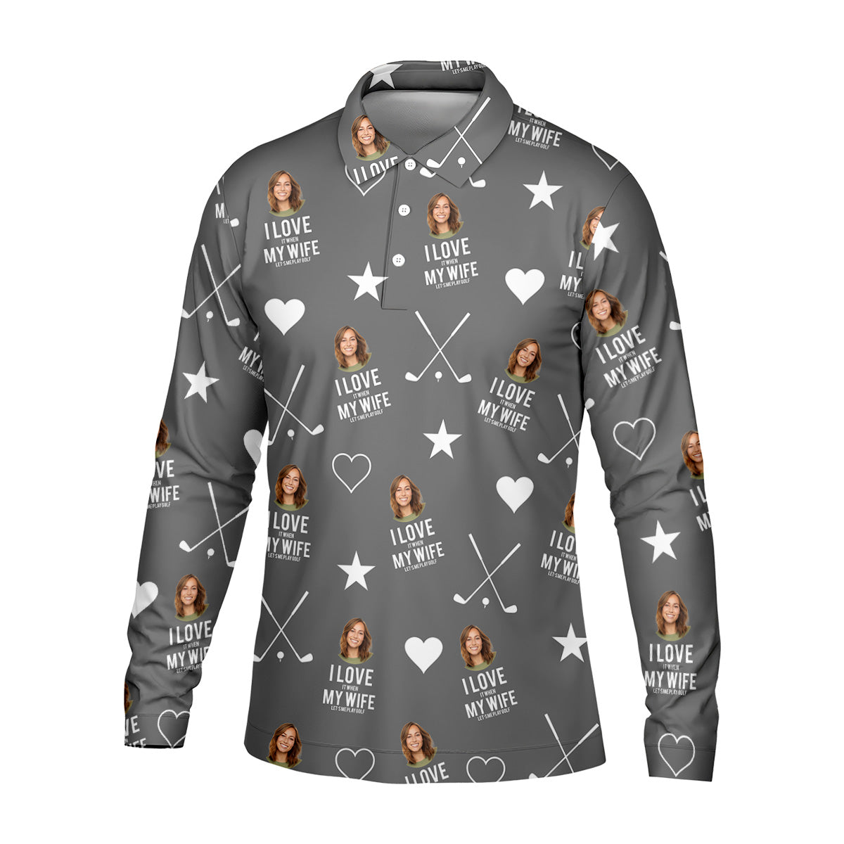 I Love It When My Wife Let's Me Play Golf Grey Fun Golf Shirts For Men, Polo Shirts For Men