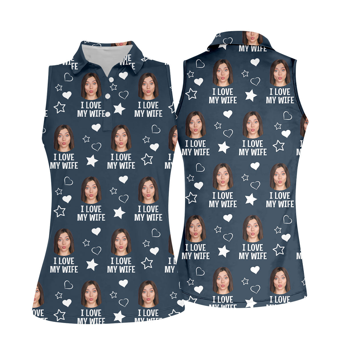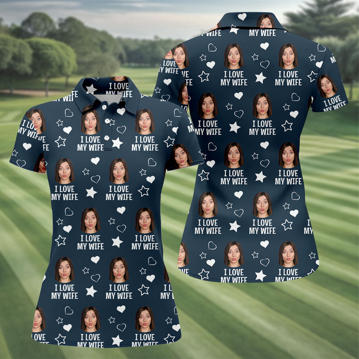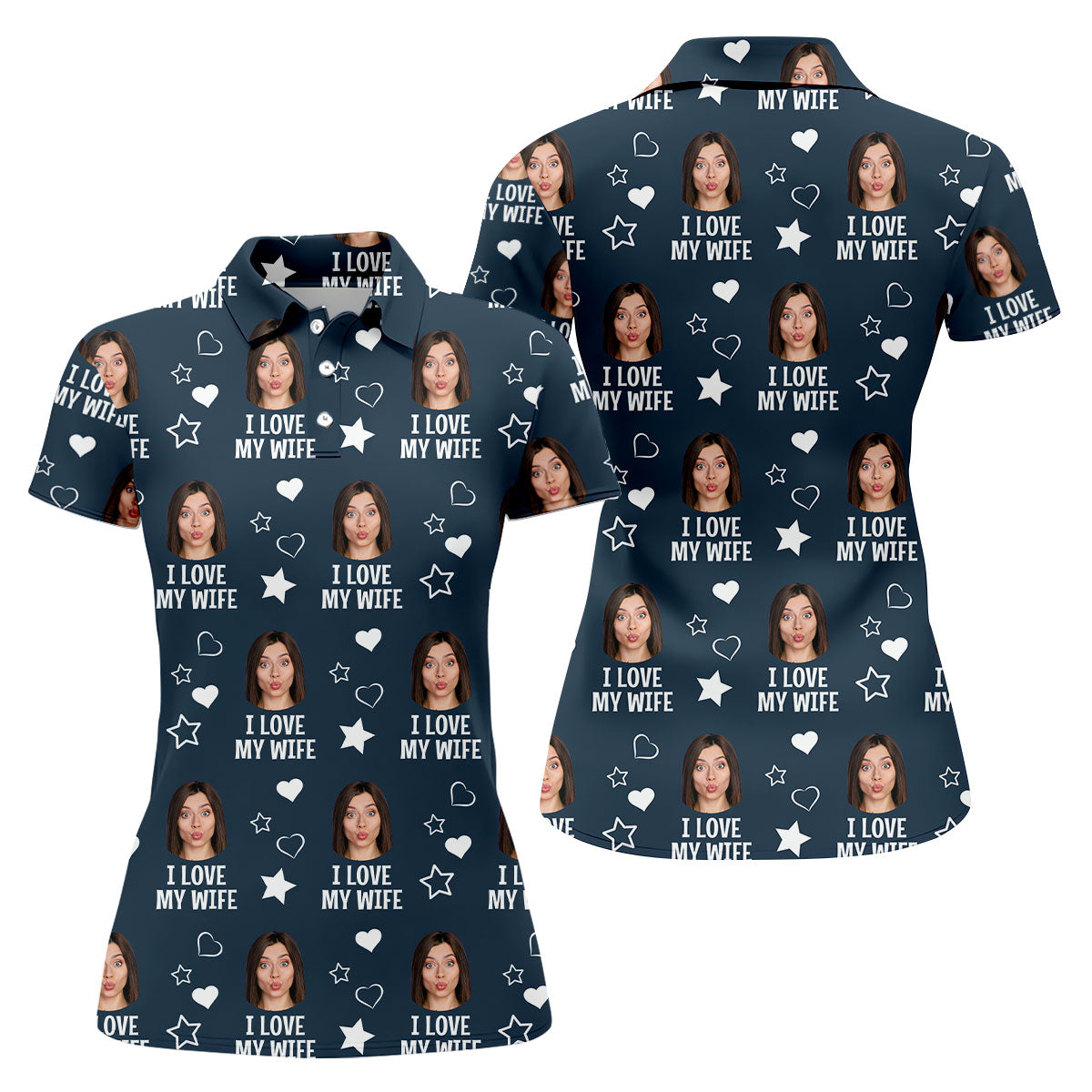 I Love My Husband Custom Face Navy Golf Shirt, Fun Women's Golf Shirts, Valentines Golf Gift, Ladies Golf Shirts