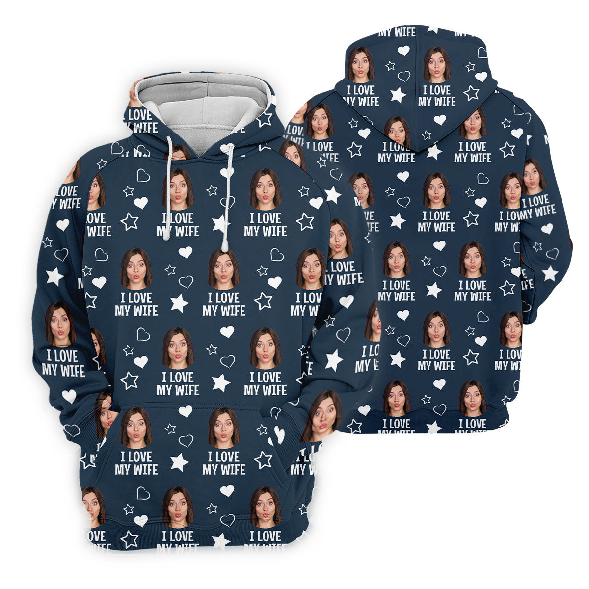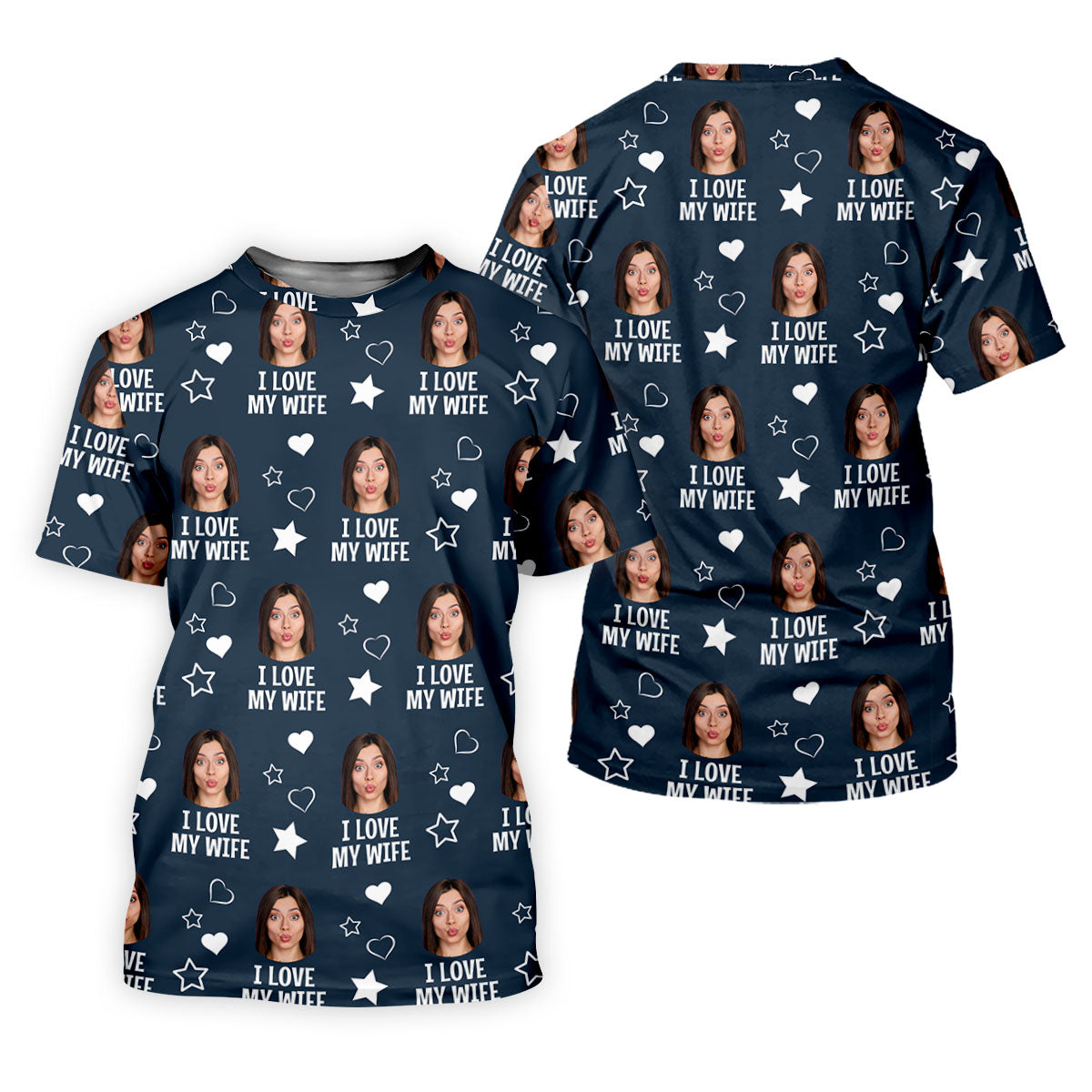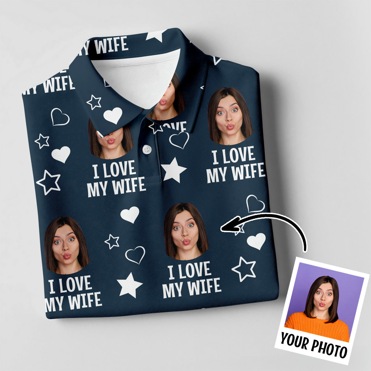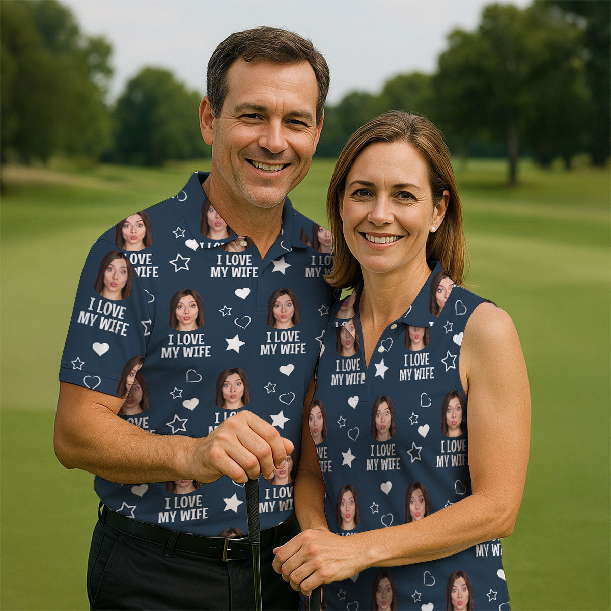 I Love My Husband Custom Face Navy Golf Shirt, Fun Women's Golf Shirts, Valentines Golf Gift, Ladies Golf Shirts