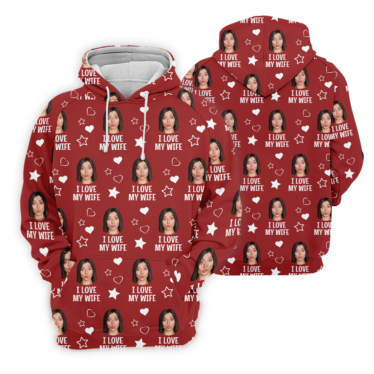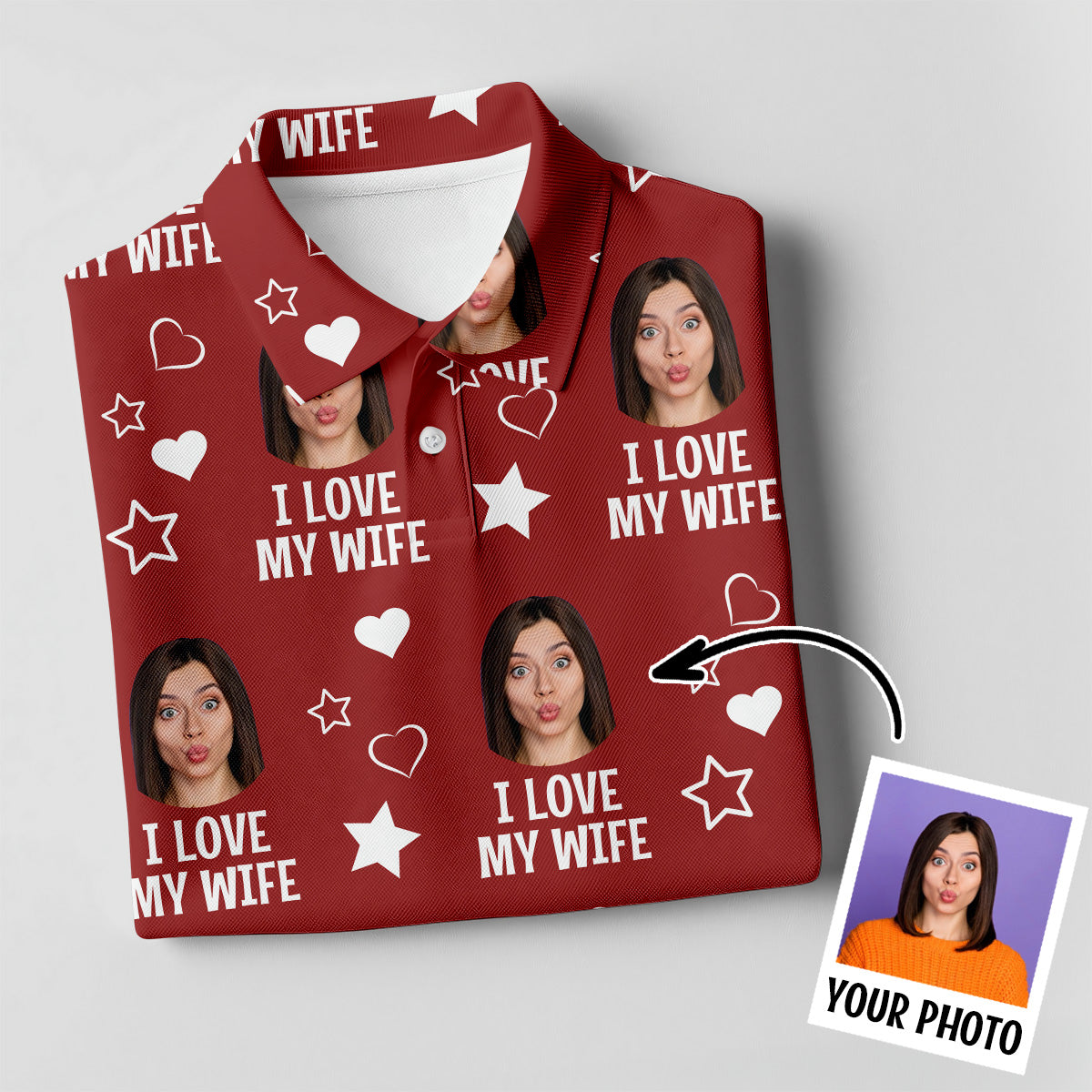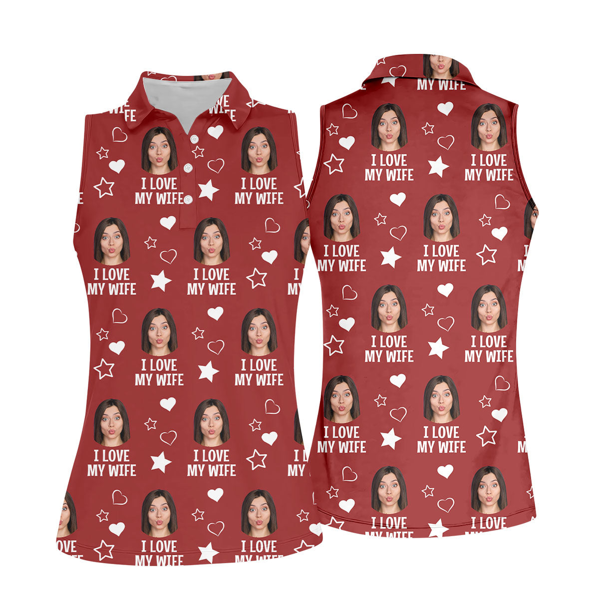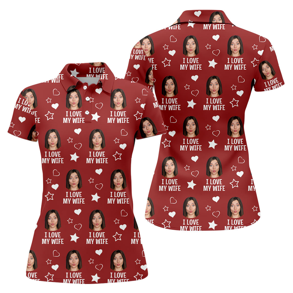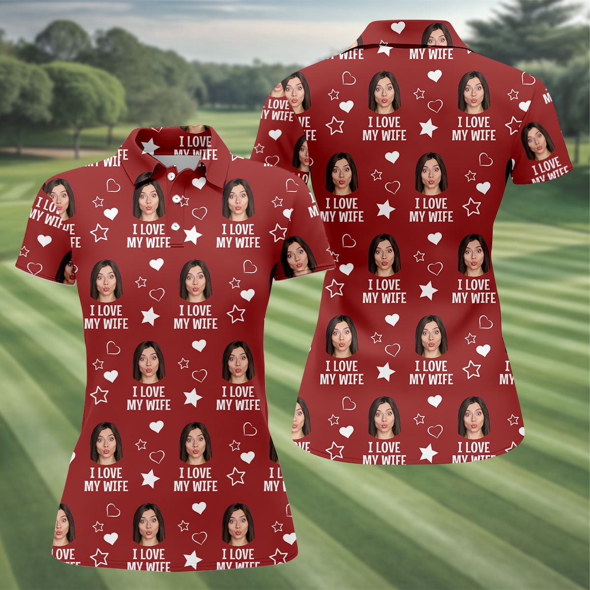 I Love My Husband Custom Face Red Golf Shirt, Fun Women's Golf Shirts, Valentines Golf Gift, Ladies Golf Shirts