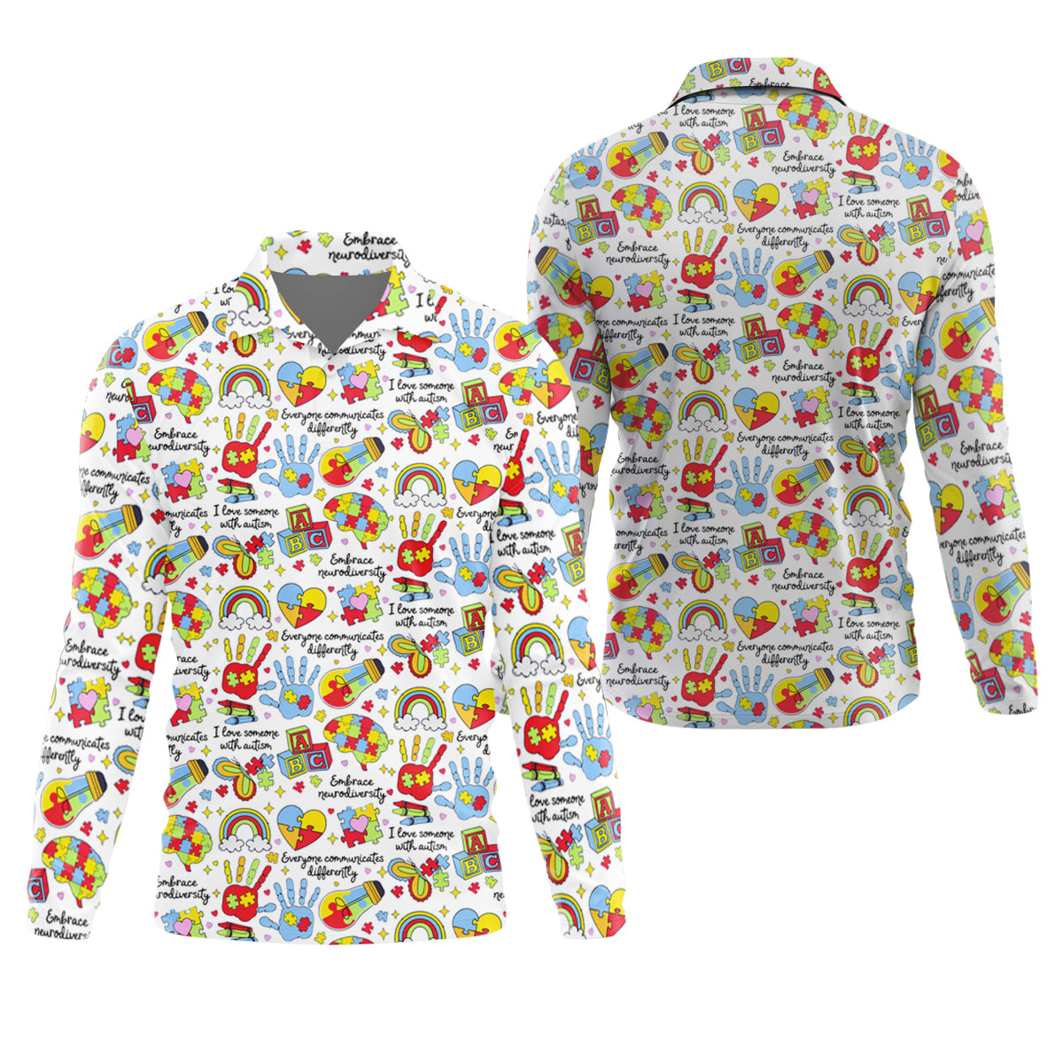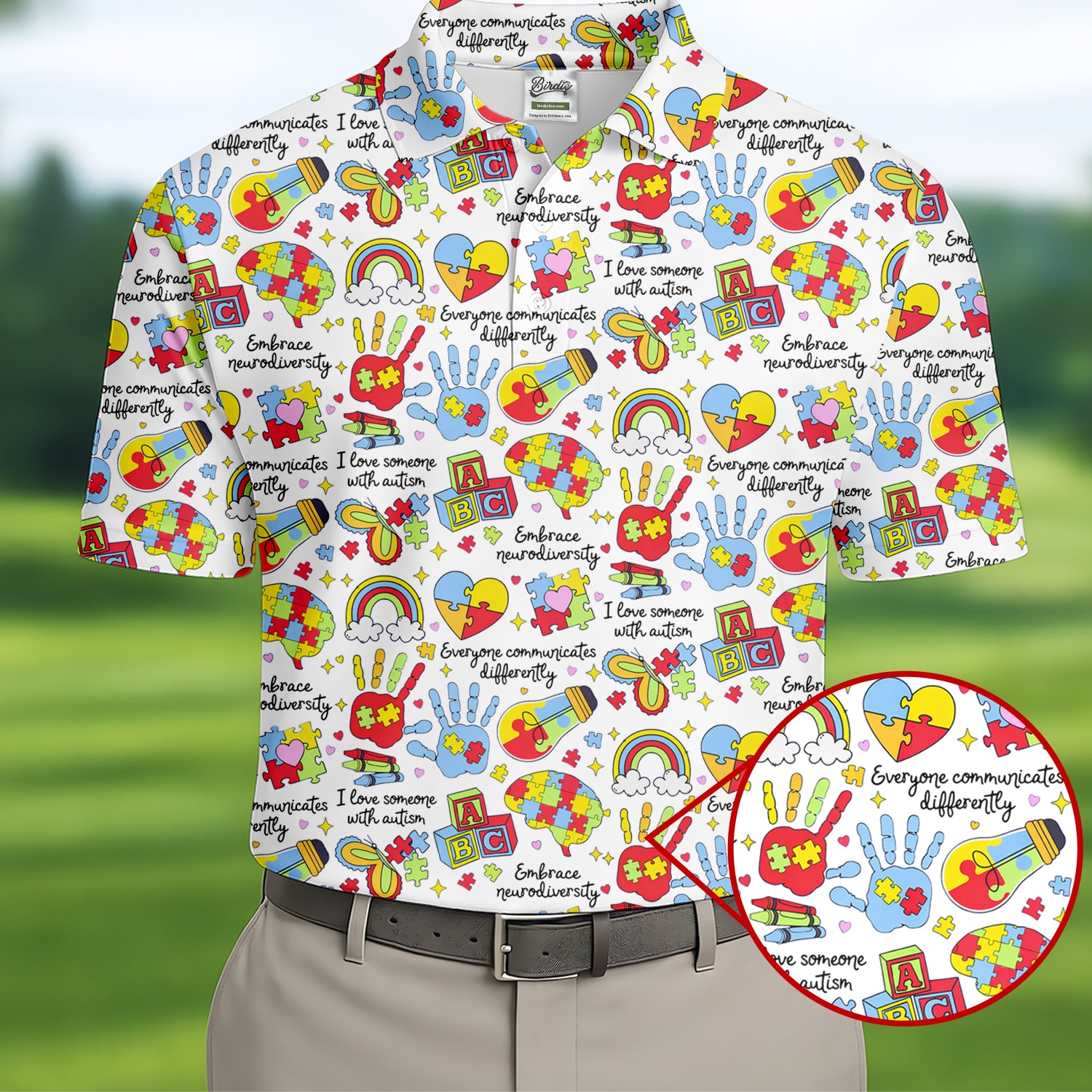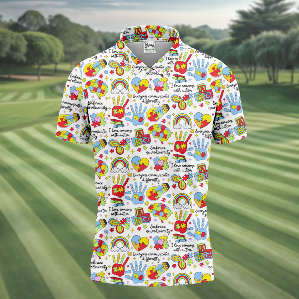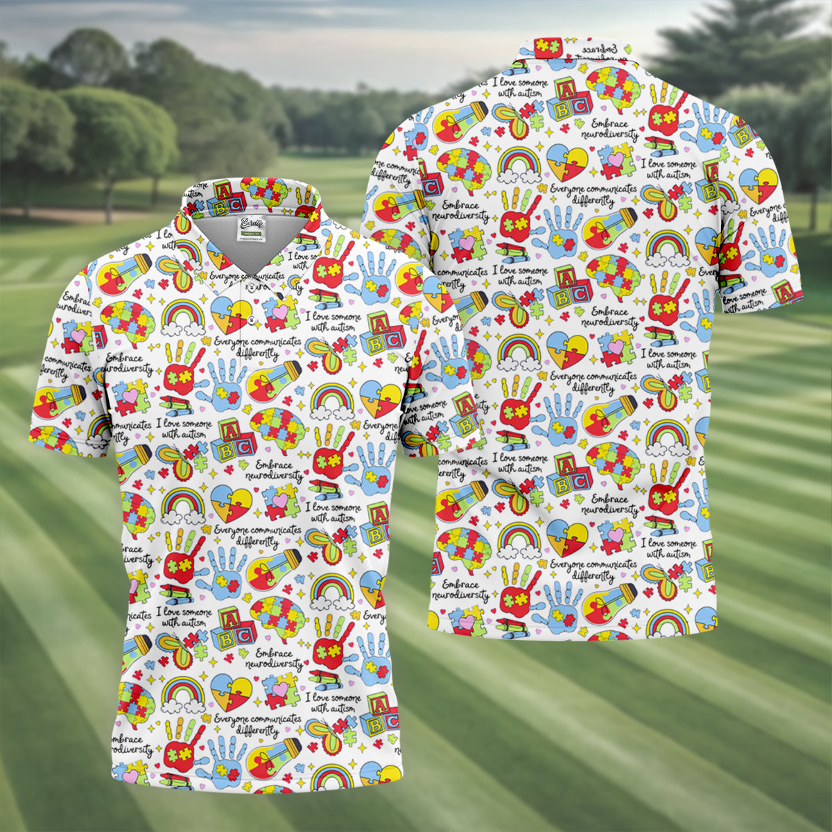 I Love Someone With Autism White Golf Shirt, Autism Awareness Color Polo Shirts For Men, Golf Shirts For Men