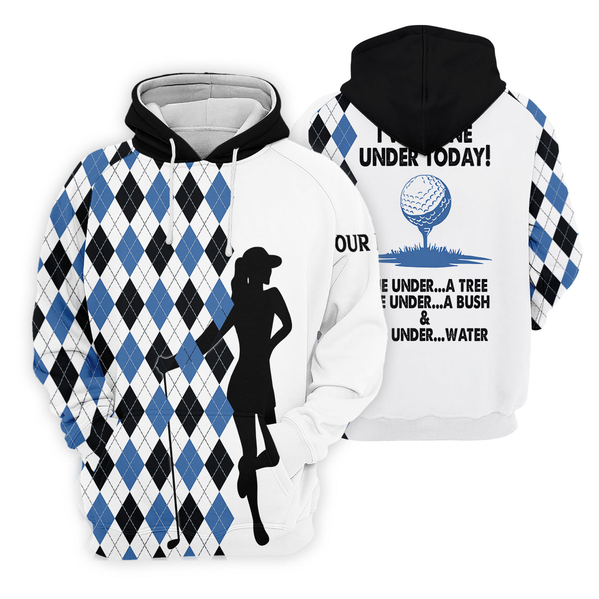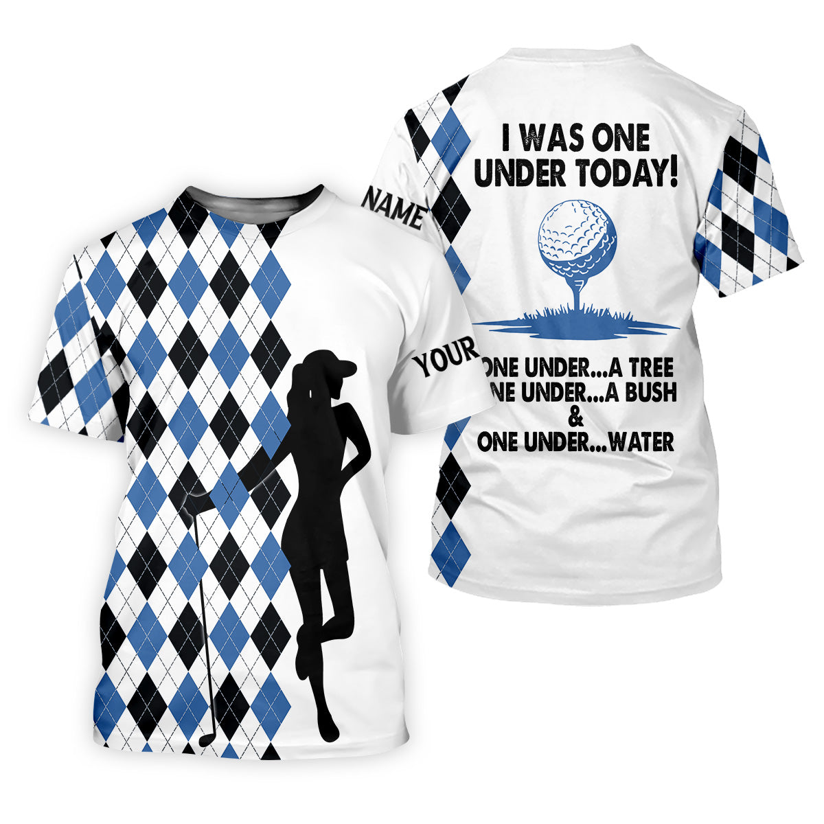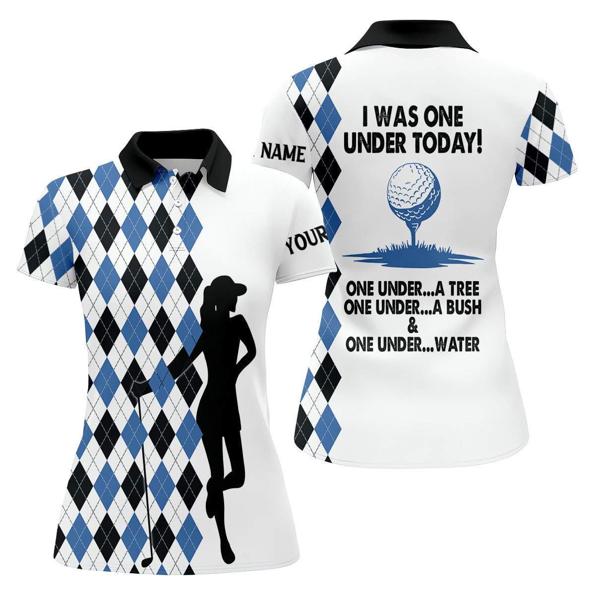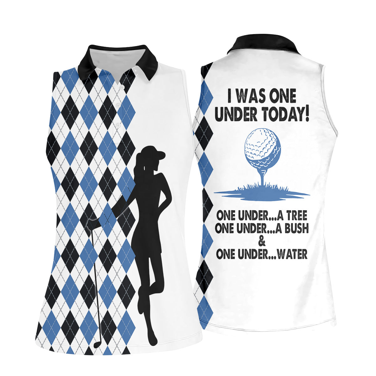 I Was One Under Today Blue Black Argyle Fun Womens Golf Shirts, Ladies Golf Tops, Unique Gift For Golfer