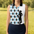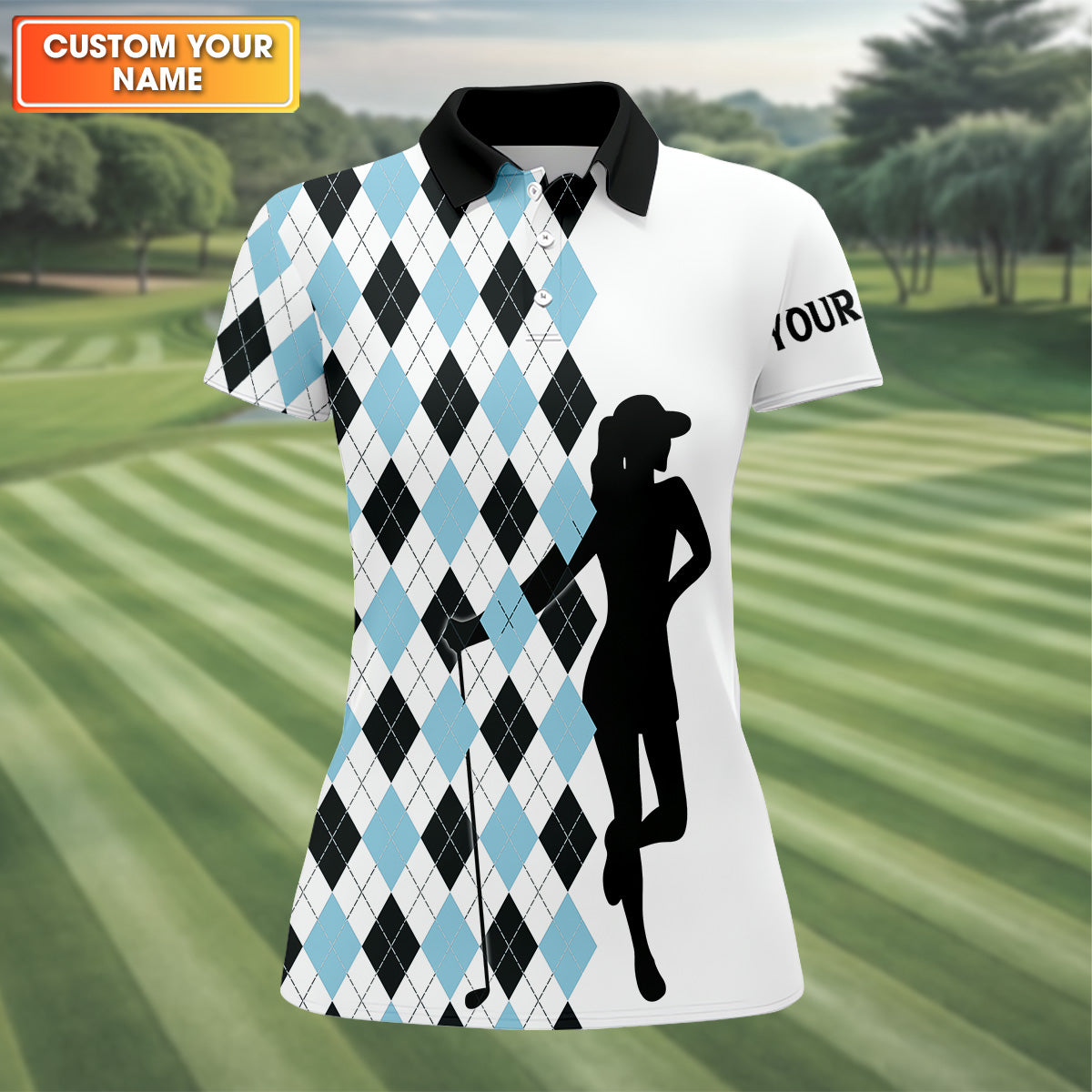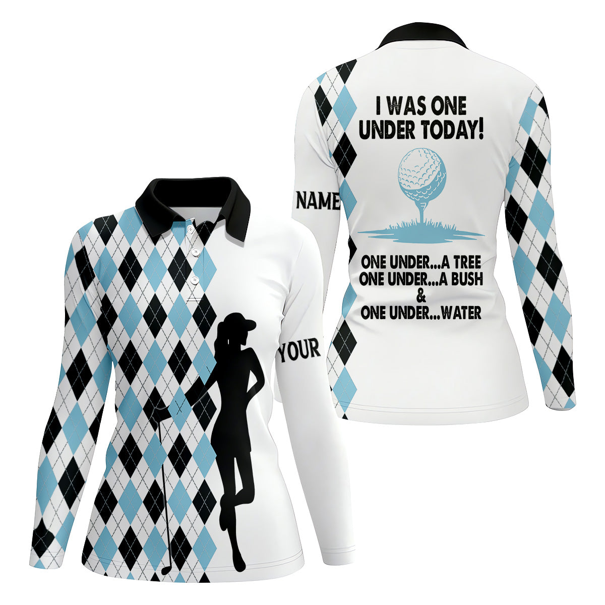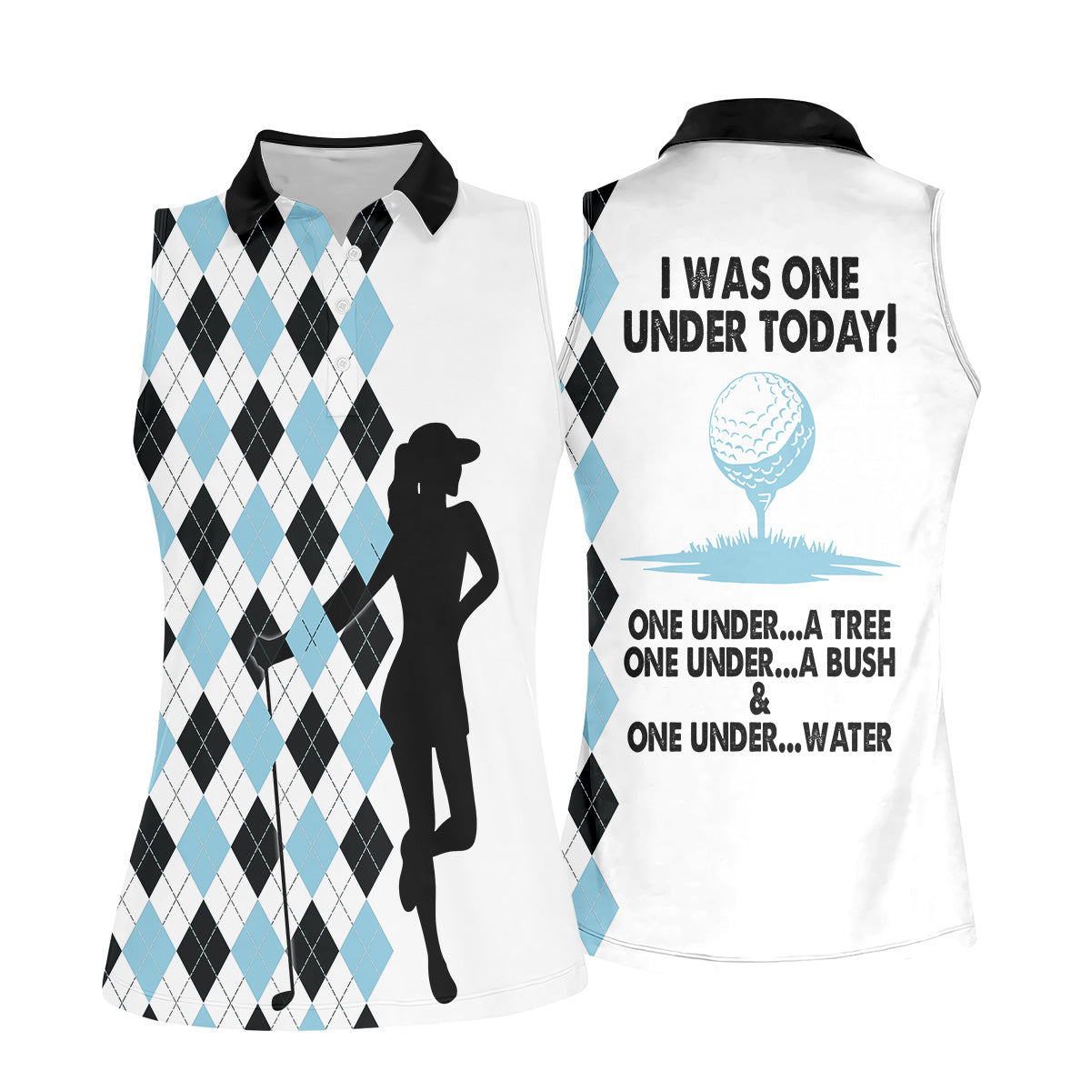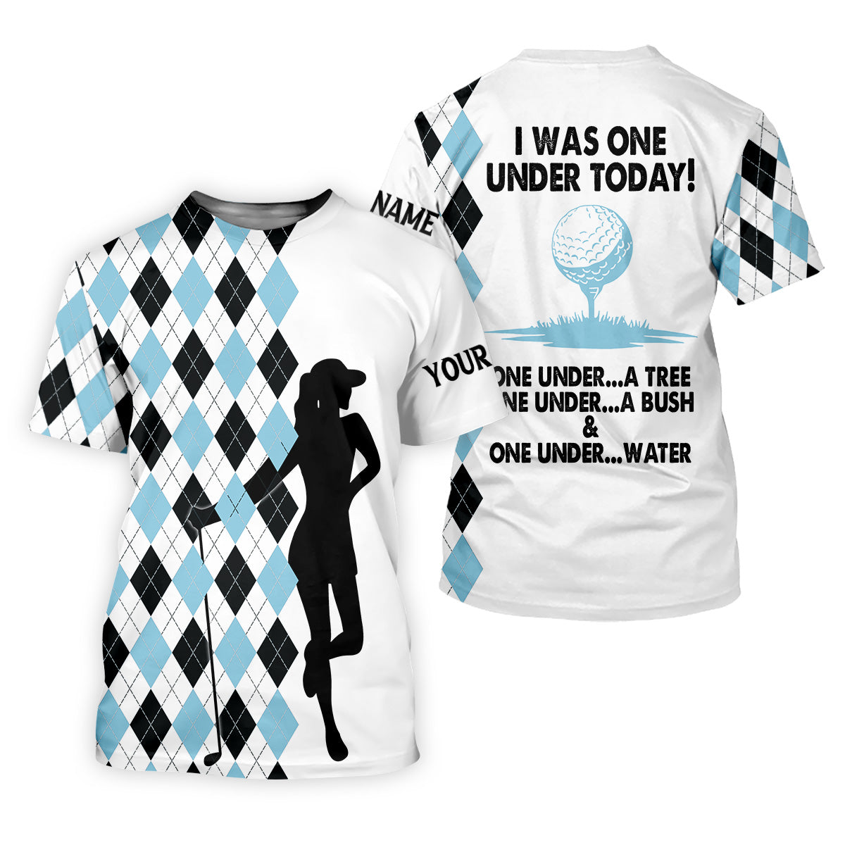 I Was One Under Today Light Blue Black Argyle Fun Womens Golf Shirts, Ladies Golf Tops, Unique Gift For Golfer