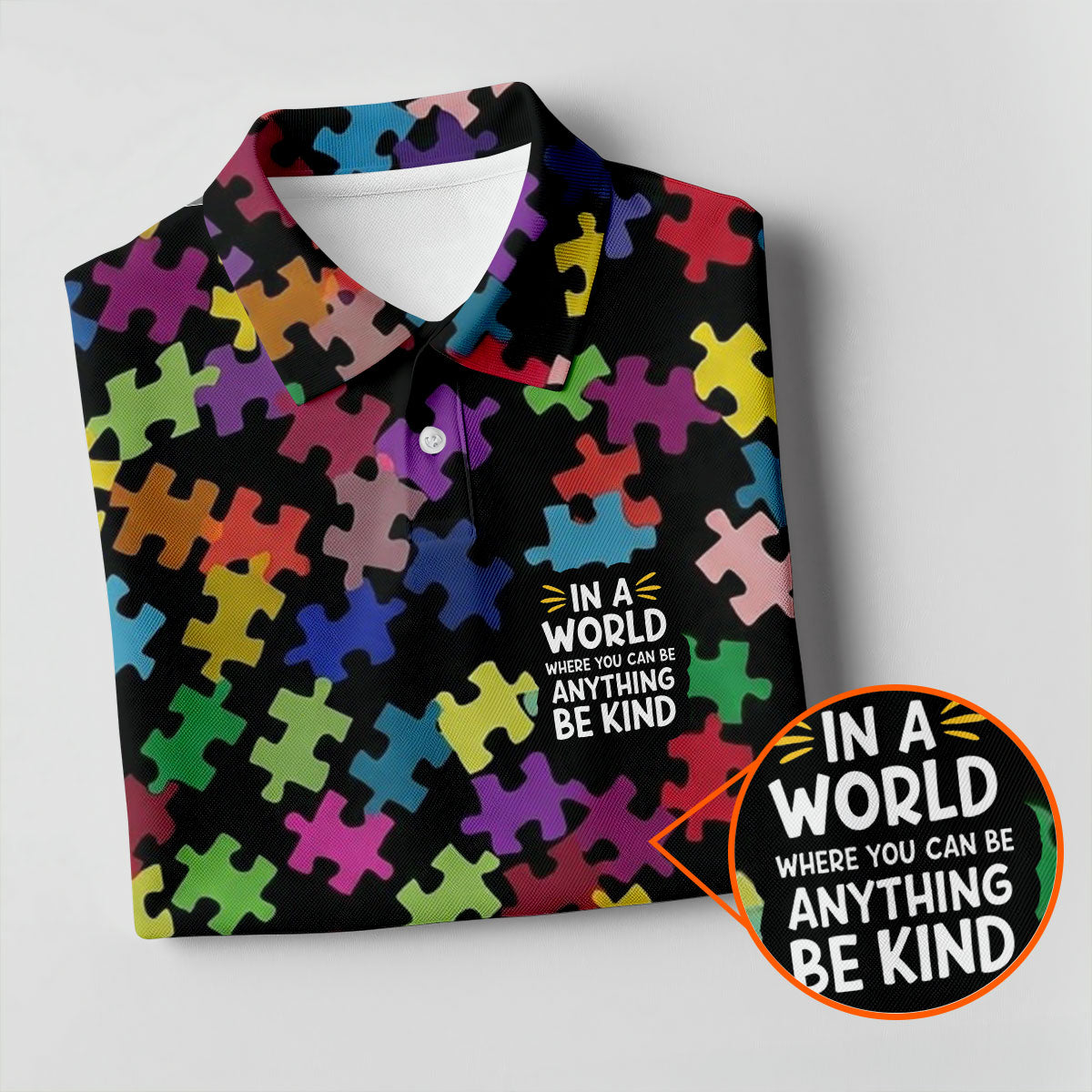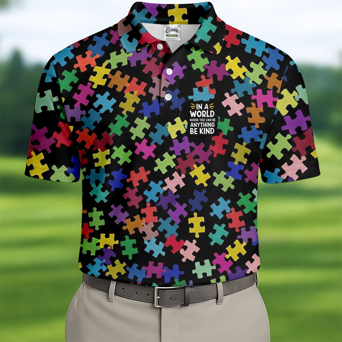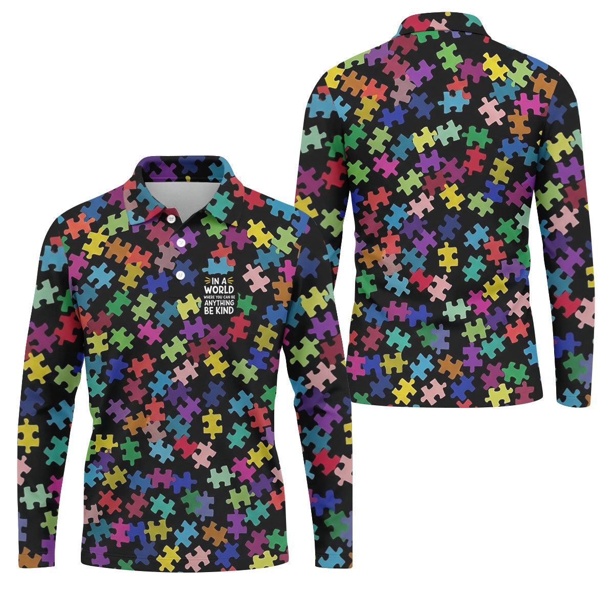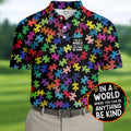 In A World Where You Can Be Anything Be Kind Autism Awareness Puzzle Pattern Men's Golf Shirt, Polo Shirts For Men