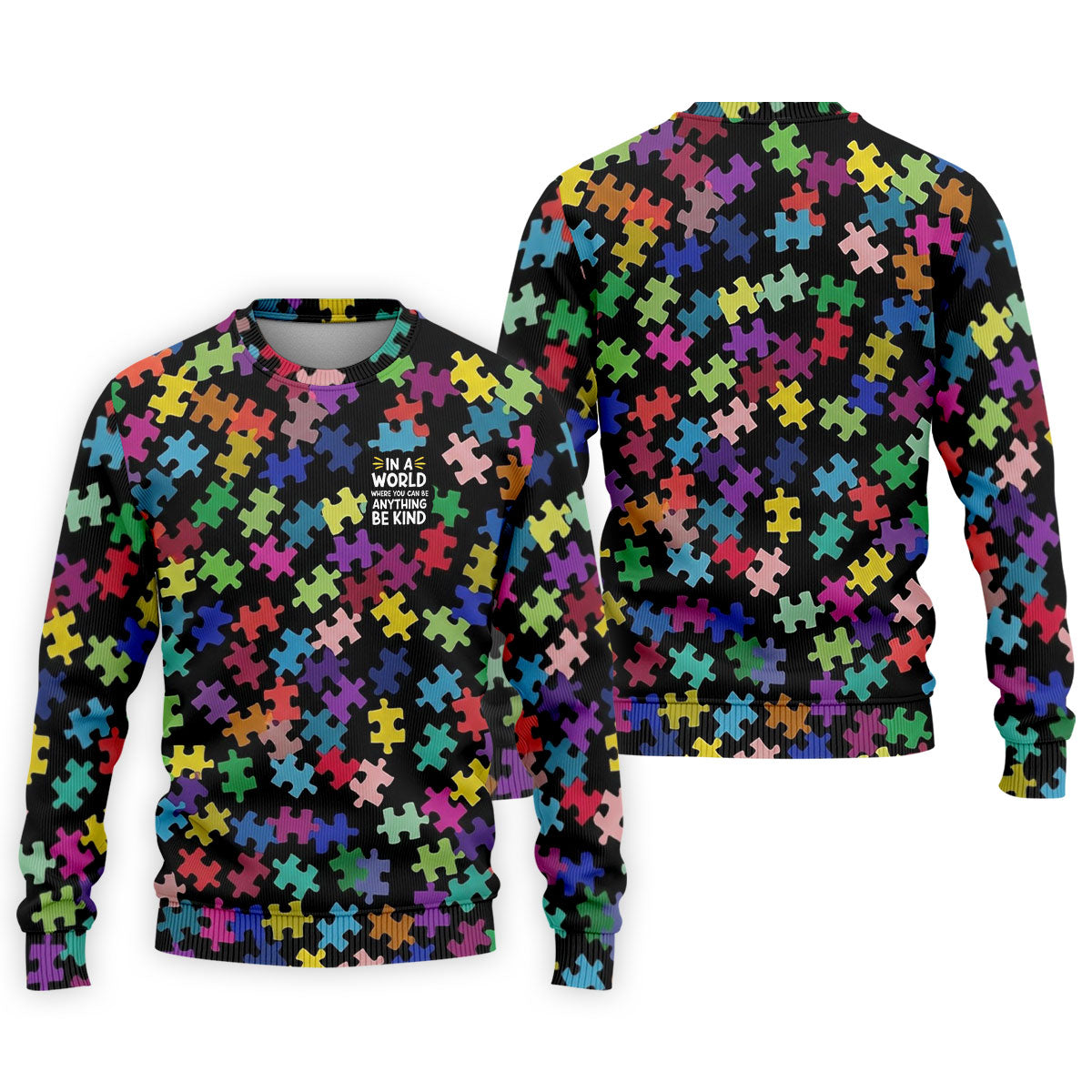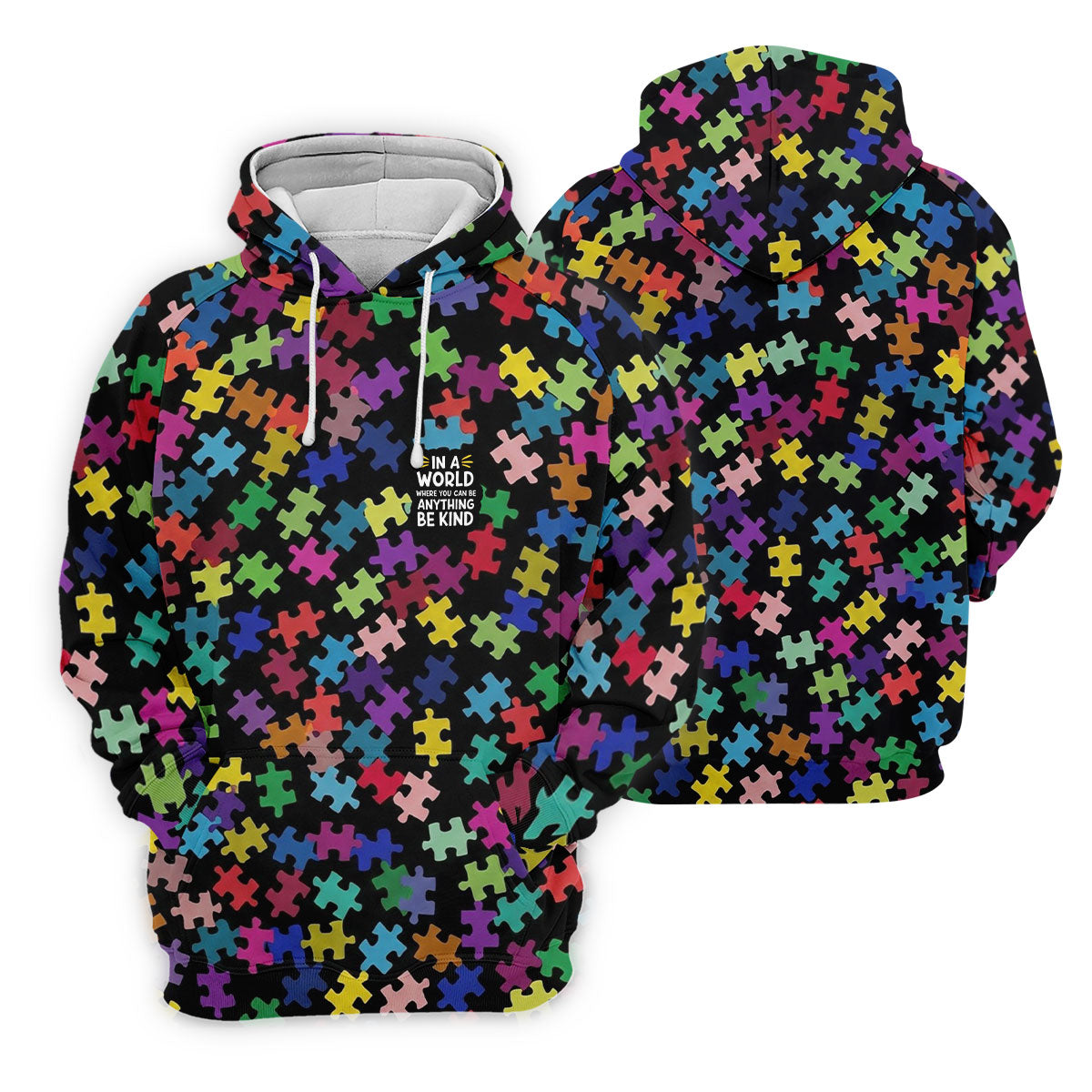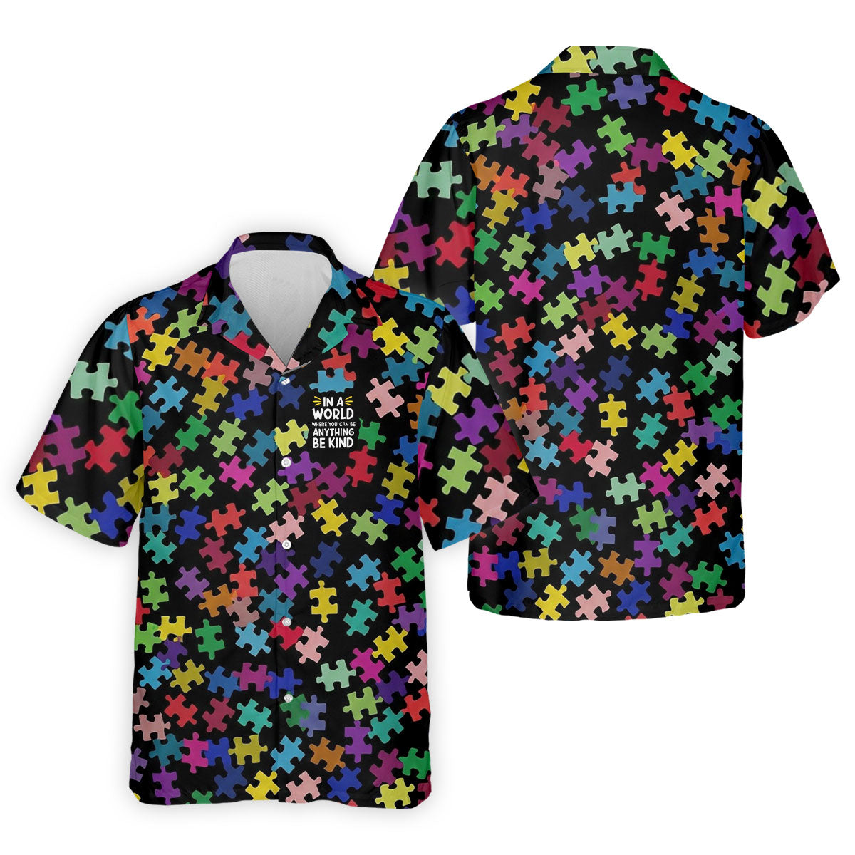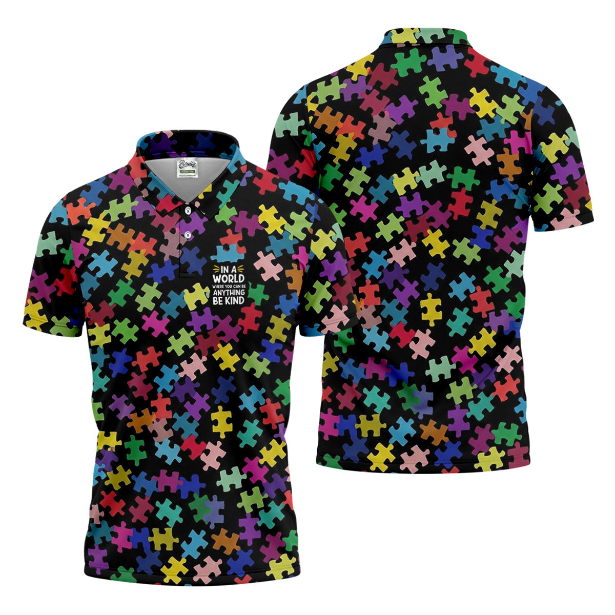 In A World Where You Can Be Anything Be Kind Autism Awareness Puzzle Pattern Men's Golf Shirt, Polo Shirts For Men
