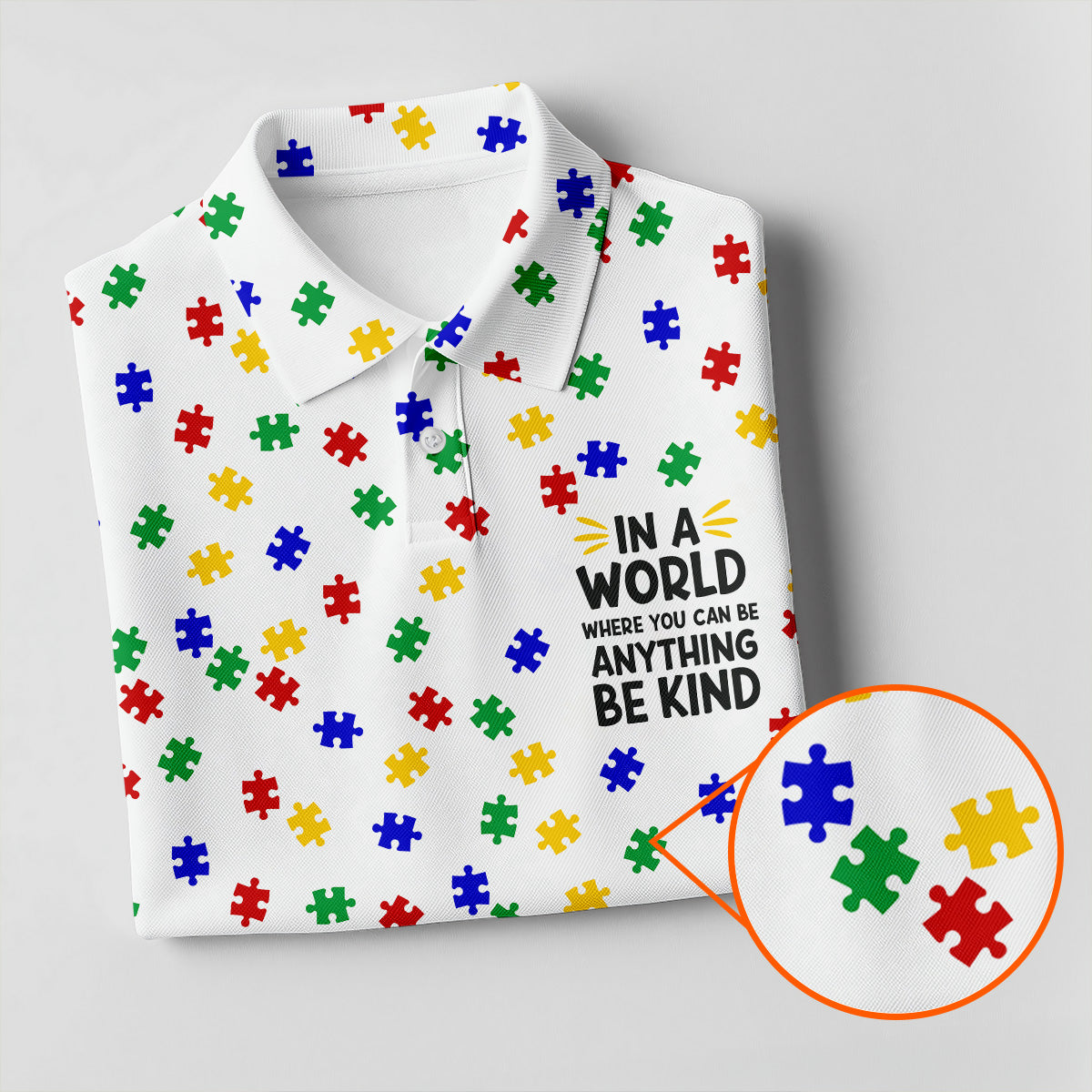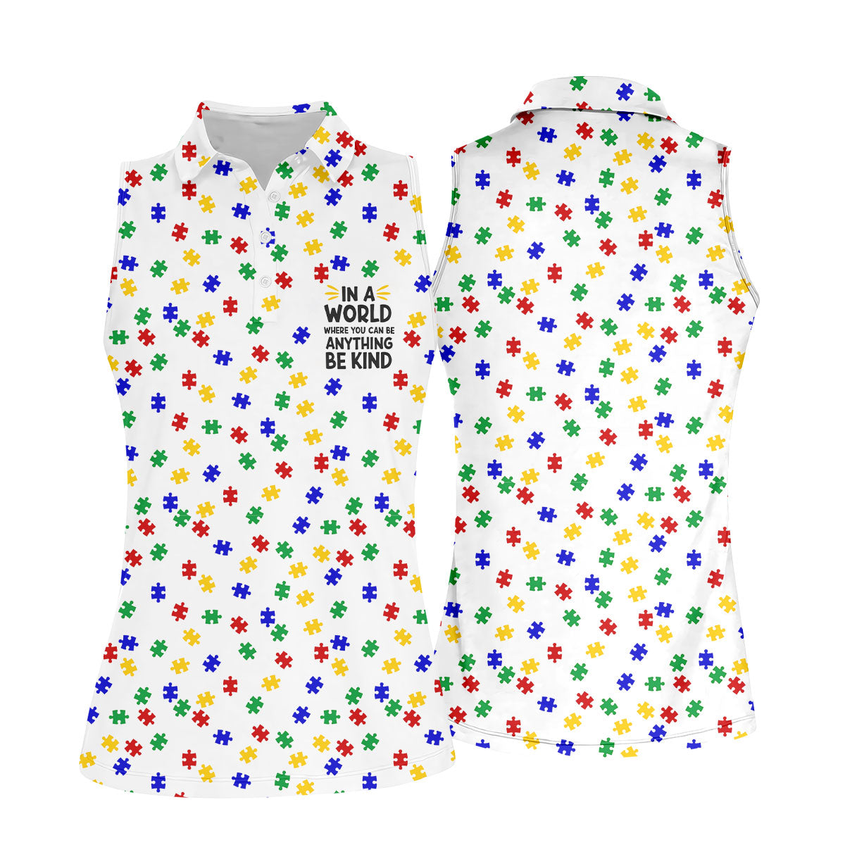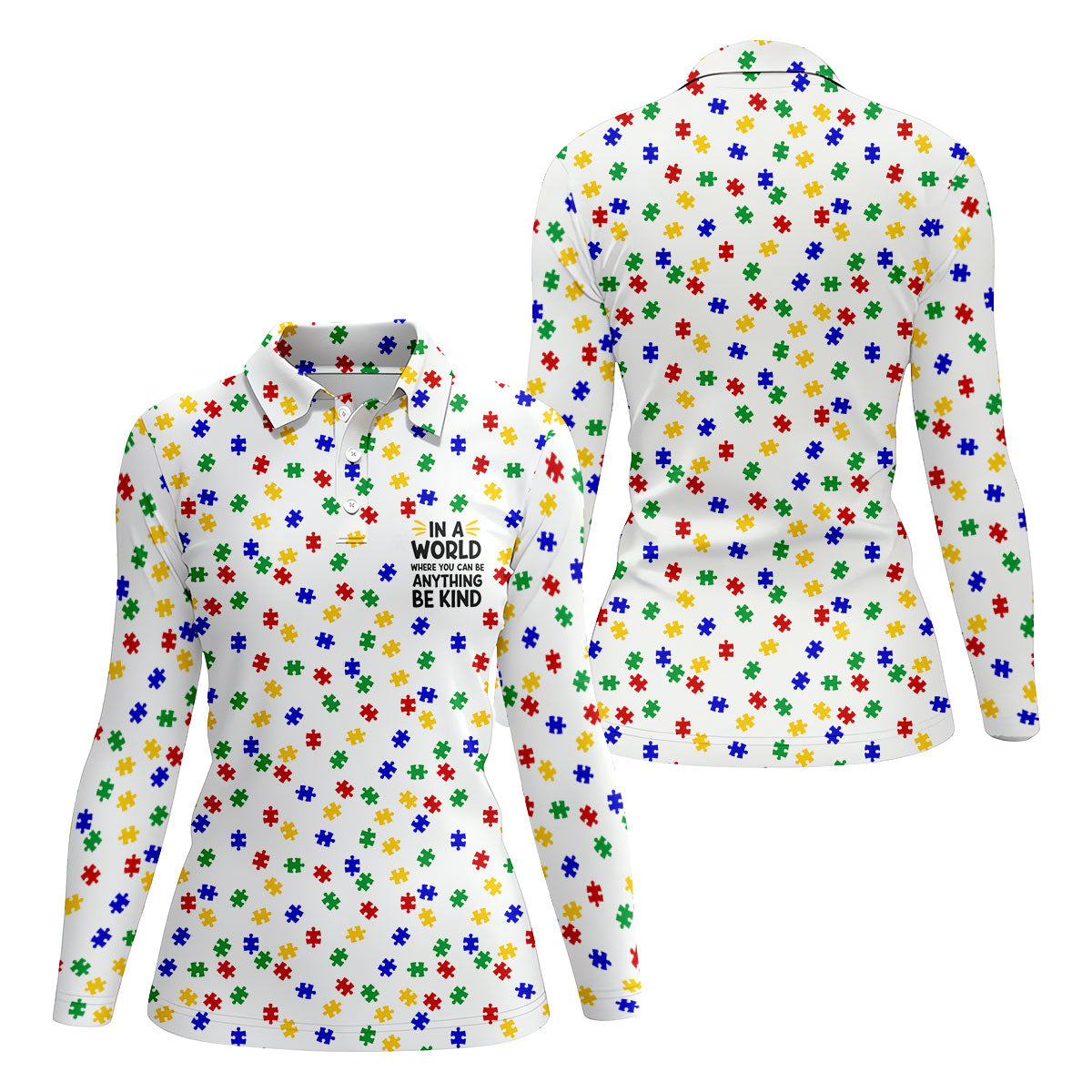 In A World Where You Can Be Anything Be Kind Women's Golf Tops, Autism Awareness Color Ladies Golf Polos