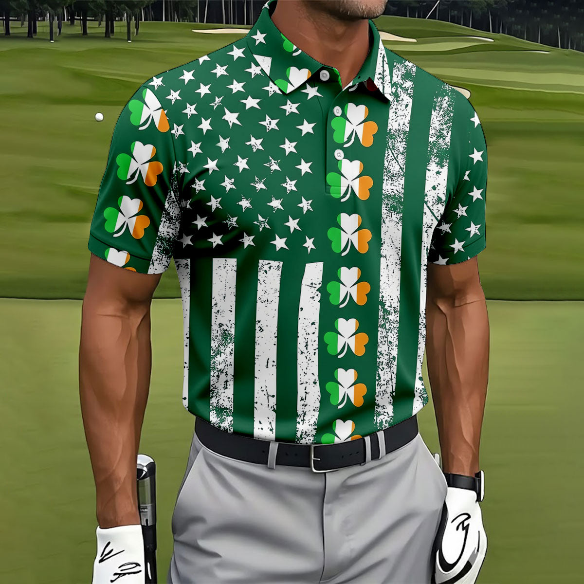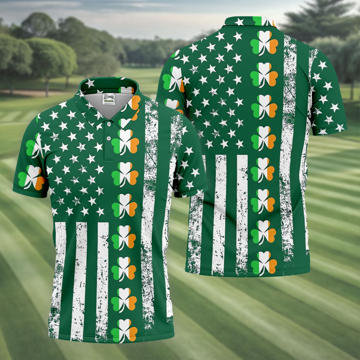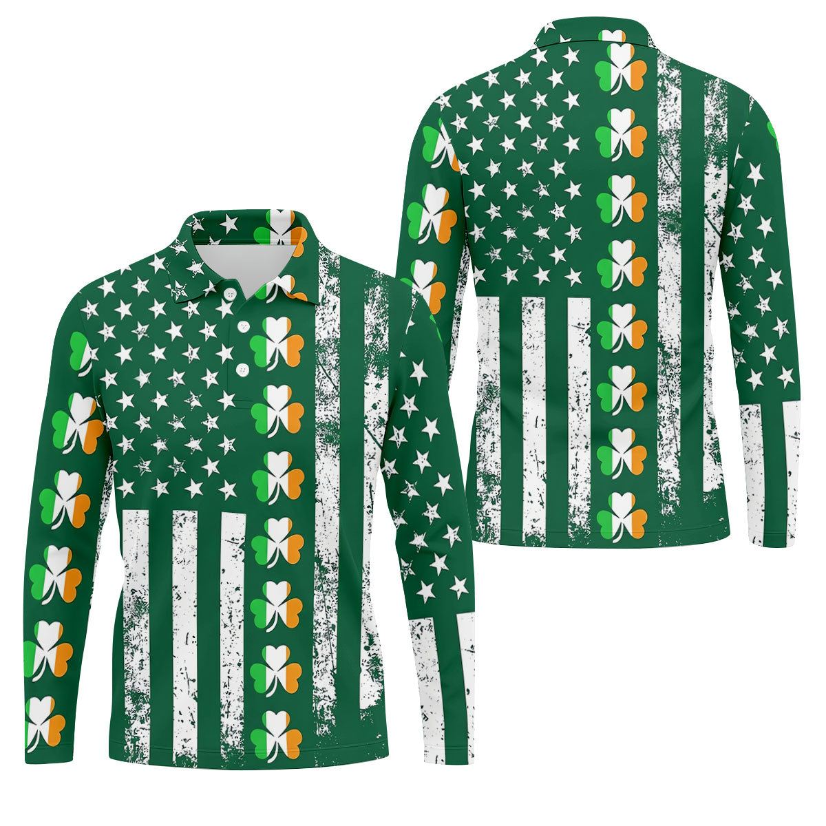 Irish Shamrock Vertical Stripes St Patrick's Day Golf Shirt, Polo Shirts For Men, Golf Shirts For Men