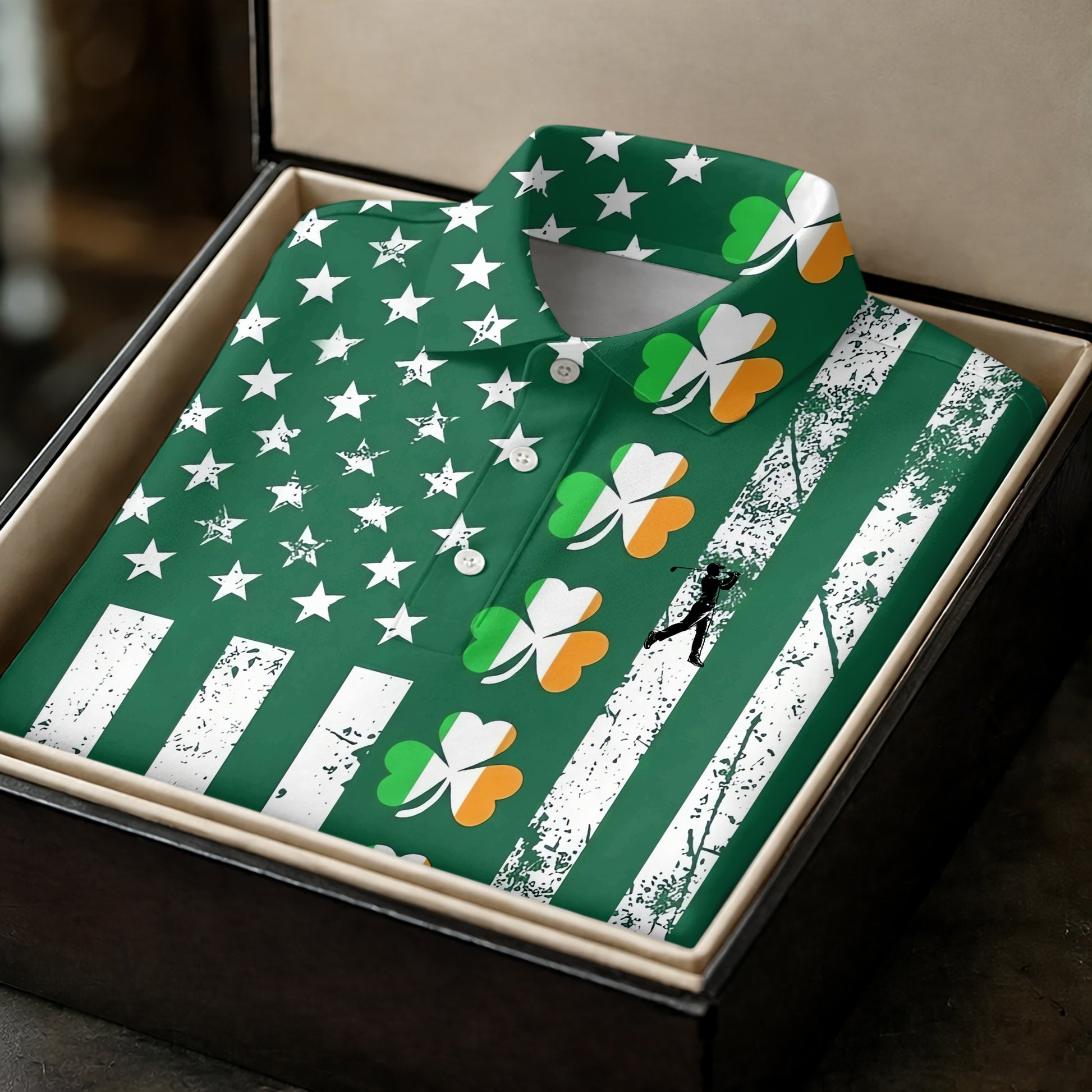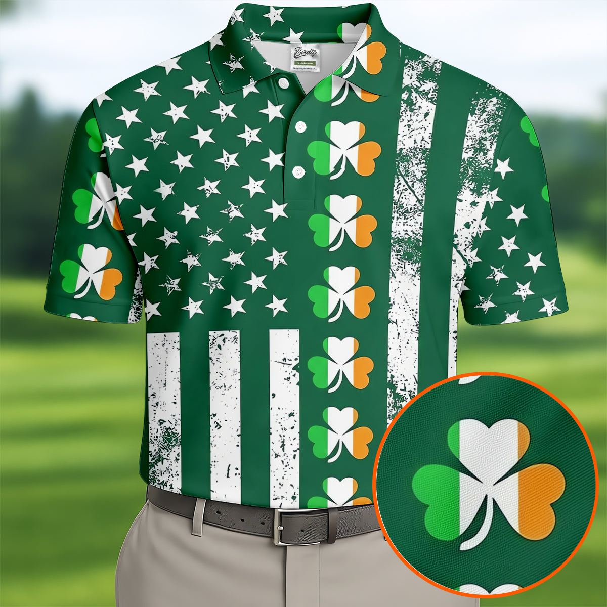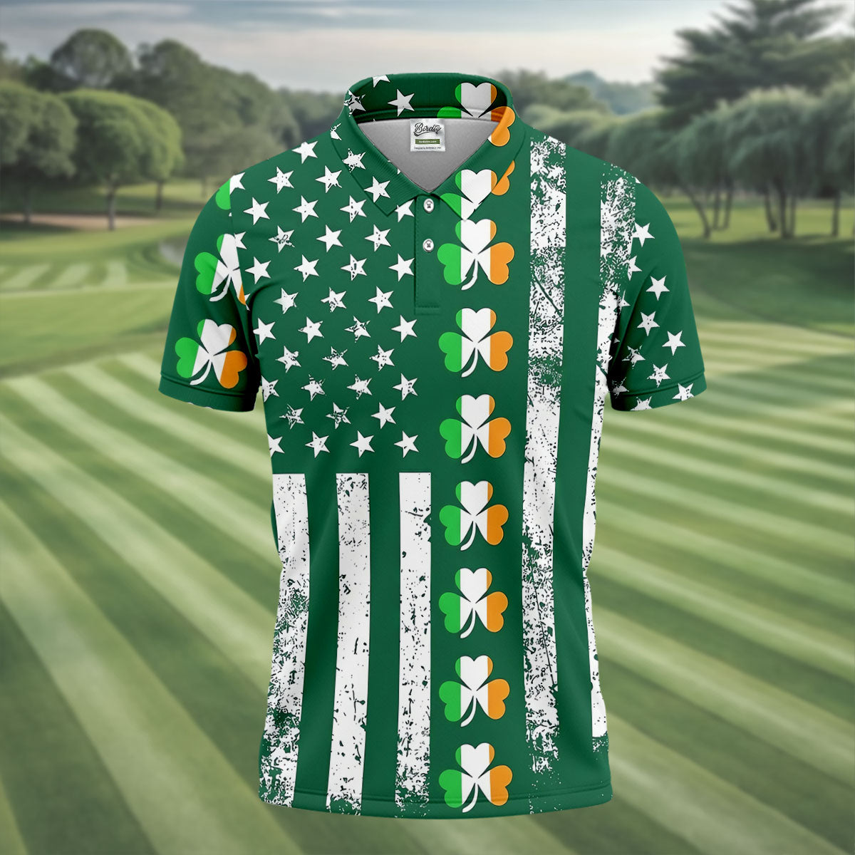 Irish Shamrock Vertical Stripes St Patrick's Day Golf Shirt, Polo Shirts For Men, Golf Shirts For Men