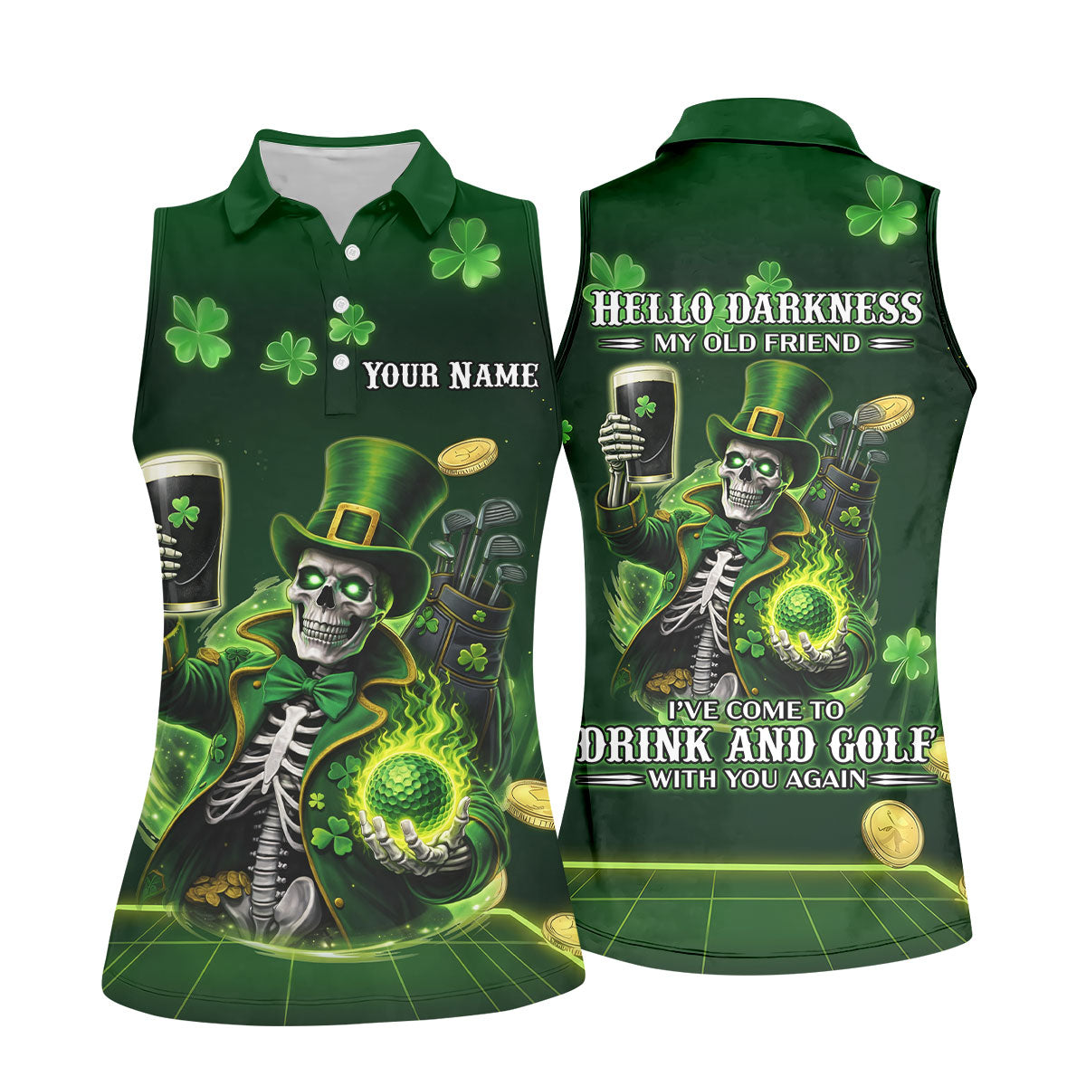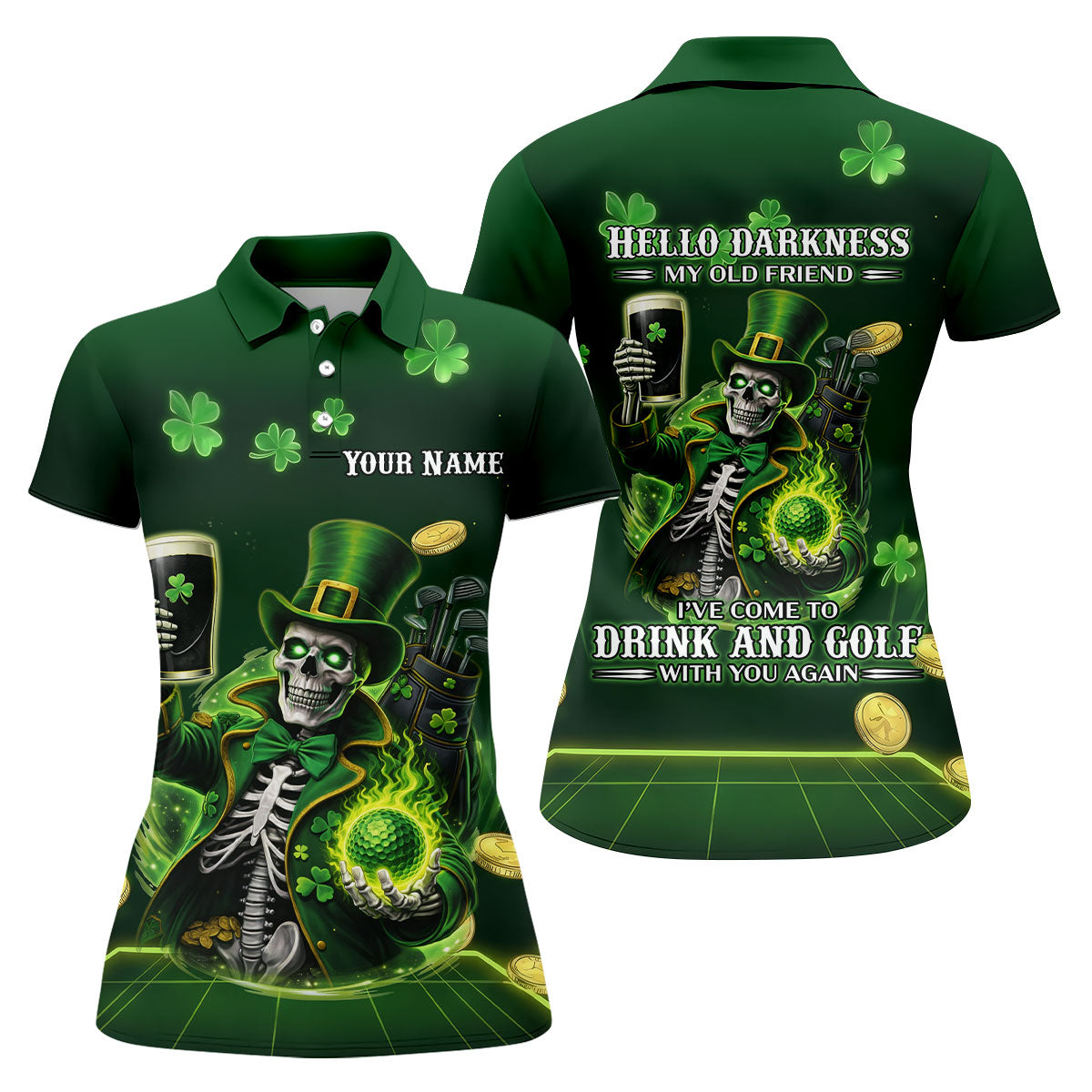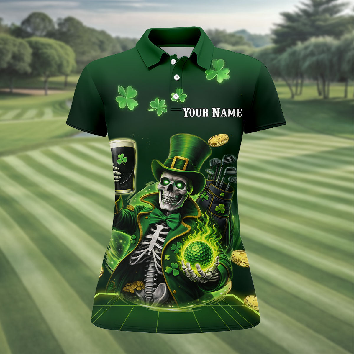 Irish Skull Leprechaun Hat Dark Beer Green St Patrick's Day Women's Golf Tops, Ladies Golf Polos