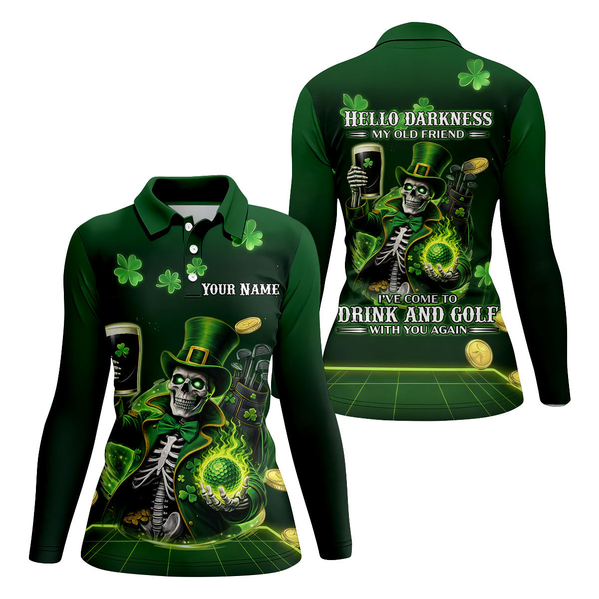Whether you’re teeing off on St. Patrick’s Day, playing a themed scramble, or just looking for an excuse to bring Irish luck to the course — this shirt shows up ready to celebrate.