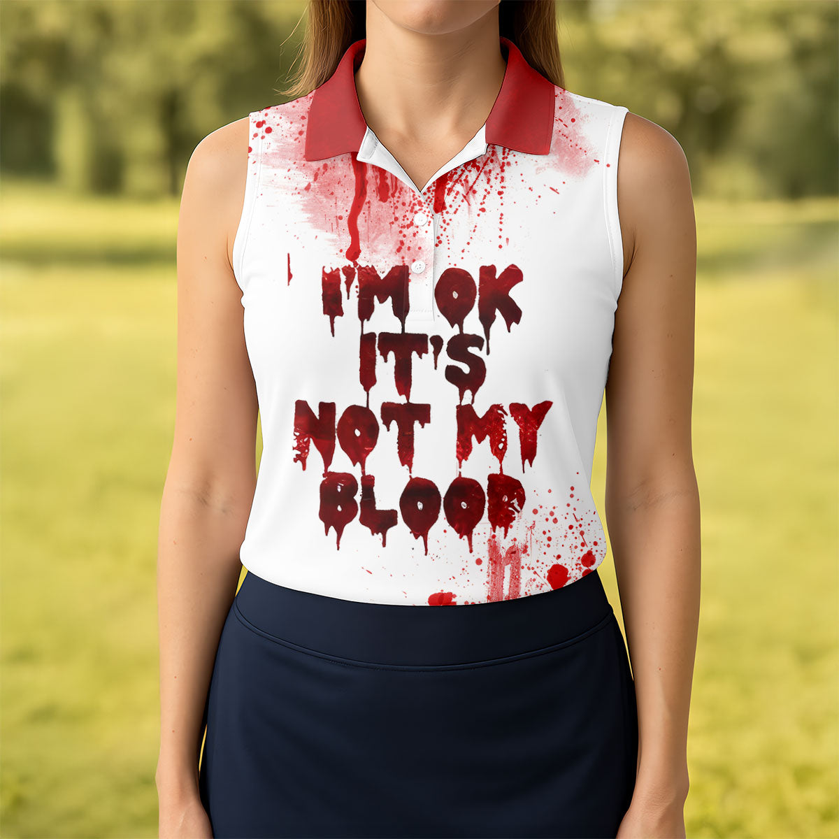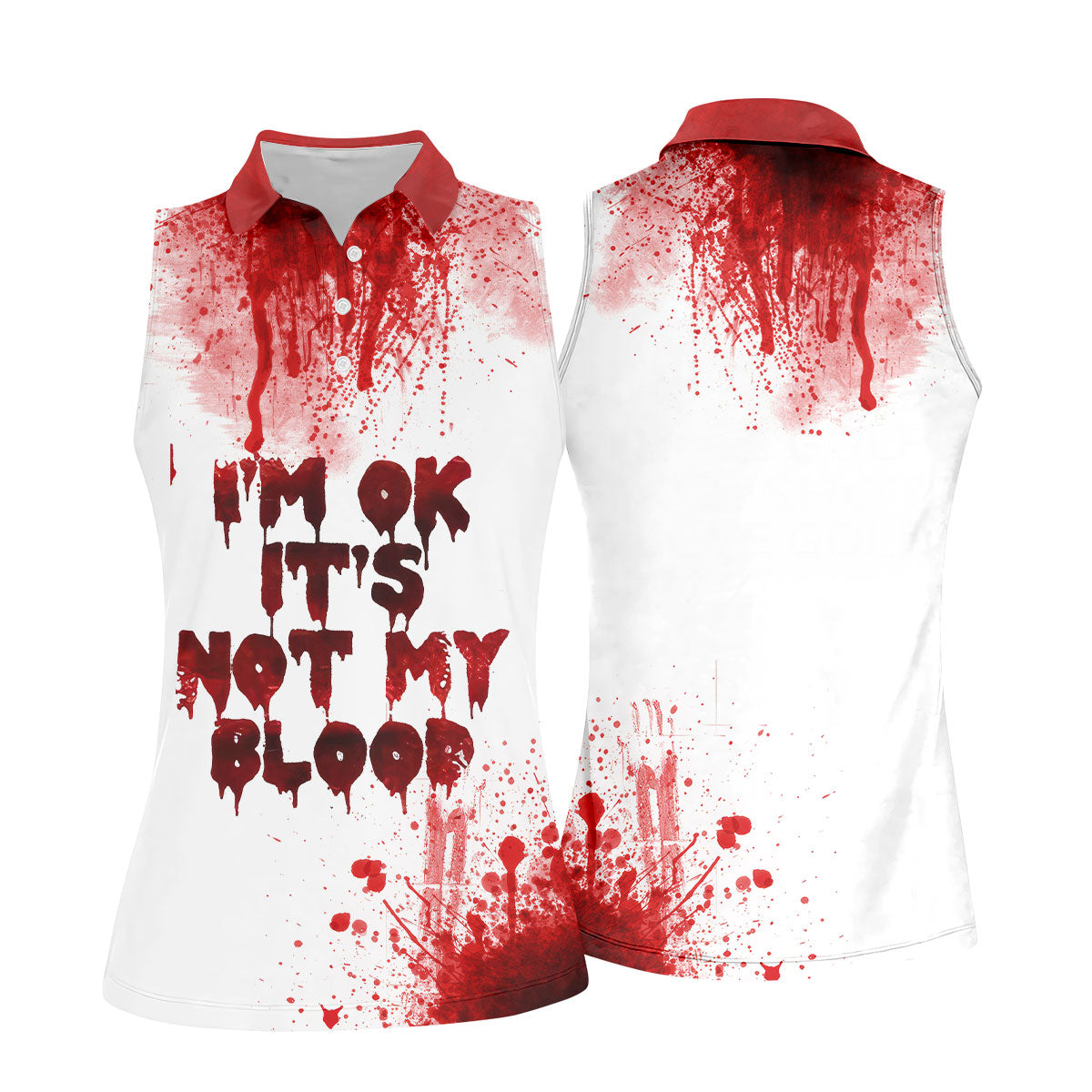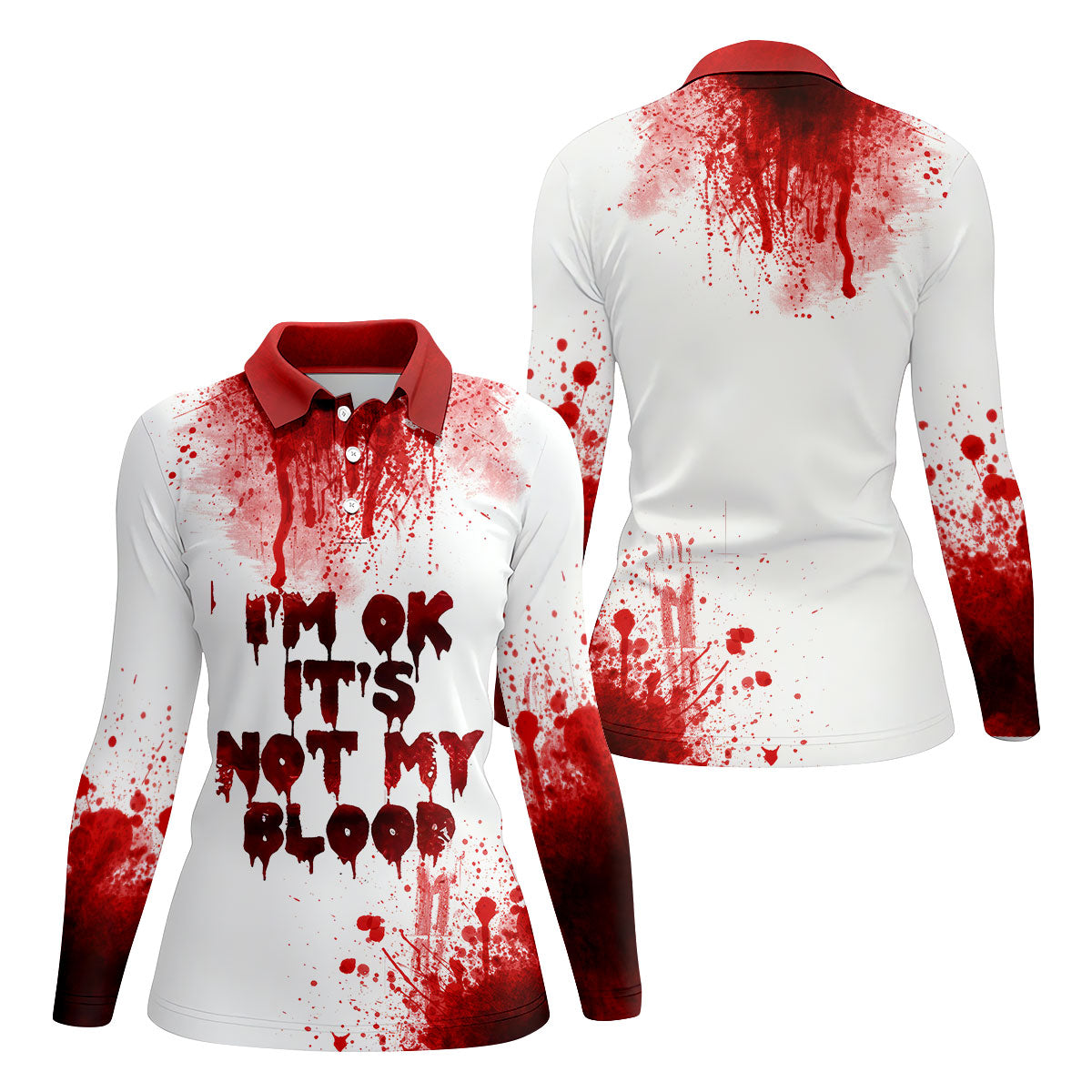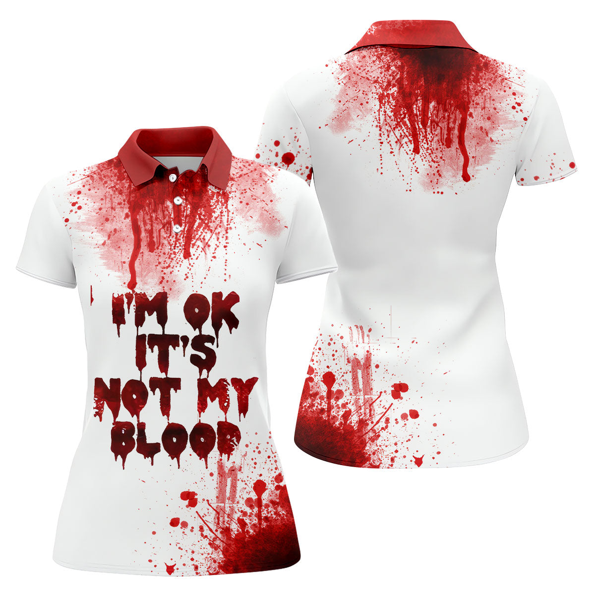 It's OK It's Not My Blood Halloween Blood Splatter Women Golf Top, Horror Blood Ladies Golf Polos