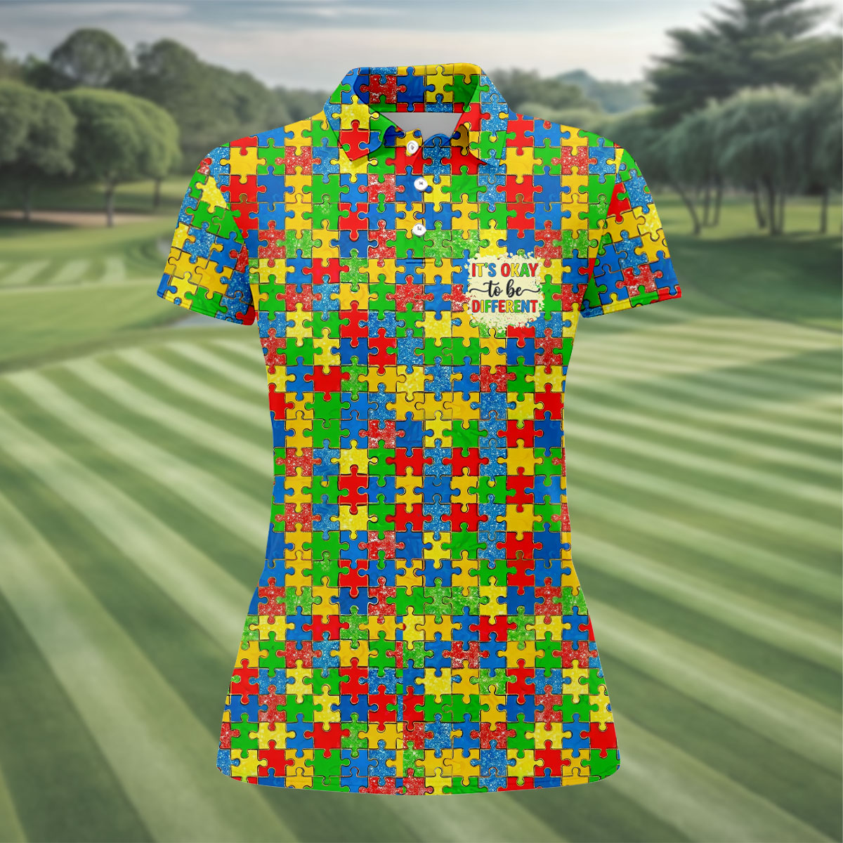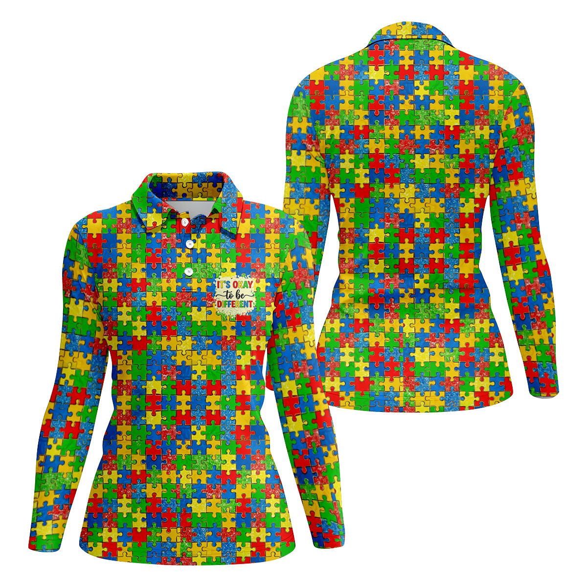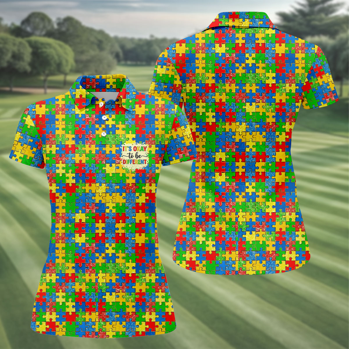 It's Okay To Be Different Colorful Puzzle Pattern Autism Awareness Golf Shirt For Women, Ladies Golf Polos