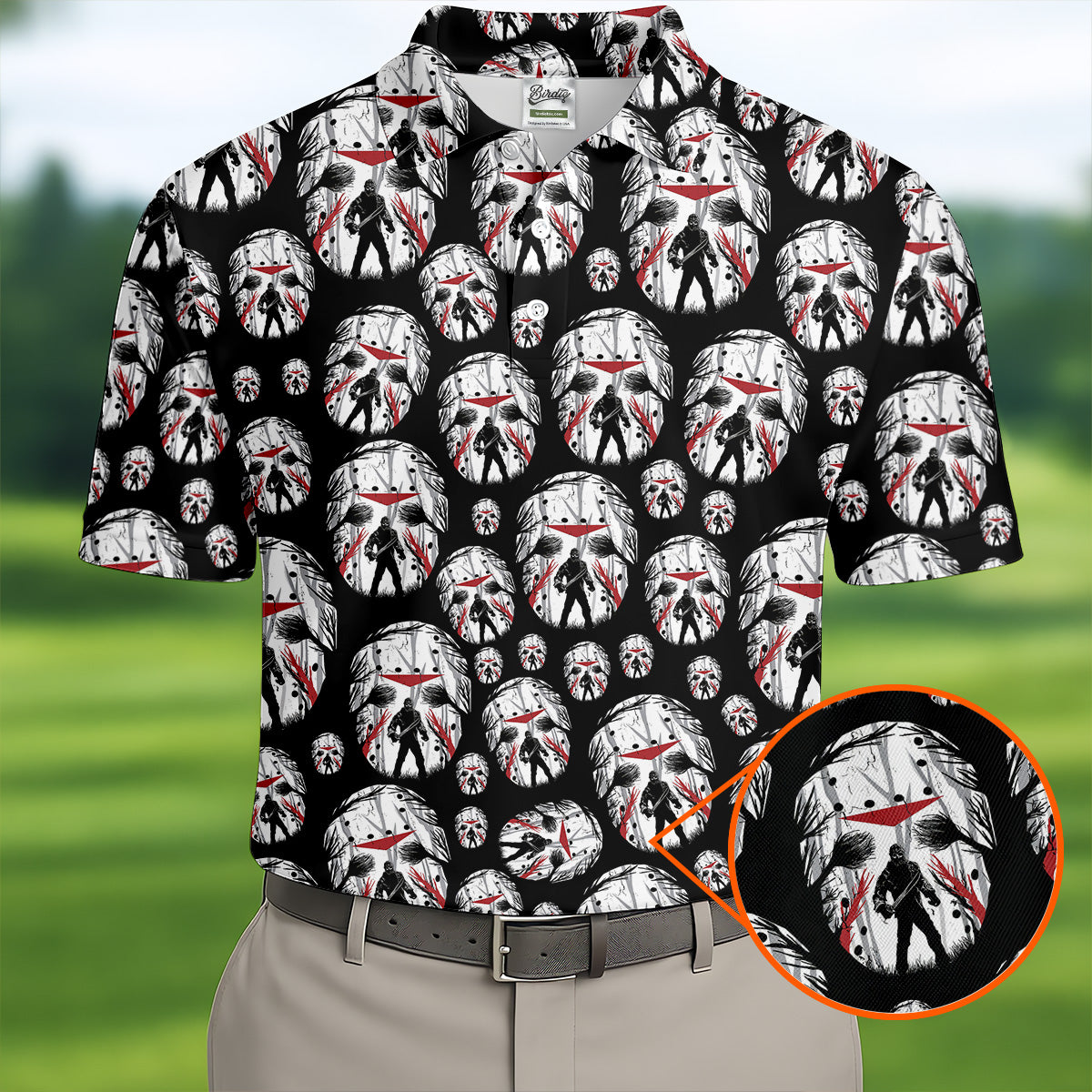 Jason Horror Character Men's Polo Shirt, Horror Movie Shirt, Halloween Golf Shirt, Scary Halloween Shirts