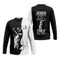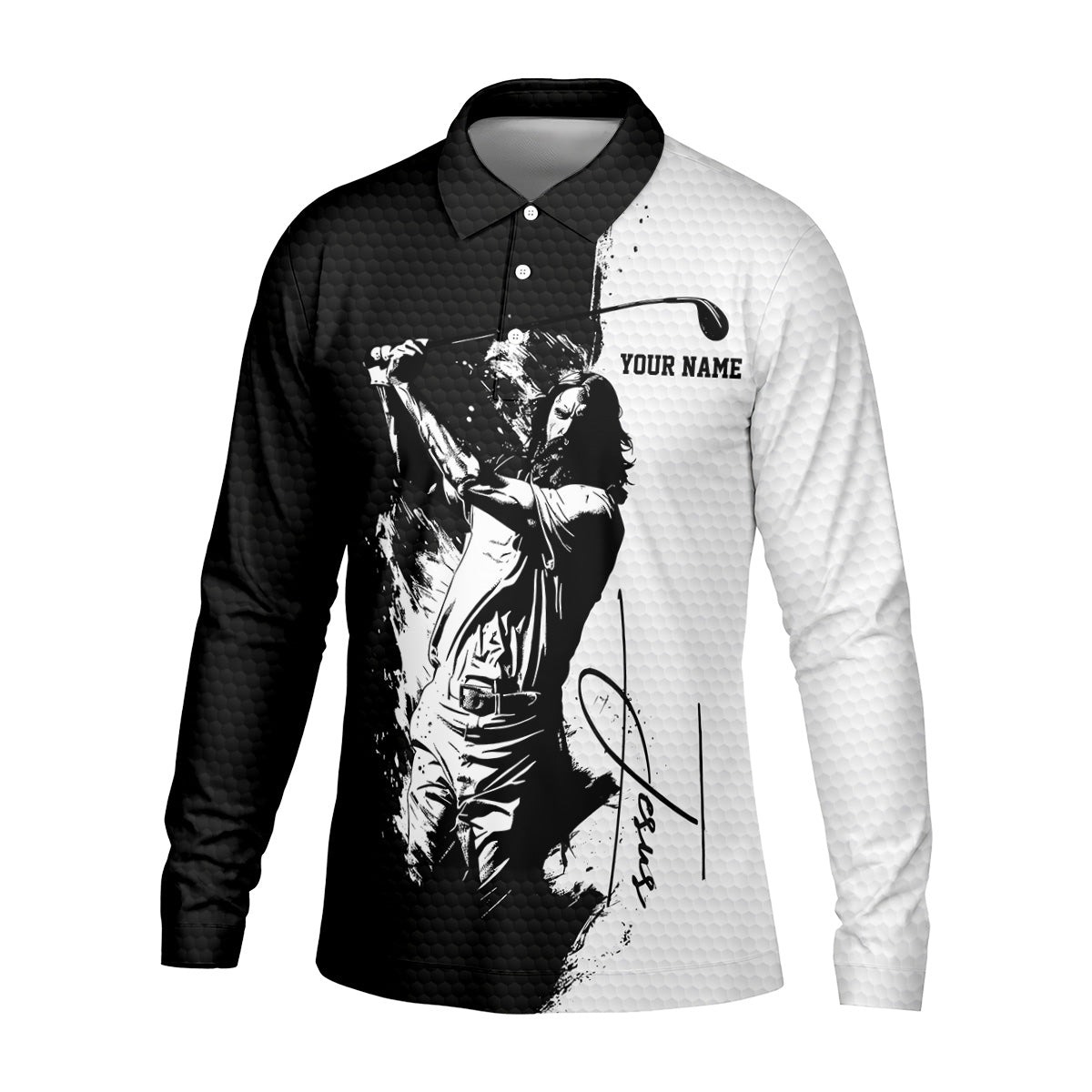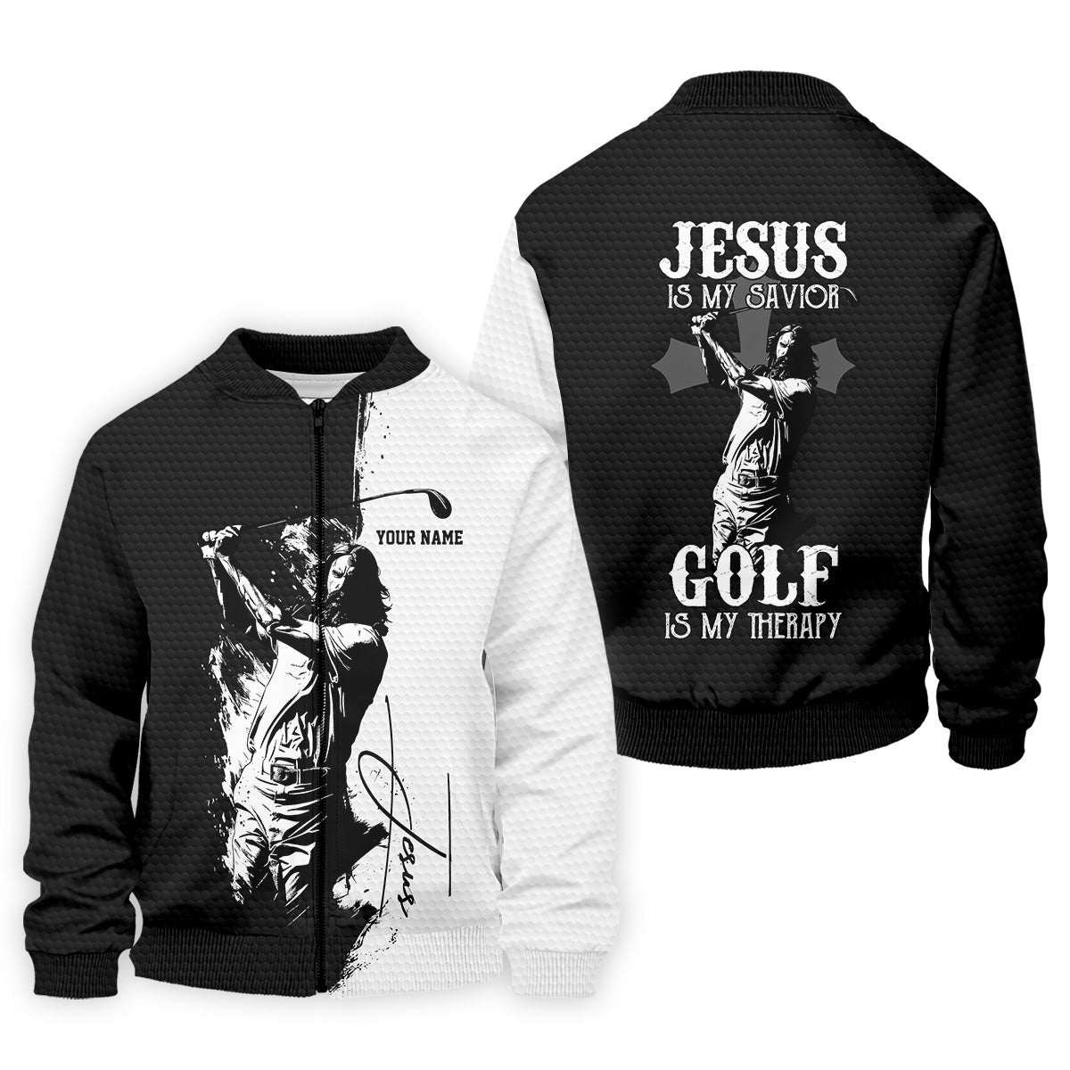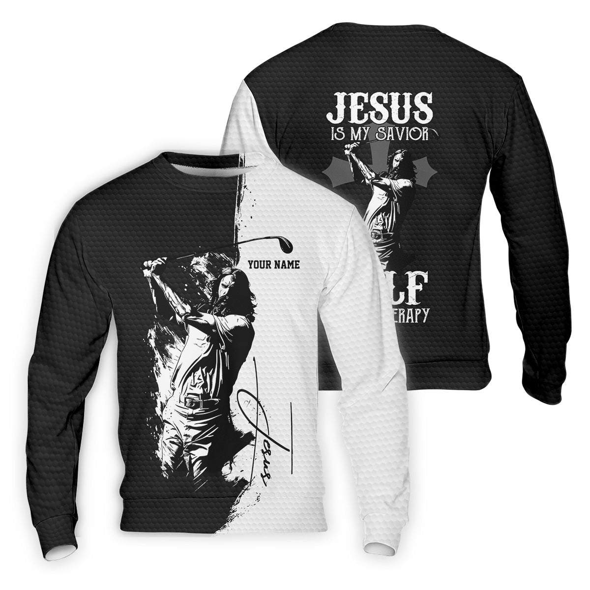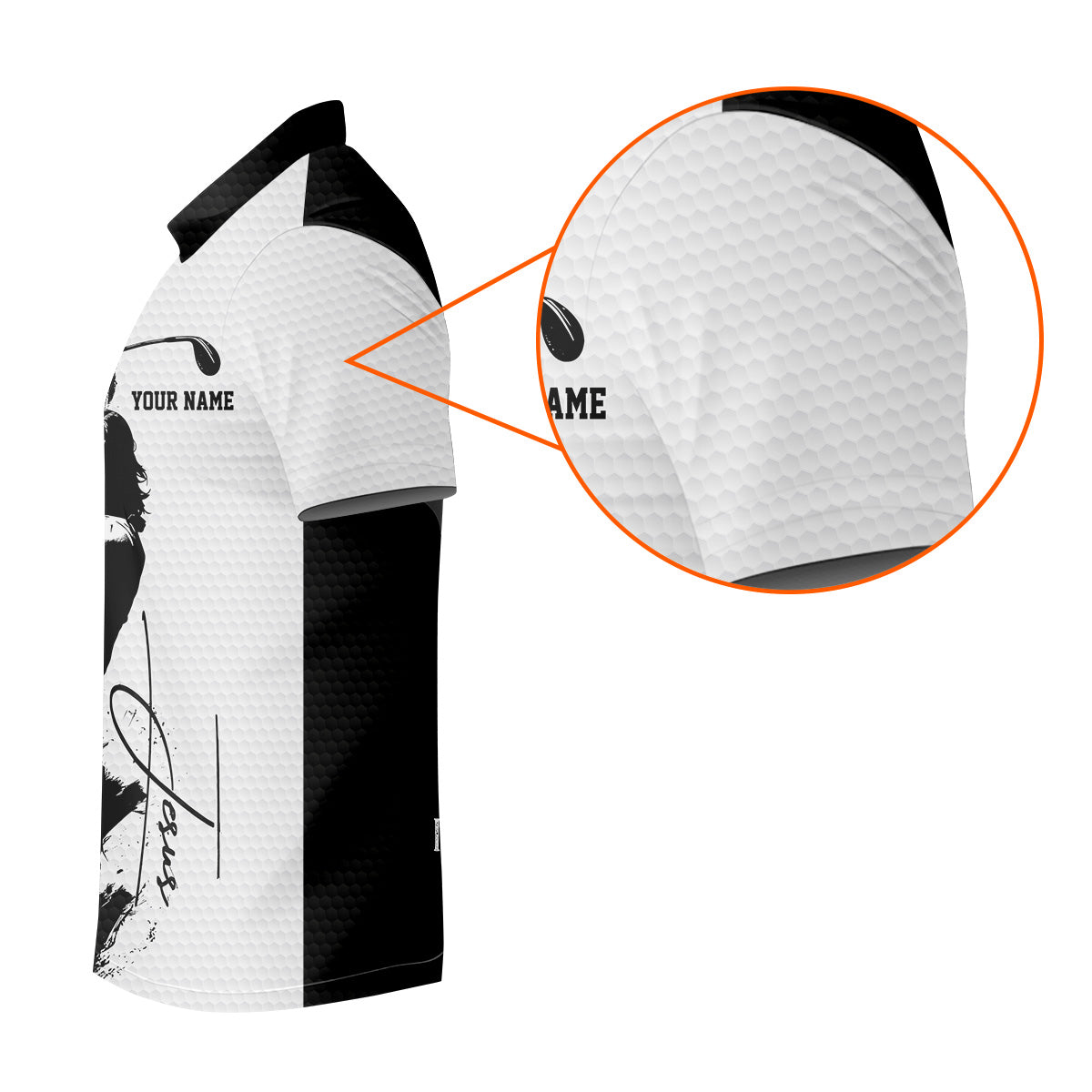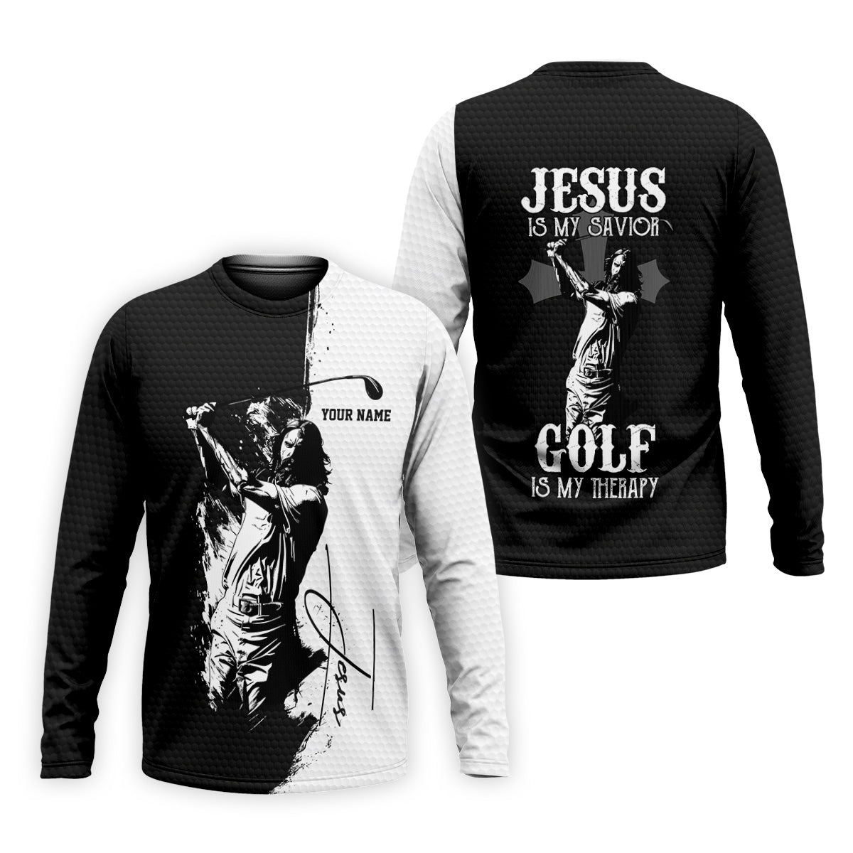Jesus Is My Savior Golf Is My Therapy Christian Golf Shirt, Black And White Golf Polo, Polo Shirts For Men
