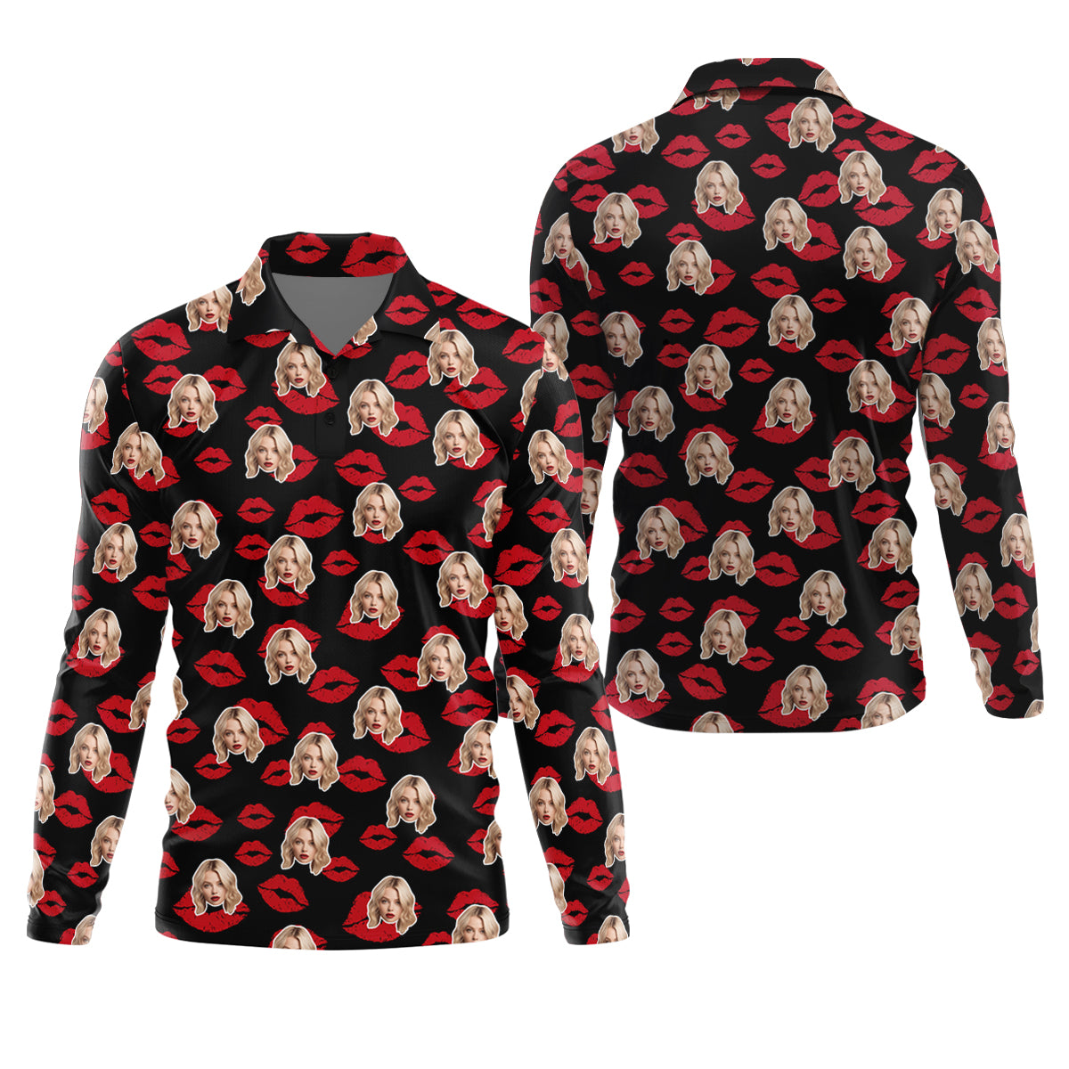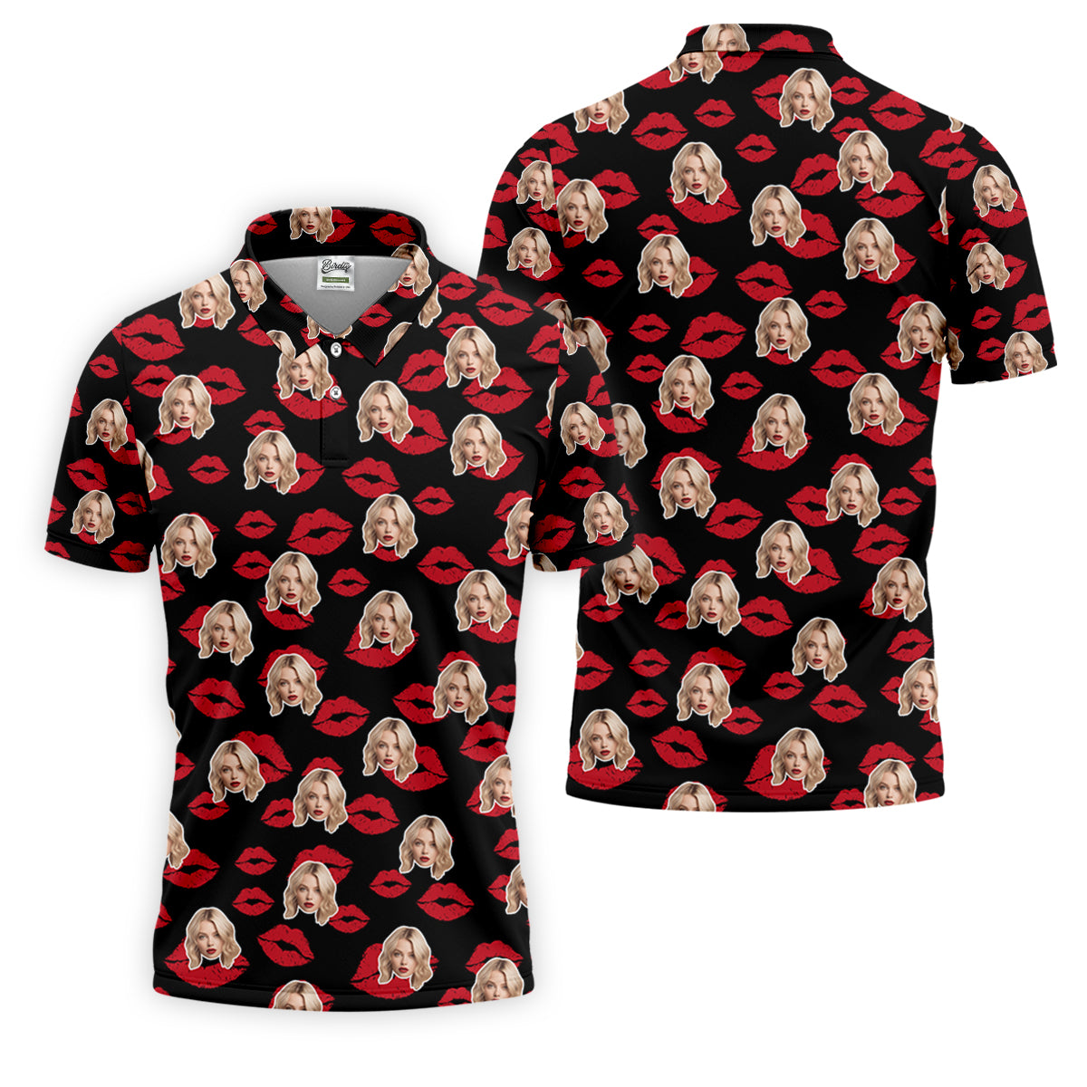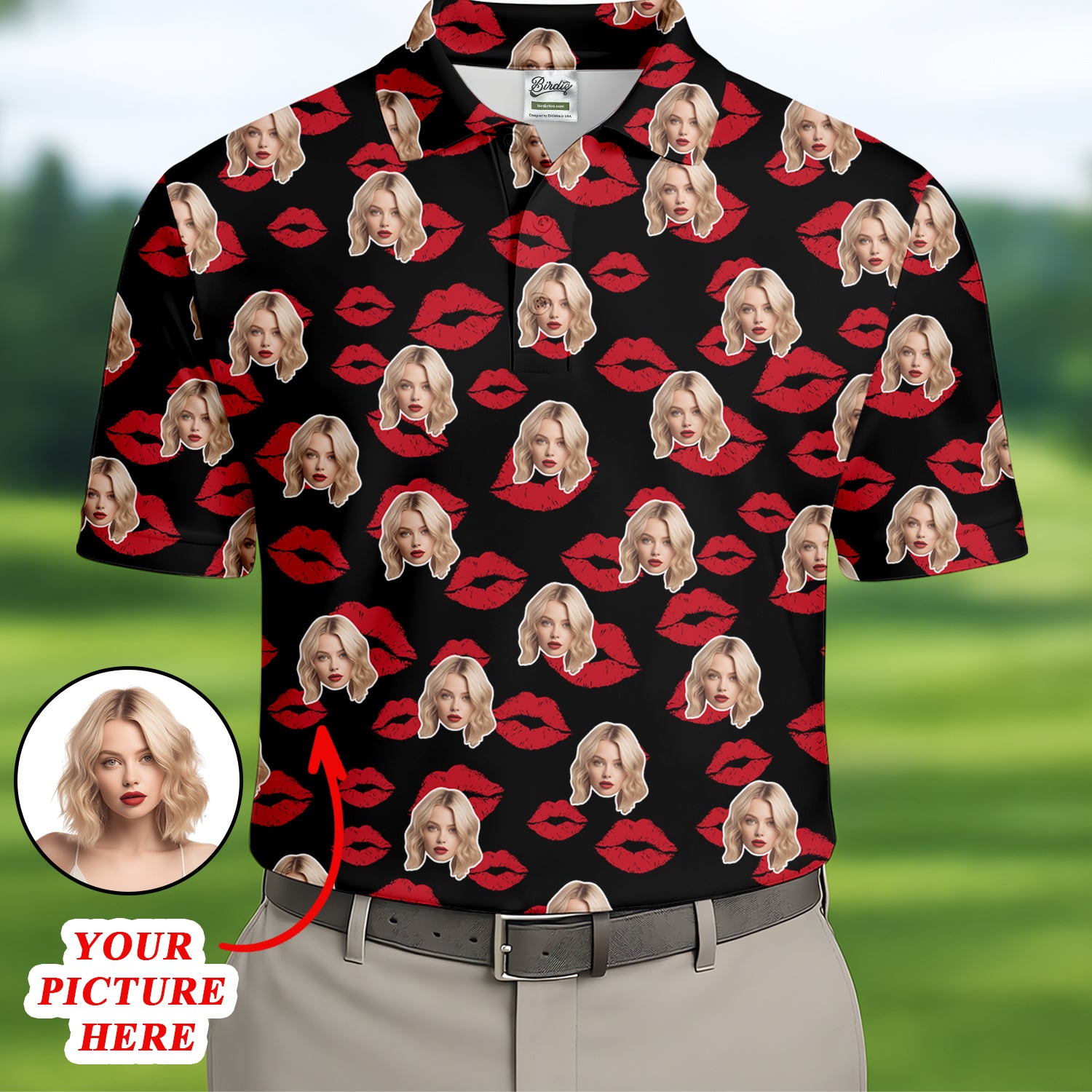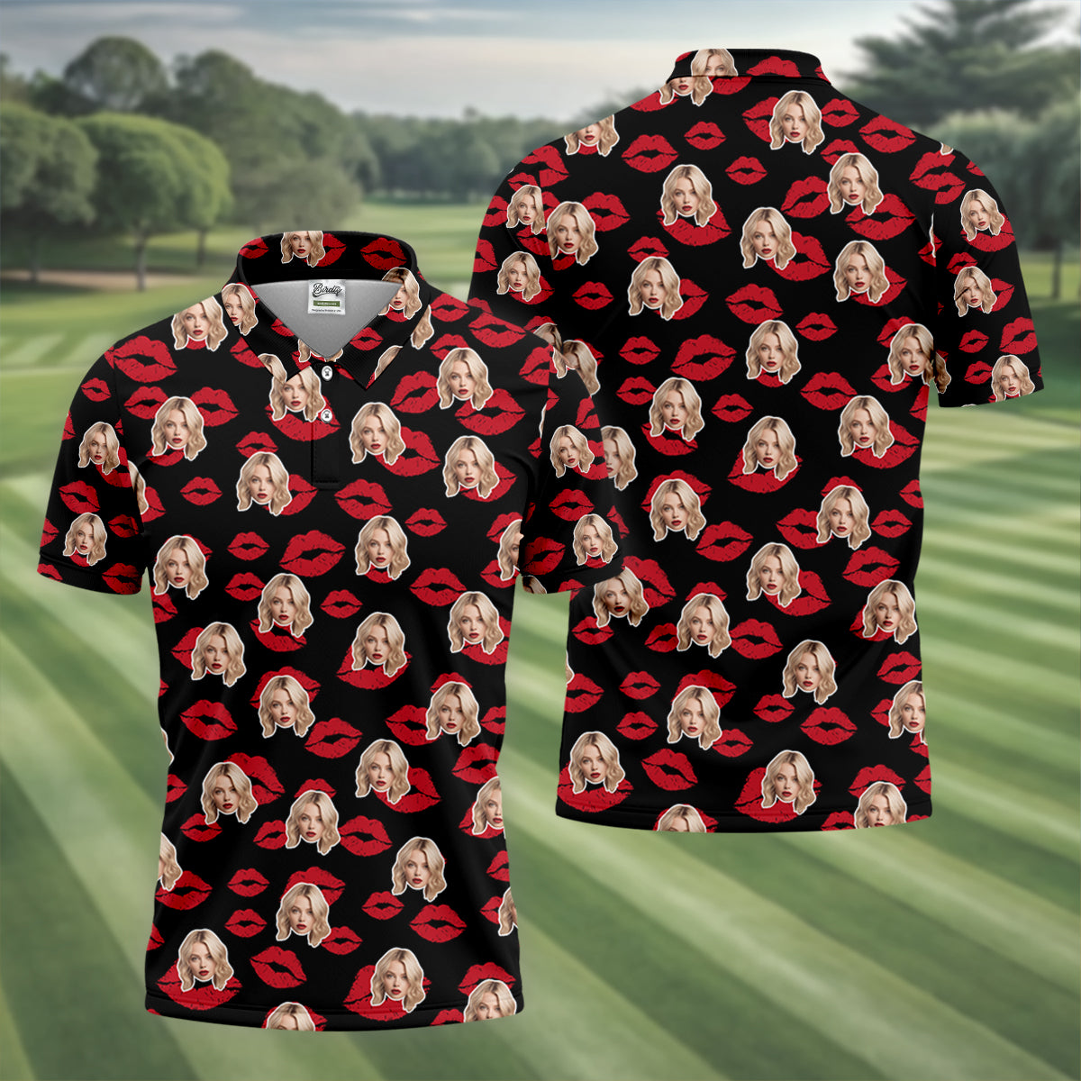 Kiss Lipstick Mark Custom Photo Golf Tops For Men, Valentines Golf Gift, Polo Shirts For Men