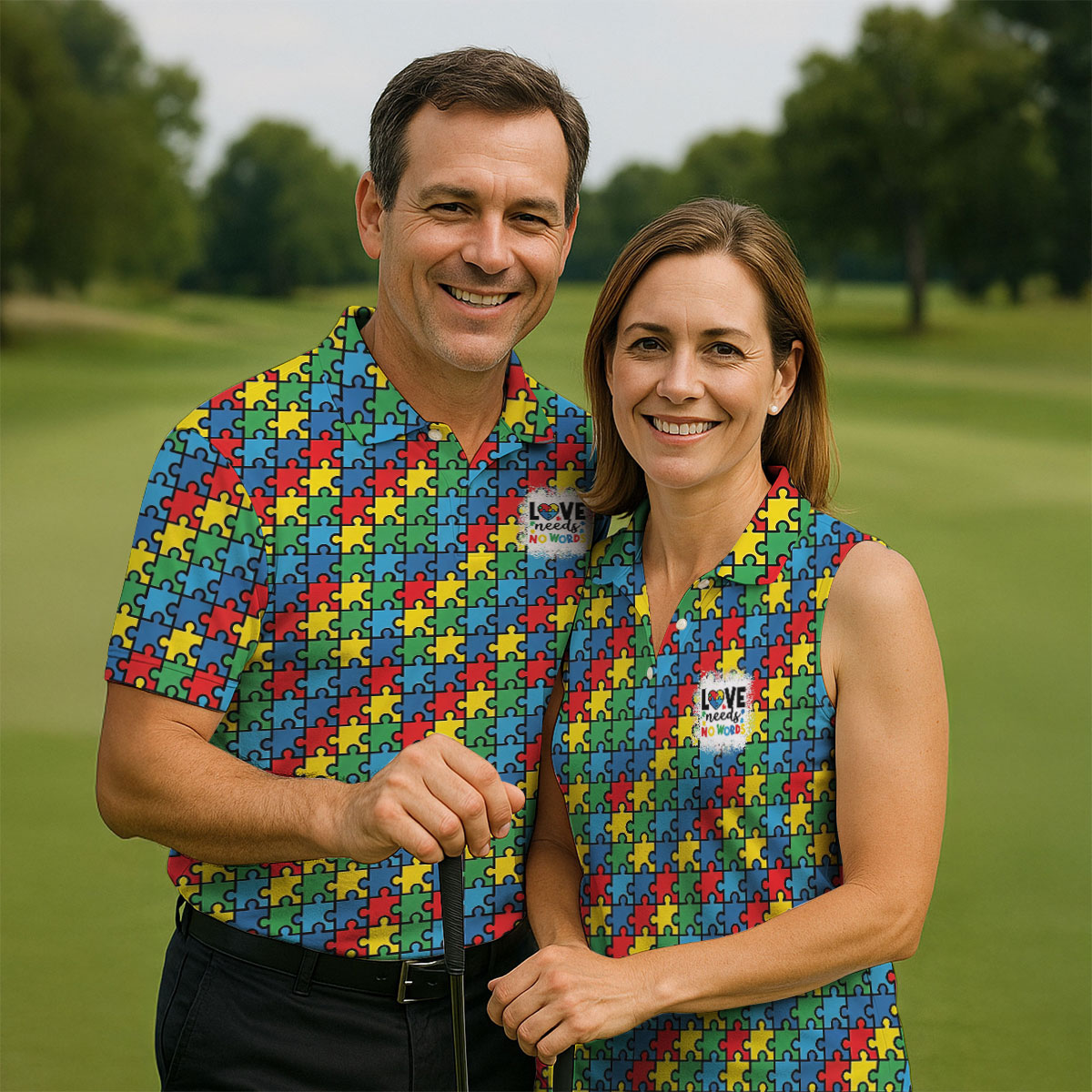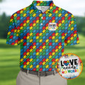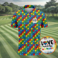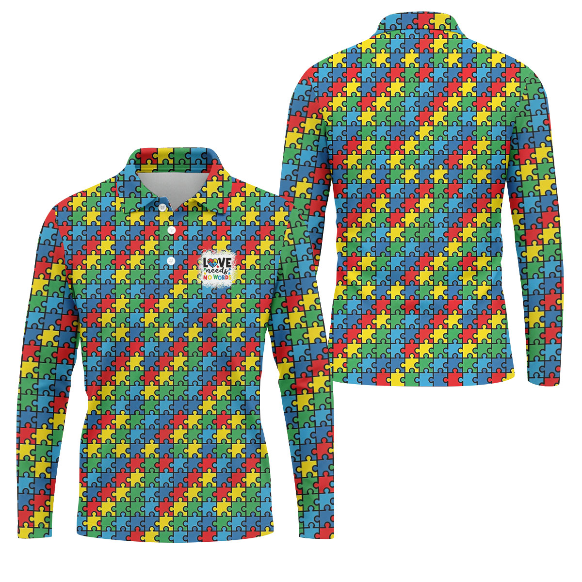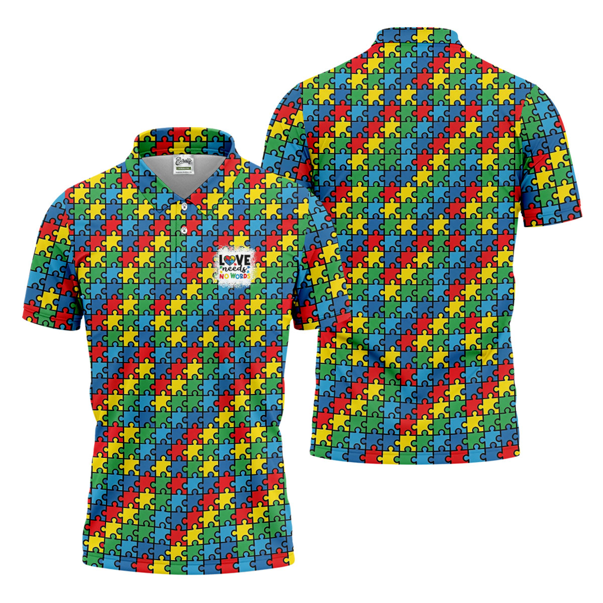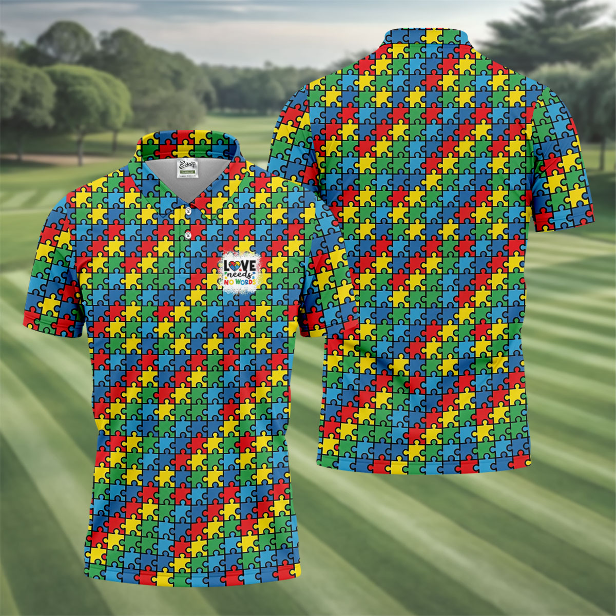 Love Needs No Words Autism Awareness Jigsaw Puzzle Pieces Men's Golf Shirt, Polo Shirts For Men