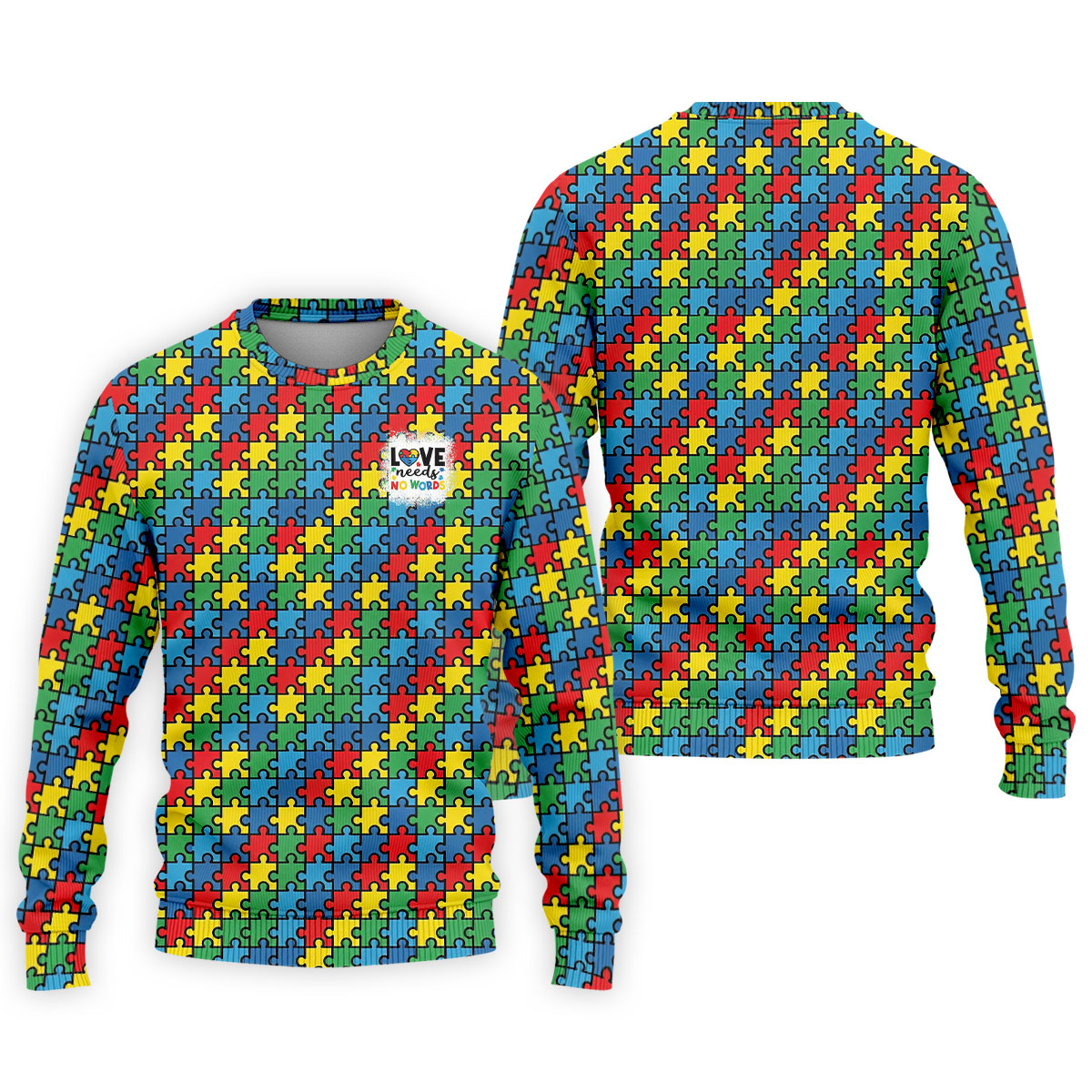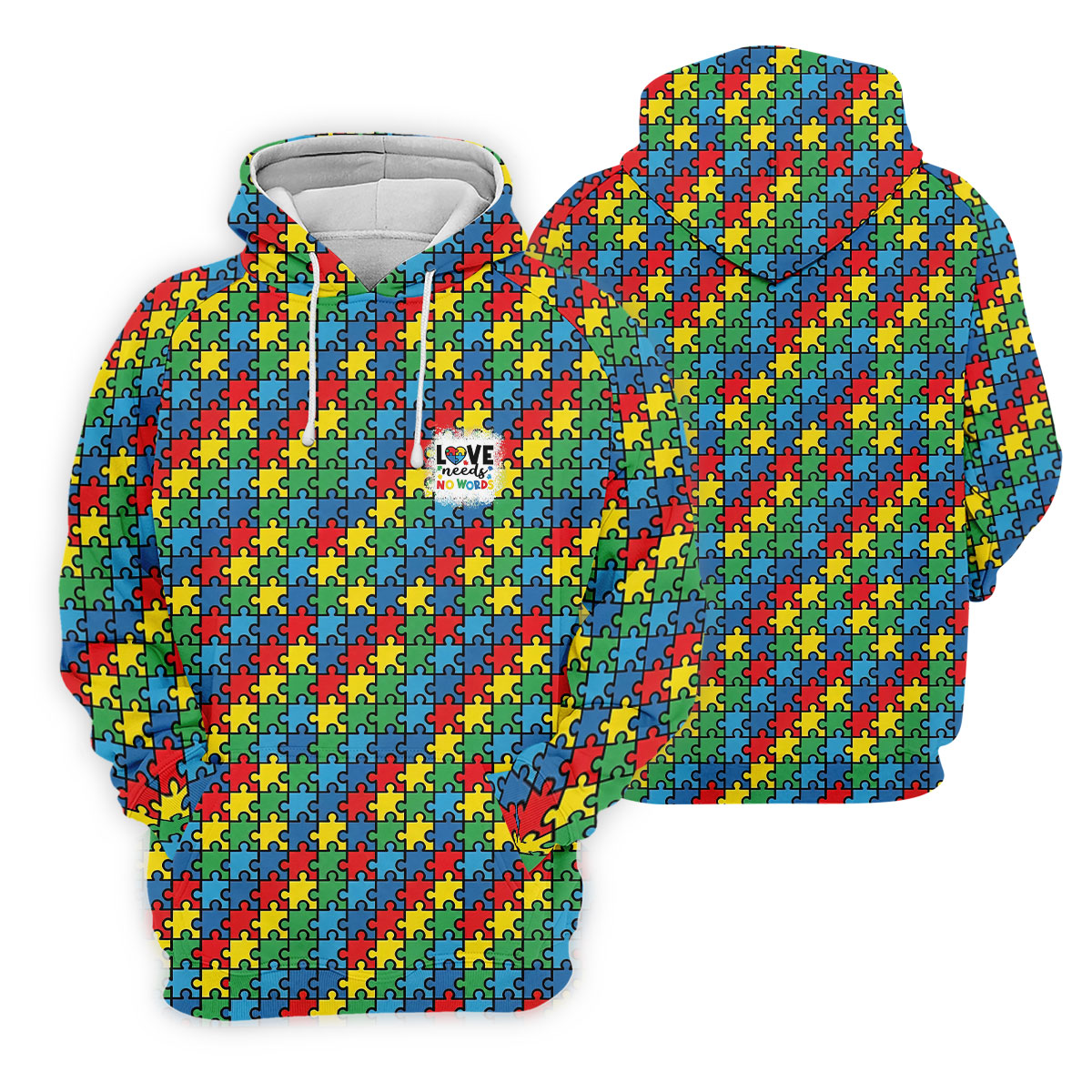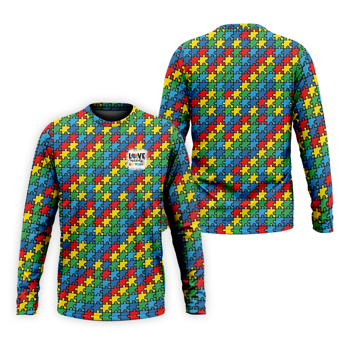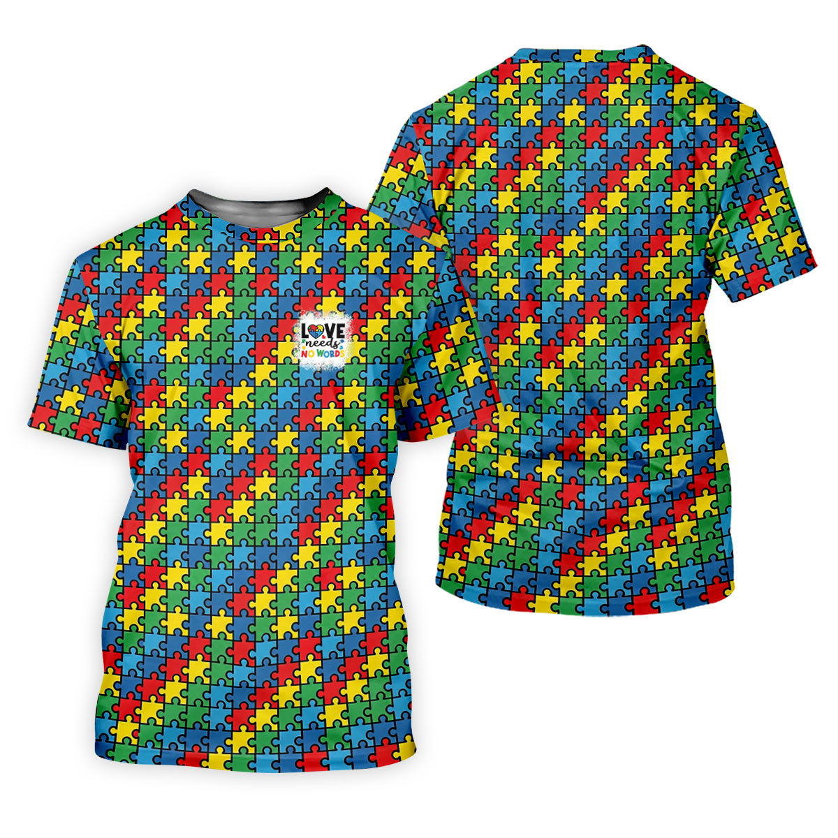 Love Needs No Words Autism Awareness Jigsaw Puzzle Pieces Men's Golf Shirt, Polo Shirts For Men