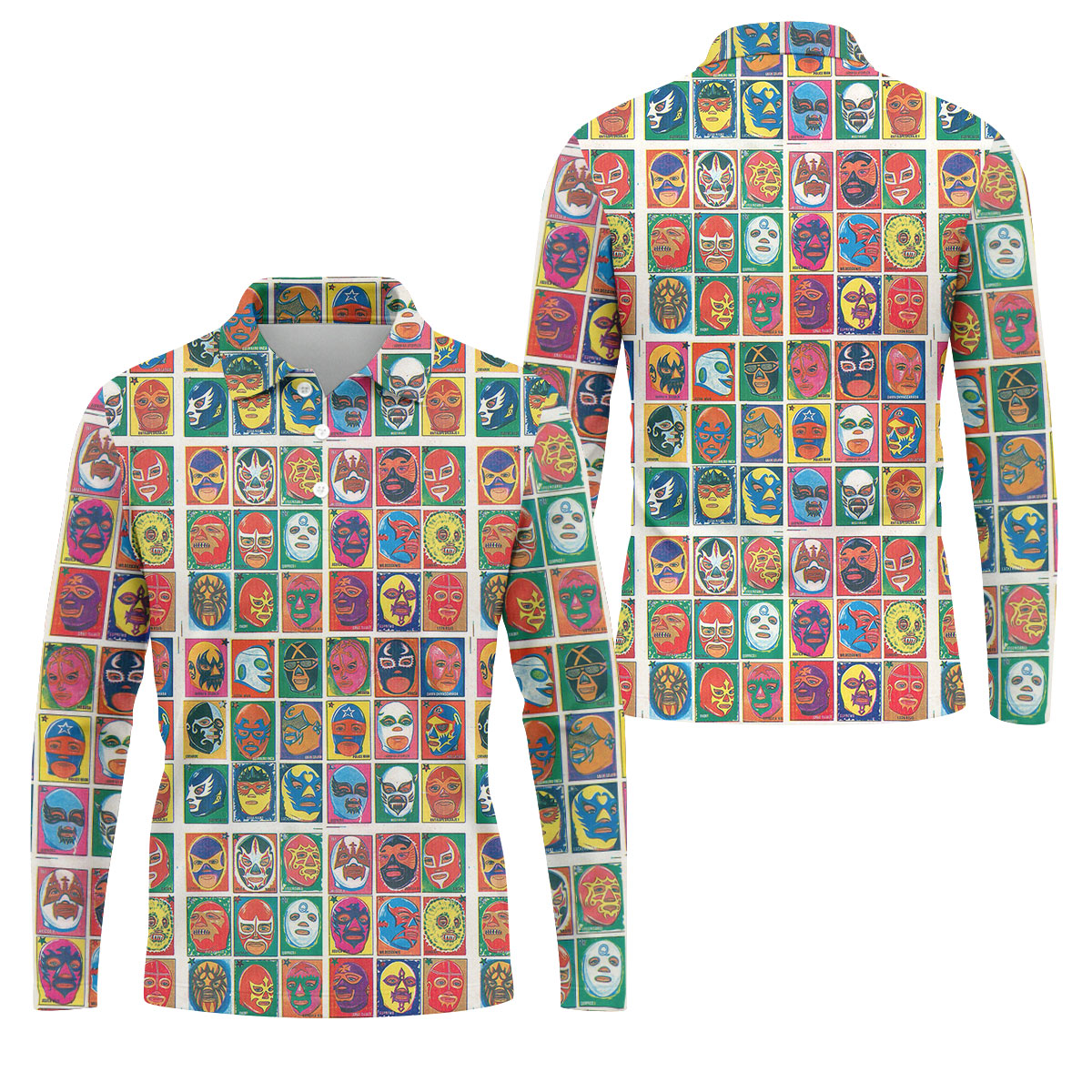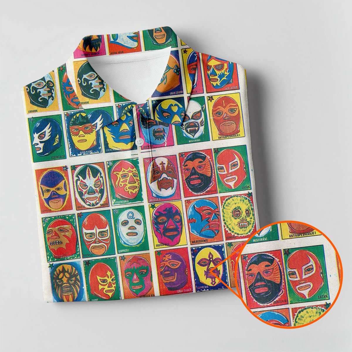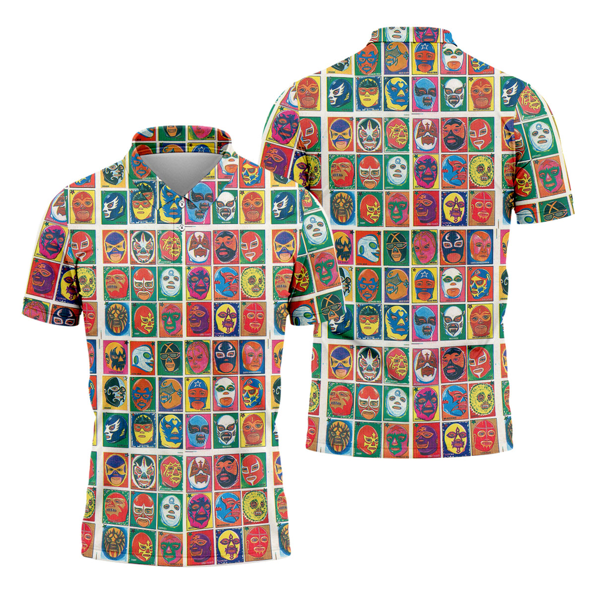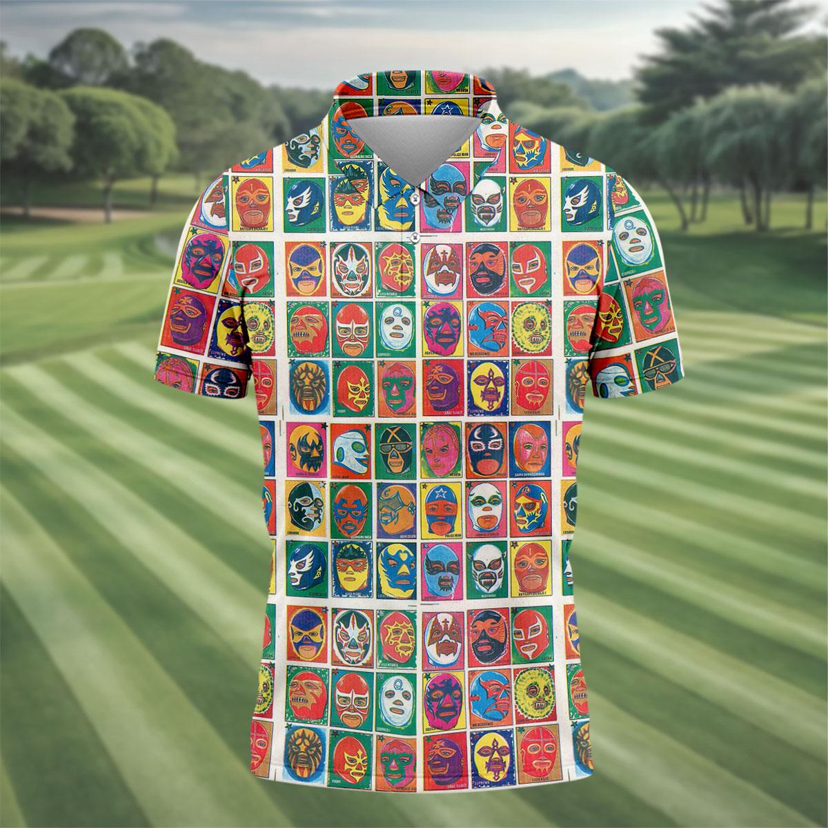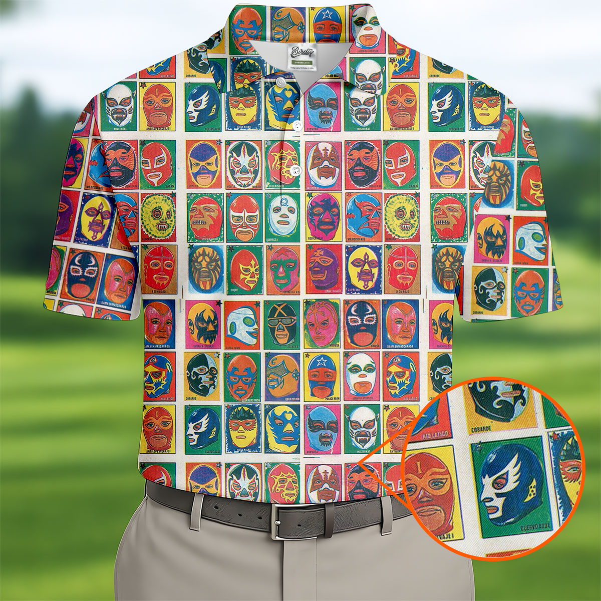 Lucha Libre Mask Grid Pattern Golf Tops For Men, Cinco De Mayo Celebration Golf Shirts For Men